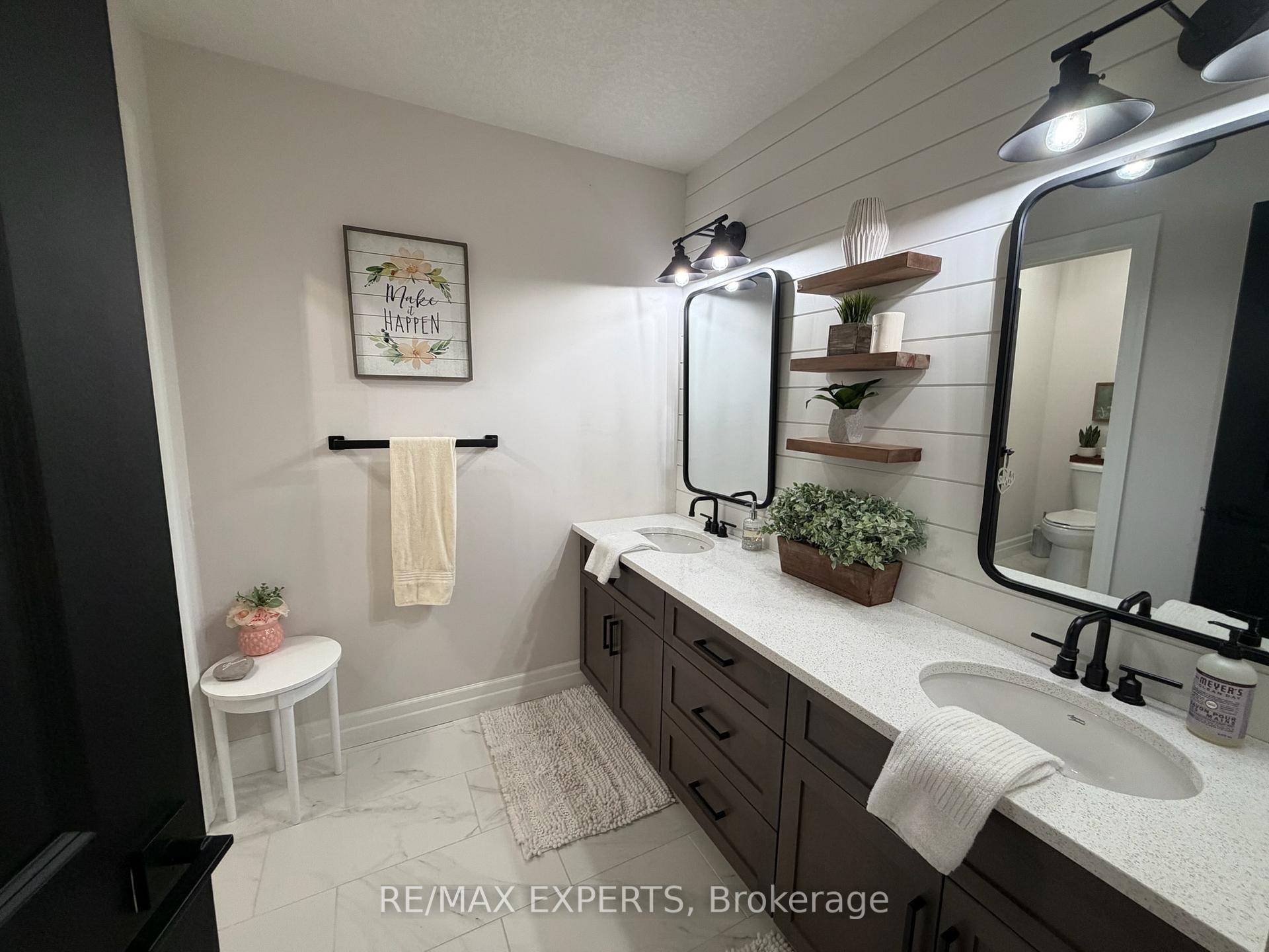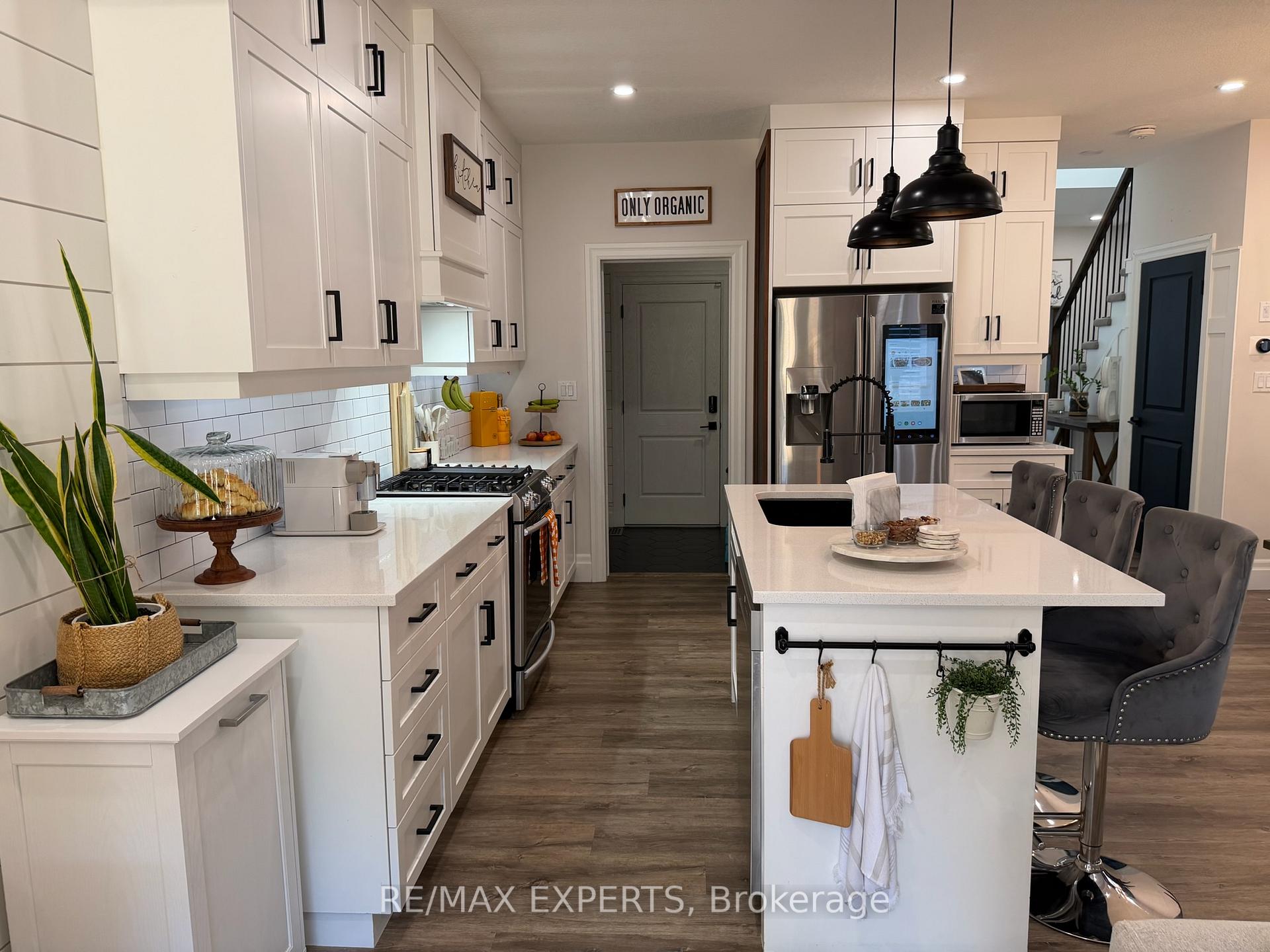 Step into this beautifully upgraded 3-bedroom home offering approx. 2,100 sq. ft. of living space plus a newly finished basement, perfectly located in the sought-after Galt community. From the moment you arrive, you’ll appreciate the extended driveway with parking for 4 cars plus garage, a freshly replaced front lawn, a newly built deck, and a fully fenced yard enhanced with Gemstone outdoor lighting for year-round ambiance.Inside, the home features 9′ ceilings, pot lights on the main floor and basement (with mood-lighting options), California shutters throughout, custom California Closets in all upstairs bedrooms, stylish accent walls, and a cozy gas fireplace. The upgraded kitchen stands out with quartz countertops, a gas stove, Reverse Osmosis water system and Smart Home features including a Nest thermostat.The newly finished basement adds valuable additional living space, perfect for a rec room, home office, gym, or guest suite.Location is unbeatable-just steps to elementary, kindergarten, and high school, and minutes from downtown Cambridge, Zehrs, Shoppers, restaurants, banks, community centre, gyms, and the hospital. Only a 10-minute drive to Hwy 401 and Cambridge Centre Mall.