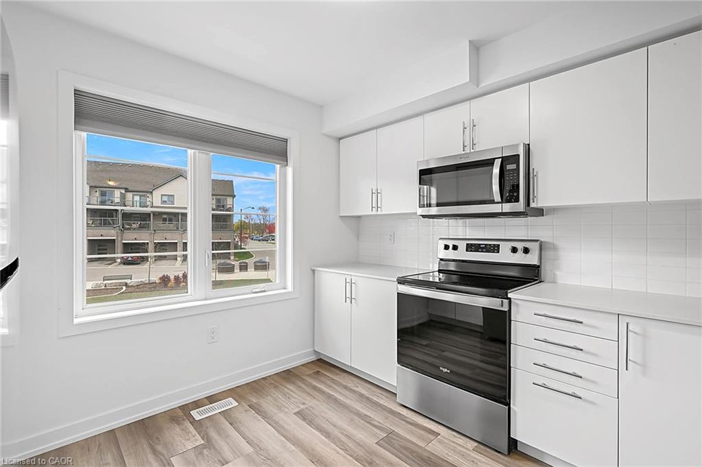 OVER 1400SQFT & 2 CAR PARKING – Welcome to Unit 12 at 205 West Oak Trail! Located in Kitchener’s growing Wildflowers community, this stylish 2-bedroom, 1.5-bathroom townhome blends modern comfort with everyday convenience. Featuring open-concept living, a private deck, and easy access to shopping, parks, and Highway 401 — it’s the perfect place to call home. Check out our TOP 5 reasons why this home could be the one for you: #5: LOCATION: Steps from the new plaza with Starbucks, Shoppers, and Scotiabank, and just minutes to RBJ Schlegel Park, nearby schools, and scenic trails. With easy access to Fischer-Hallman, Huron Road, and Highway 401, everything you need is right around the corner. #4: OPEN-CONCEPT LIVING: Upstairs, you’ll find a welcoming open-concept layout with updated flooring, large windows, and a spacious living and dining area. There’s also a convenient powder room and a private deck. #3: KITCHEN & DINING: The kitchen delivers both function and flow, featuring stainless steel appliances, ample cabinetry, and a convenient breakfast bar. #2: BEDROOMS & BATHROOM: Upstairs, you’ll find two spacious bedrooms, the primary with an extra large walk in closet with the 2nd bedroom offering a large closet and both with bright windows. A 4-piece bathroom serves both bedrooms with a shower/tub combo. #1: SECOND FLOOR LAUNDRY: This convenience will save you time and effort.