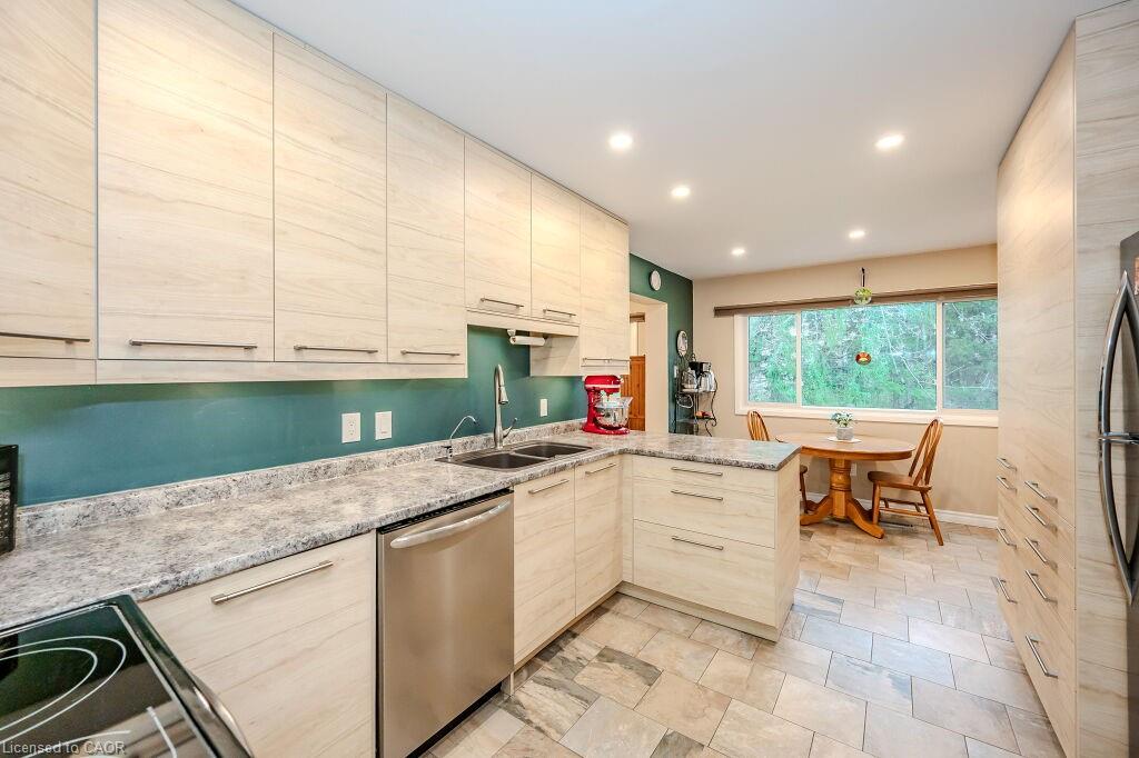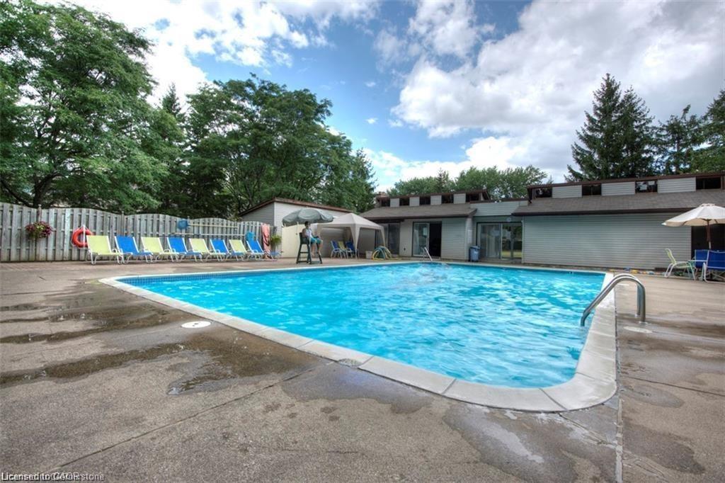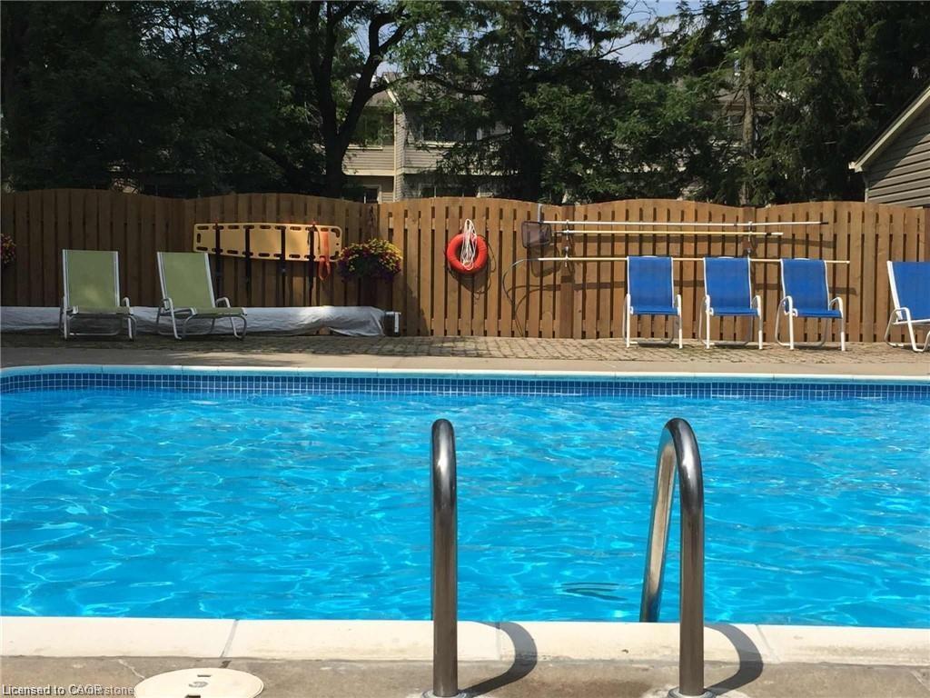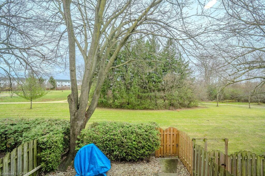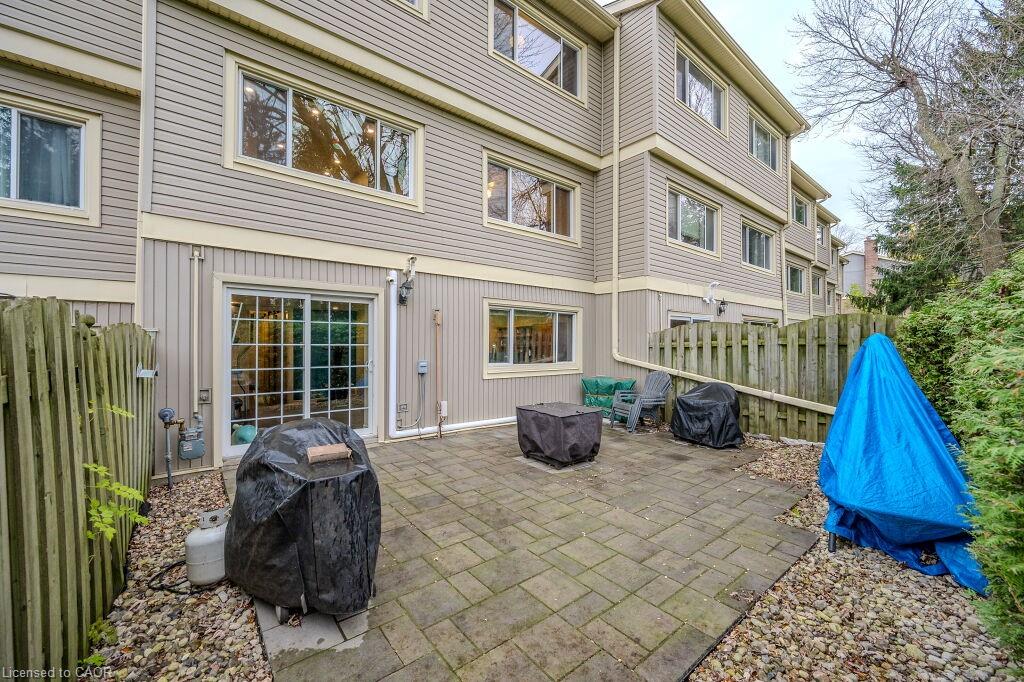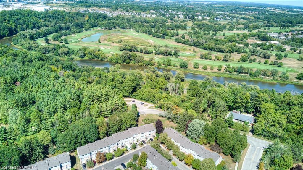 Welcome to maintenance free luxury living at Village on the Green. This spectacular home is almost 2100 sq/ft of above grade living space, backing onto lush greenery and Schneiders Creek. This unit enjoys one of the rare views of the spectacular property. It boasts a one of a kind gourmet kitchen that was custom designed and on point with detail and functionality. You could create the most amazing meals here with ease, you will be in awe when you enter this room. R/O water. There is also a formal dining room and spacious living room on this level. When you enter on the ground level you will find the laundry room and the family room walks out to an updated partially fenced private patio. The mature trees create a serene canopy for your enjoyment. The bedroom level is complete with 3 great sized bedrooms and two full bathrooms. The primary bedroom features a walk-in closet and a gorgeous updated ensuite. This complex has so much to offer, an outdoor heated swimming pool, shopping, close to the 401, Conestoga College, walking trails, golf course. The condo fees include ground level snow removal, roof, doors, windows, guest parking, water. Just move in, relax and enjoy. Home ownership without the worries or exterior maintenance.