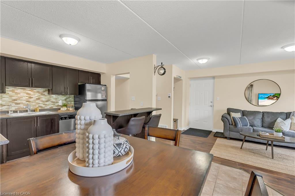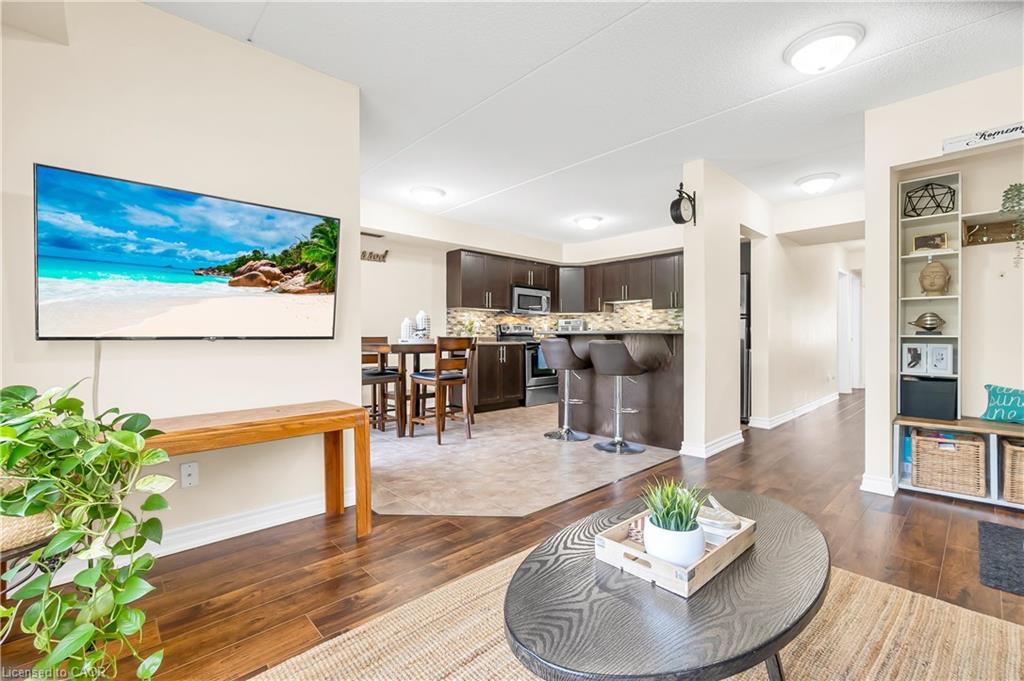 Welcome to 950 Highland Road West, Unit 12 in Building B – a beautifully upgraded and meticulously maintained home in the highly desirable Forest Heights neighbourhood of Kitchener. This rare and stylish one-level condo offers a smart and spacious layout, designed for both functionality and comfort. Featuring 3 generously sized bedrooms and a completely carpet-free interior, this unit is perfect for families, downsizers, or savvy investors. Step inside to find a bright, open-concept living space filled with natural light. The eye-catching features wall sets a warm and inviting tone that continues throughout the home. The modern, updated kitchen is complete with a large island, ample cabinetry, and quality appliances—perfect for everyday cooking or entertaining. The adjacent dining area flows seamlessly into the charming living room, creating an airy and welcoming atmosphere. This unit comes with a Private balcony for enjoying your morning coffee or evening breeze. All three bedrooms are light-filled, spacious, and equipped with large closets. The recently renovated 4-piece bathroom includes dual sinks and stylish finishes. The primary bedroom offers a unique bonus with private exterior access, making it ideal for a home office, in-law suite, or separate retreat. Enjoy the convenience of in-suite laundry and two owned parking spaces—a rare and valuable feature in condo living. The unit has been thoughtfully cared for and tastefully updated, ensuring a move-in ready experience. Located in the heart of Kitchener, this home offers unbeatable access to everything you need. Minutes from Highway, top-rated schools, parks, Fairview Park Mall, grocery stores, restaurants, and public transit—everything is just around the corner! Don’t miss this opportunity to own a beautifully updated, low-maintenance home in a well-managed and family-friendly complex. Book your private showing today and discover everything this gem has to offer!