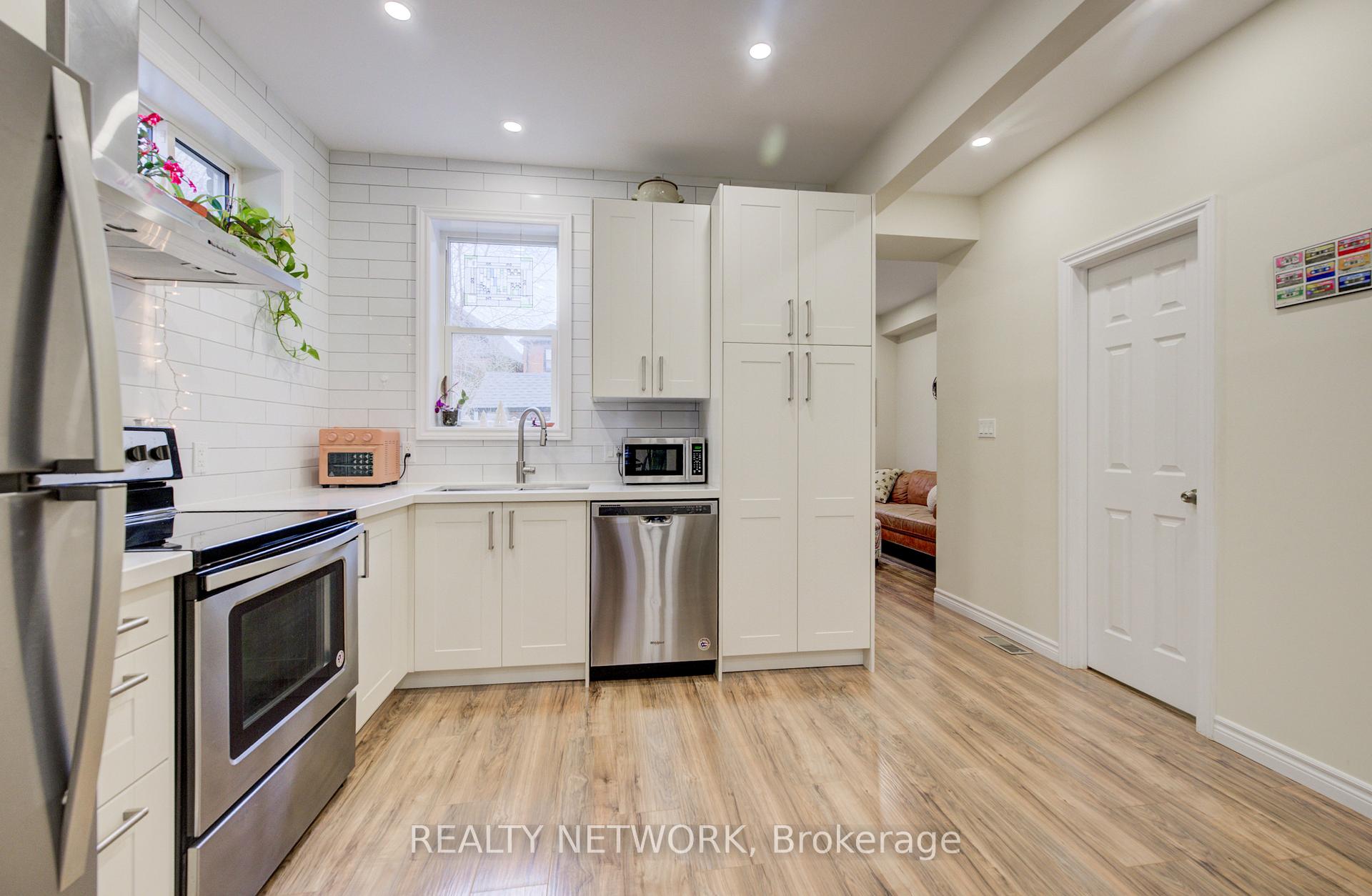 12 Baker Street offers a bright, thoughtfully updated home in the heart of Strathcona, steps from Dundurn Street North and an easy walk to shops, transit, schools, and nearby green spaces like Victoria Park, Dundurn Castle, and Locke Street. The main level features 9-foot ceilings with pot lights and a beautifully renovated kitchen finished with stainless steel appliances, quartz counters, and subway tile backsplash (2019). The enclosed front porch provides a practical spot for everyday gear, opening into a warm, well-kept interior shaped by extensive 2018-19 improvements including flooring, electrical, plumbing, and drywall. Upstairs are three comfortable bedrooms and a full bath, complemented by a main-floor powder room. Major mechanical updates ensure long-term peace of mind: furnace and water heater (2024), windows (2019), central air (2019), roof and eaves (2019), plus modern washer and dryer (2019). A move-in-ready home, conveniently located and ready for its next chapter!