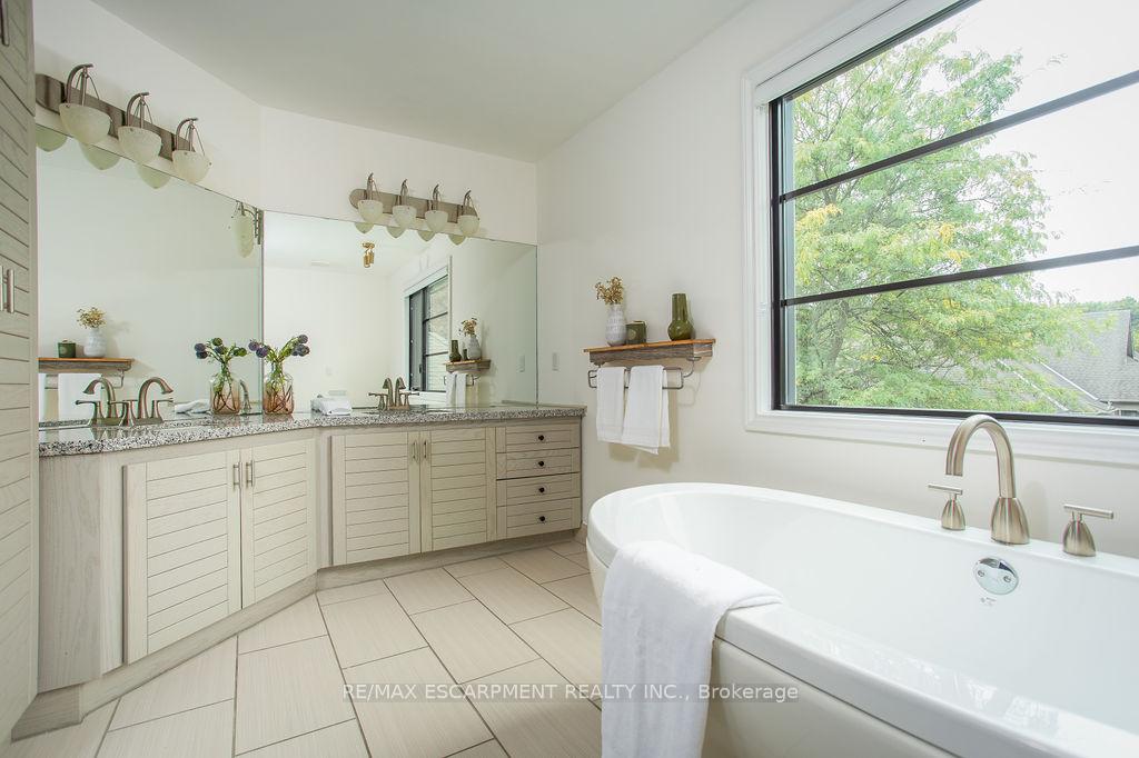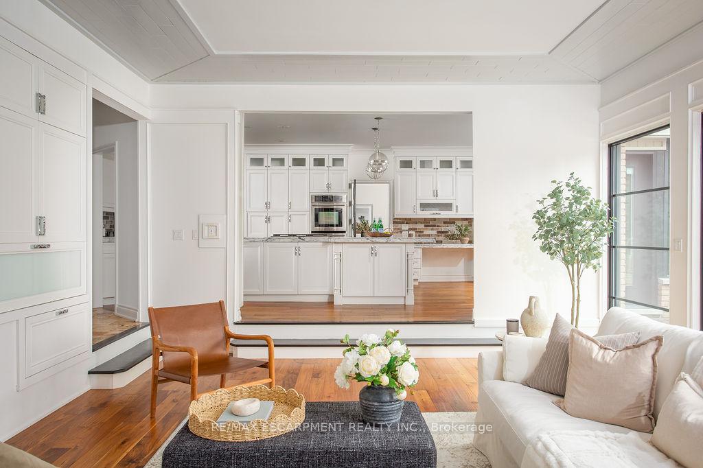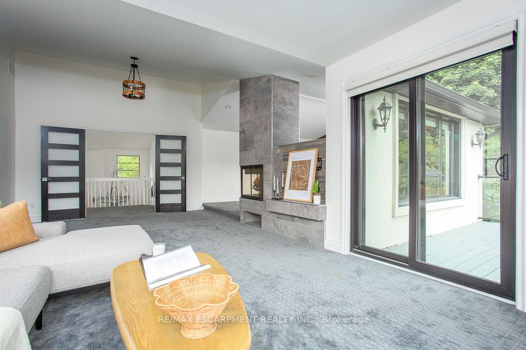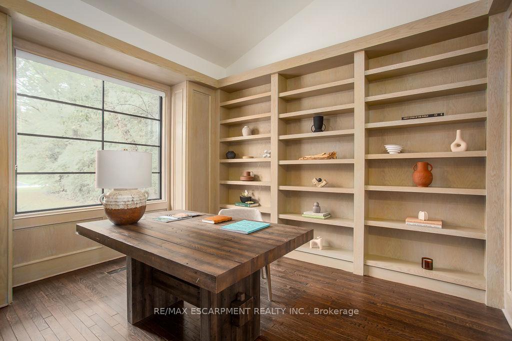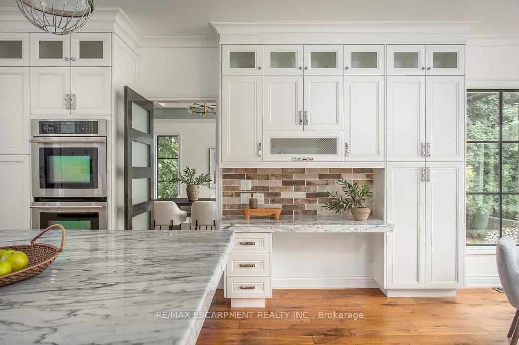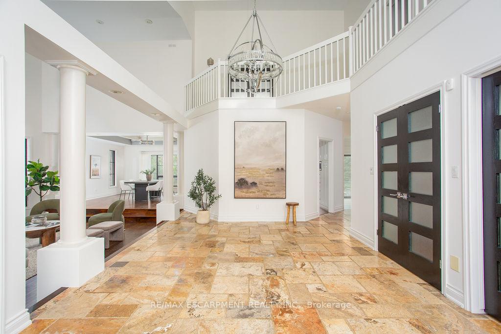 Set on a prestigious estate street, this one-of-a-kind residence captures the essence of Carlisle living. Soaring 22-foot foyer introduces over 5,400 sq ft above grade, plus an additional 2,900 sq ft on the lower level. The main floor offers a sunken oak-panelled office, expansive living room with 19-foot vaulted ceilings, and a formal dining room overlooking the backyard. Chefs kitchen features solid wood dovetailed cabinetry with soft-close finishes, marble counters, professional-grade appliances, a walk-in pantry, and a breakfast room. It seamlessly opens to the family room with a wood-burning fireplace, large glass sliders to the back deck, and a wet bar with beverage fridge. A cozy octagonal sunroom invites fresh breezes, while a main flr bedroom with ensuite (or additional office) and a full laundry room with new washer and dryer add convenience. Upstairs, a sweeping staircase leads to the double-door entry of the primary retreat. This elevated suite boasts a seating area, vaulted ceilings, a two-sided wood-burning fireplace, a private balcony, and a spa-like ensuite with heated floors, marble counters, infrared sauna, water closet, walk-in shower with dual rain heads, and a generous walk-in closet. Three additional bedrooms, each with soaring ceilings, share a stylish 4-pce bath. A second staircase connects to the mudroom landing. The newly renovated lower level offers flexible living with a media rm/6th bedrm, gym, 4-piece bath, and a walk-up to the backyard. Outdoors, the south-facing yard is a true entertainers paradise: an IPE refinished deck, stone outdoor kitchen with wood-fired pizza oven, saltwater pool, fire-pit, and a cabana complete with bar, change-room, and storageall surrounded by extensive landscaping. Updates include most windows and doors (2016), dual furnaces and A/C units (2022), and newer appliances (2024). A heated 4-car garage and exceptional curb appeal complete this remarkable property.Carlisle living at its finest. Luxury Certified