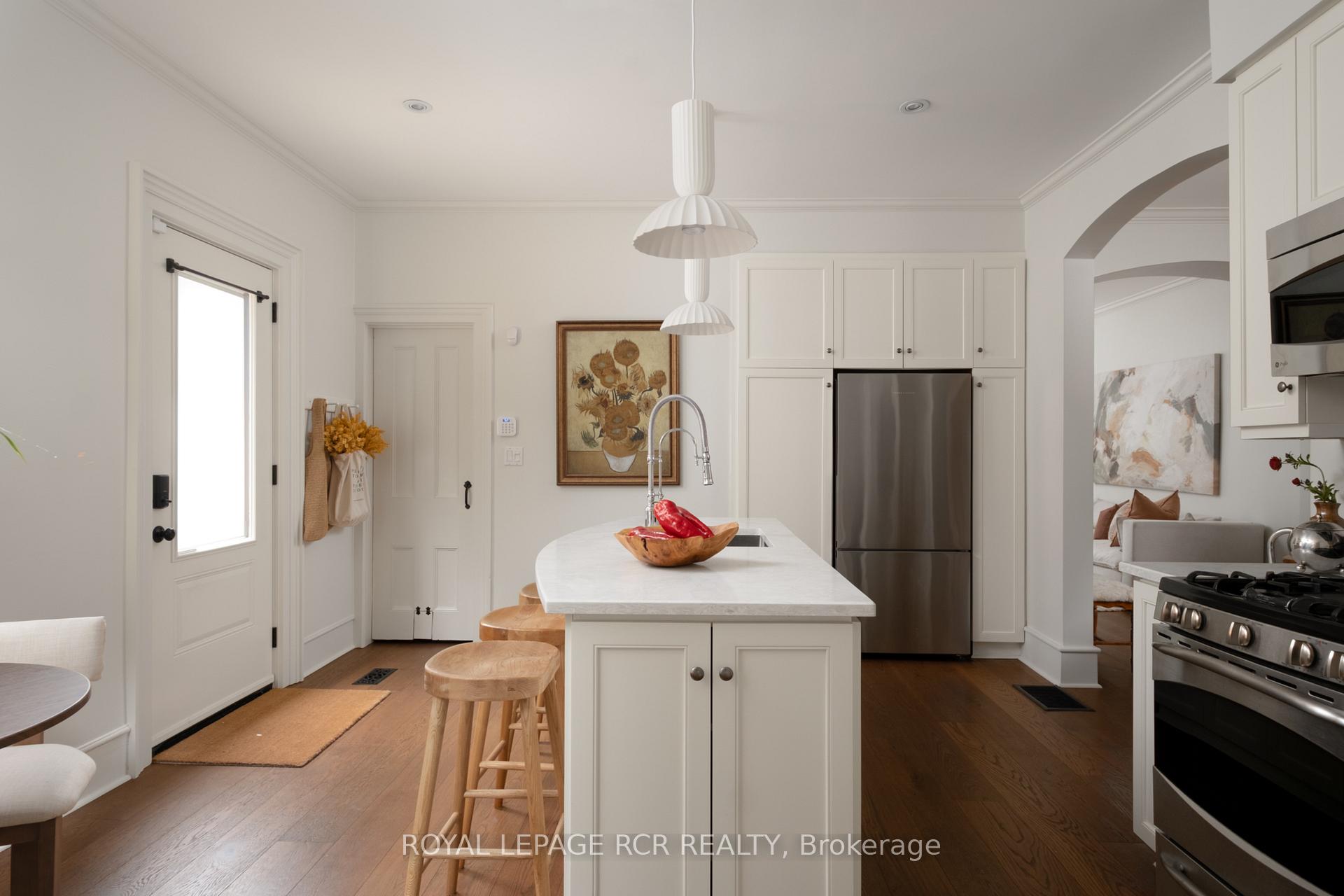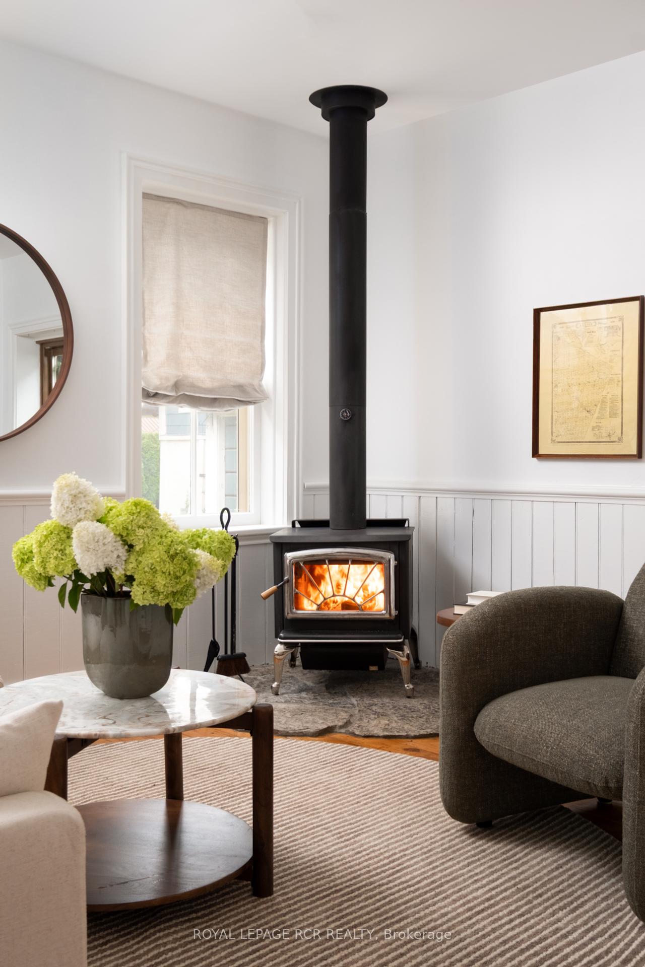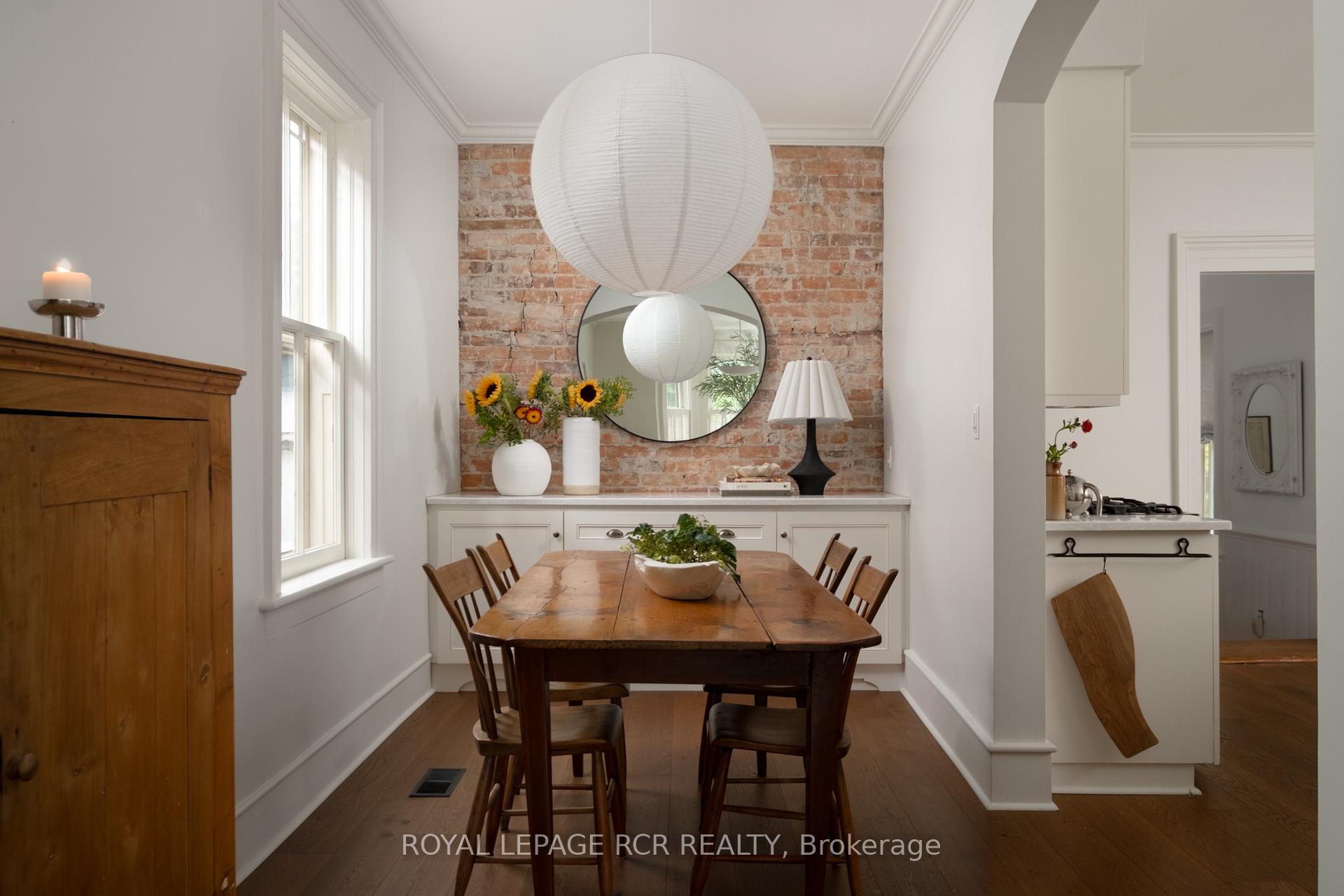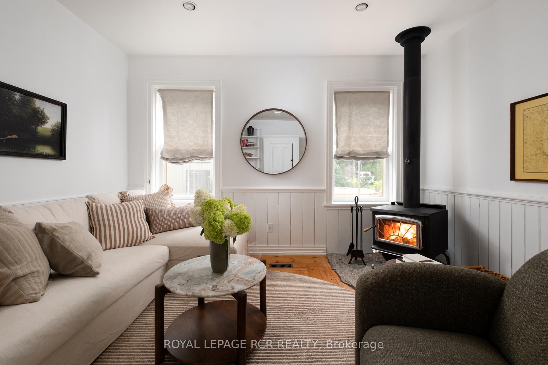 12 Bythia. A home to fall for, where Victorian character meets modern comfort in a home that exudes the warm, lived-in charm of a Nancy Meyers classic. Recently renovated and upgraded, this home gracefully balances its timeless appeal and charm with the conveniences of today. The beautiful front entryway, complete with a closet and bespoke details, leads you to interconnected living spaces featuring elegant crown moulding and built-in storage. The kitchen is a beautifully updated space that feels both stylish and functional, anchored by a spacious island and equipped with sleek cabinetry, stainless steel appliances, and gas stove. It’s a kitchen designed for gathering and creativity. With three bedrooms and three bathrooms, the home provides ample space and privacy. The main floor includes a convenient laundry/powder room and a bonus cozy family room with a wood stove and walkout to the backyard. Upstairs, the sleeping quarters offer a luxurious and quiet retreat. The primary suite is a true sanctuary, featuring a polished 5-piece ensuite bathroom, with a lovely clawfoot soaker tub and spa-worthy shower. Two additional peaceful bedrooms and a gorgeous fully updated 3-piece bathroom ensure comfort for family and guests alike. Throughout the second floor, you’ll find custom bedroom closets and additional storage that have been thoughtfully added. Outside, the backyard is an intimate retreat designed for both entertaining and quiet morning coffee. Lush gardens, mature trees, and a spacious patio create an oasis where moments are meant to be savoured. The grounds also feature a charming garden shed and a small workshop, offering the perfect spaces for creative pursuits. This is a home rich with history, updated for today’s lifestyle, and ready for its next beautiful chapter.