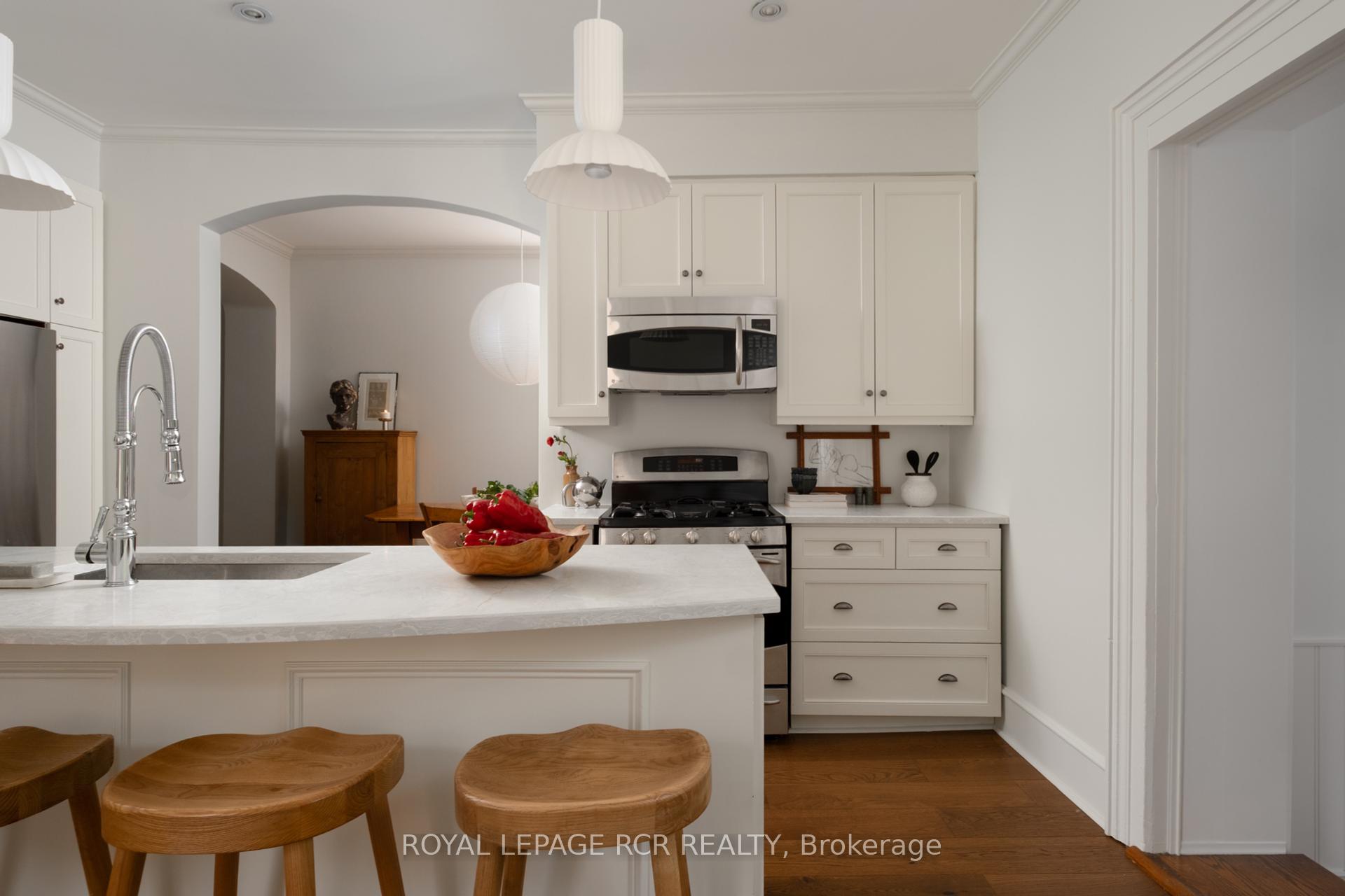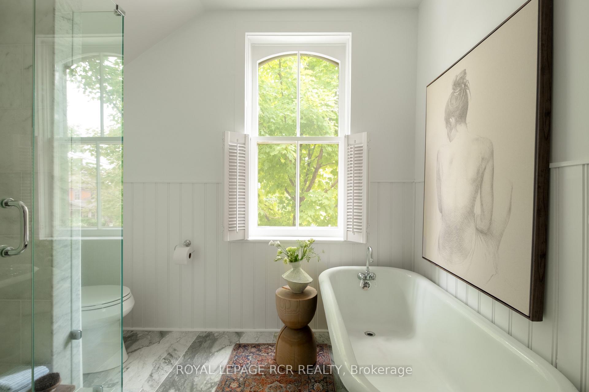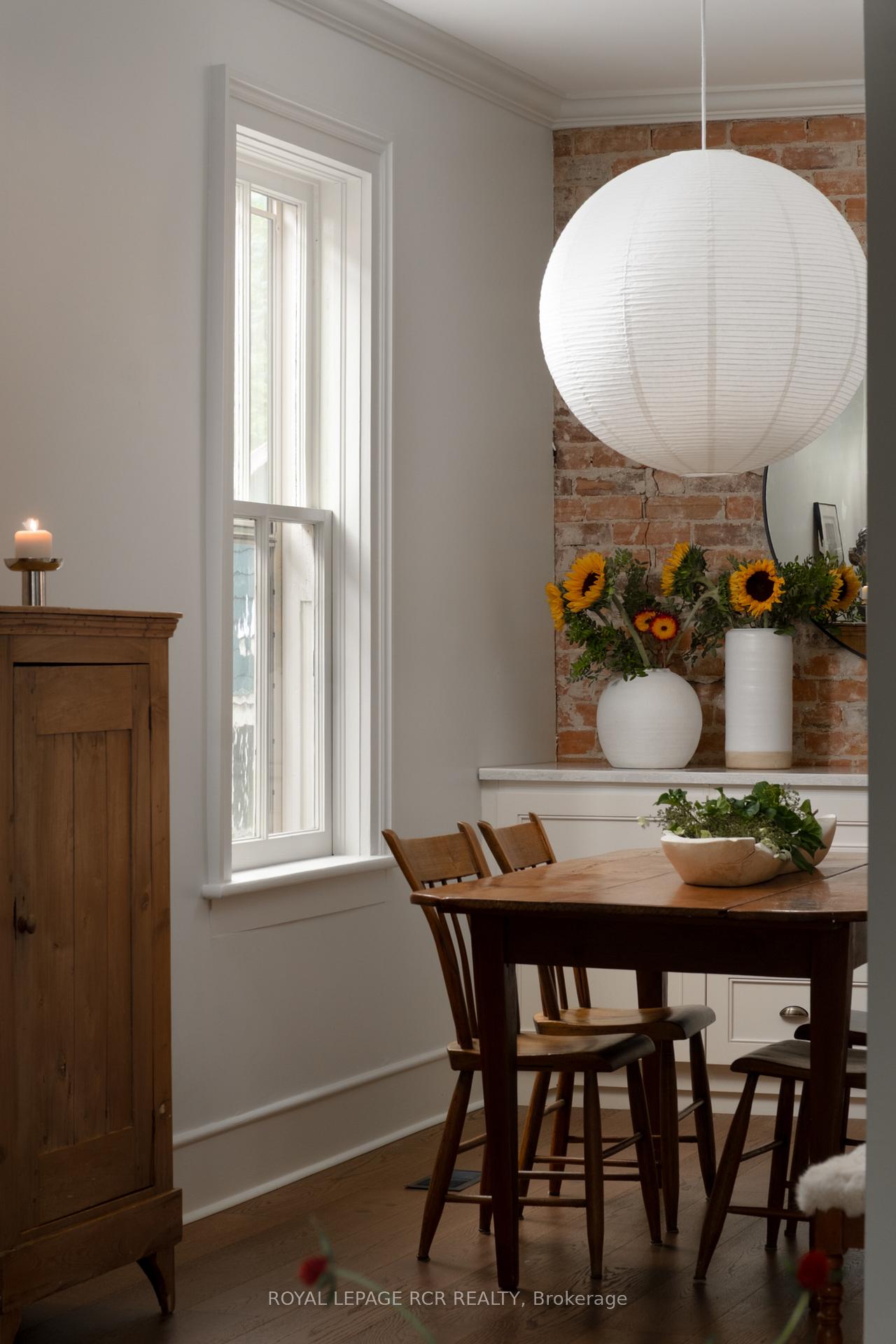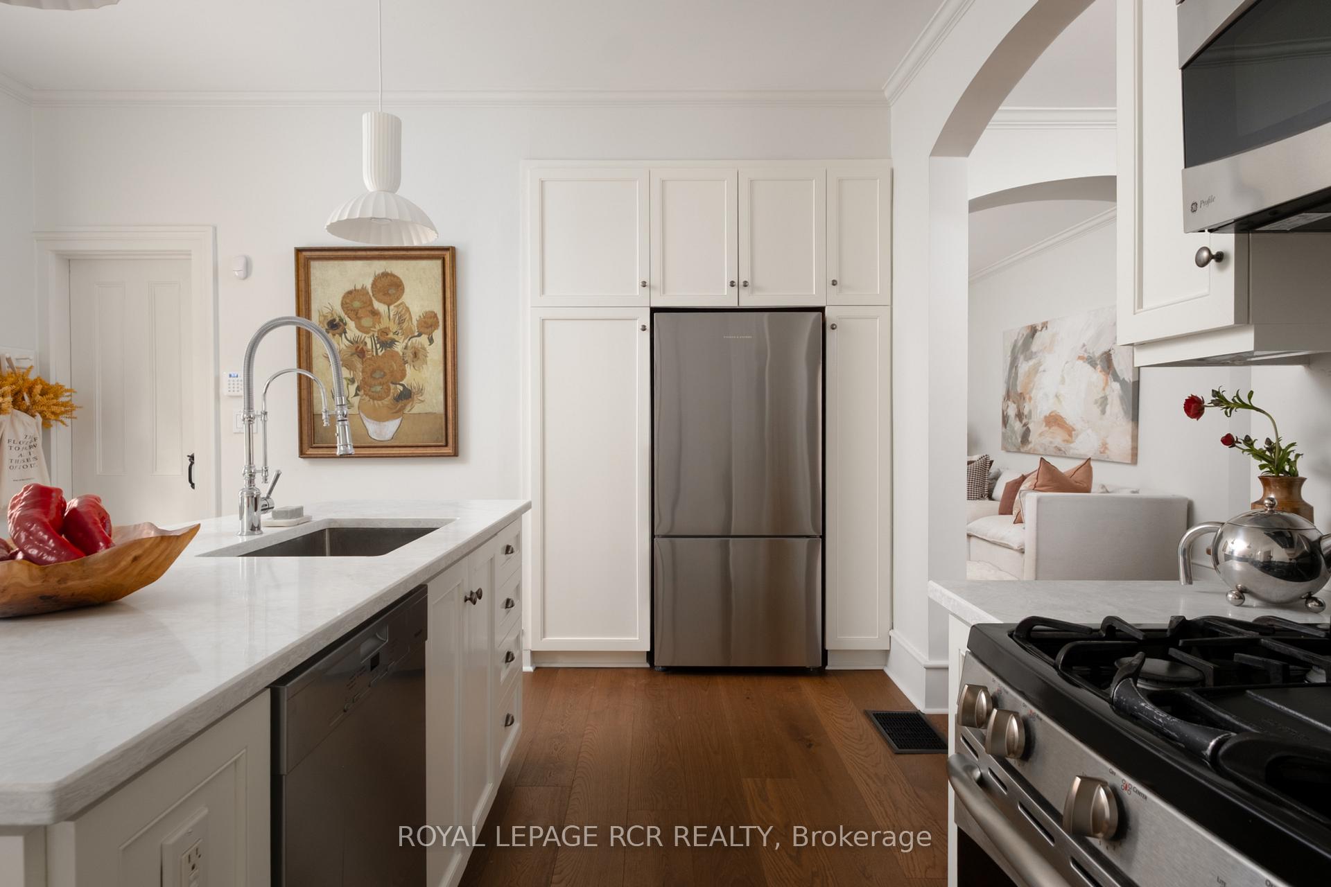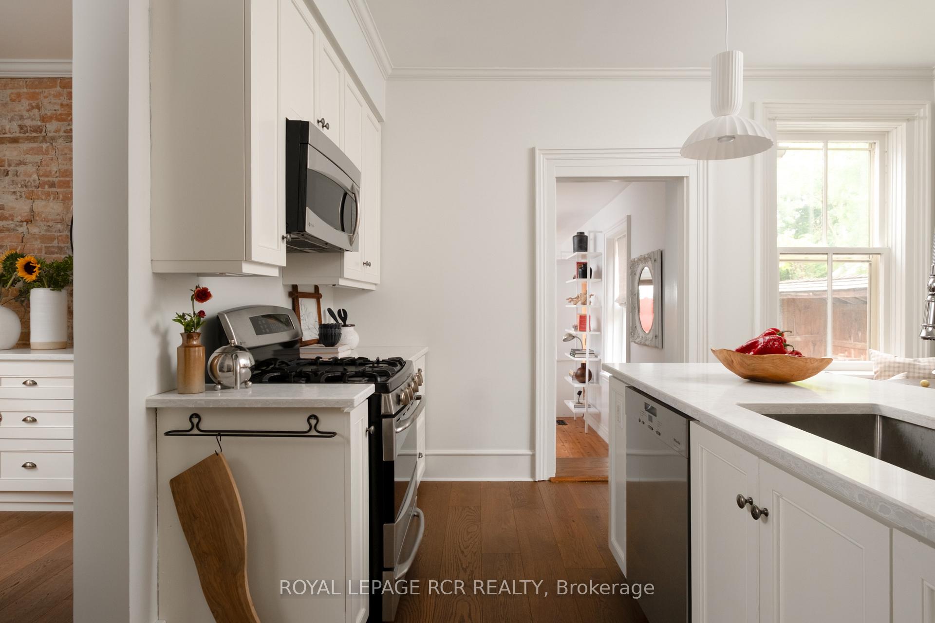 12 Bythia. A home to fall for, where Victorian character meets modern comfort in a home that exudes the warm, lived-in charm of a Nancy Meyers classic. Recently renovated and upgraded, this home gracefully balances its timeless appeal and charm with the conveniences of today. The beautiful front entryway, complete with a closet and bespoke details, leads you to interconnected living spaces featuring elegant crown moulding and built-in storage. The kitchen is a beautifully updated space that feels both stylish and functional, anchored by a spacious island and equipped with sleek cabinetry, stainless steel appliances, and gas stove. It’s a kitchen designed for gathering and creativity. With three bedrooms and three bathrooms, the home provides ample space and privacy. The main floor includes a convenient laundry/powder room and a bonus cozy family room with a wood stove and walkout to the backyard. Upstairs, the sleeping quarters offer a luxurious and quiet retreat. The primary suite is a true sanctuary, featuring a polished 5-piece ensuite bathroom, with a lovely clawfoot soaker tub and spa-worthy shower. Two additional peaceful bedrooms and a gorgeous fully updated 3-piece bathroom ensure comfort for family and guests alike. Throughout the second floor, you’ll find custom bedroom closets and additional storage that have been thoughtfully added. Outside, the backyard is an intimate retreat designed for both entertaining and quiet morning coffee. Lush gardens, mature trees, and a spacious patio create an oasis where moments are meant to be savoured. The grounds also feature a charming garden shed and a small workshop, offering the perfect spaces for creative pursuits. This is a home rich with history, updated for today’s lifestyle, and ready for its next beautiful chapter.