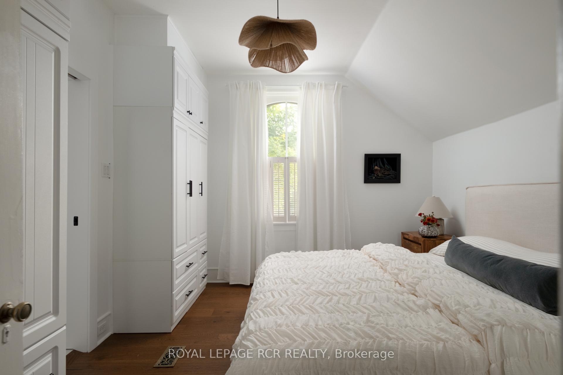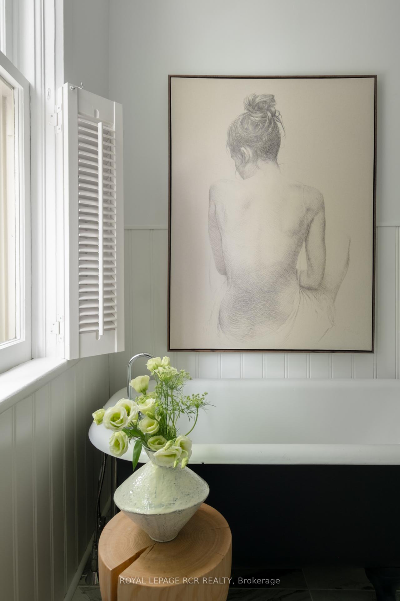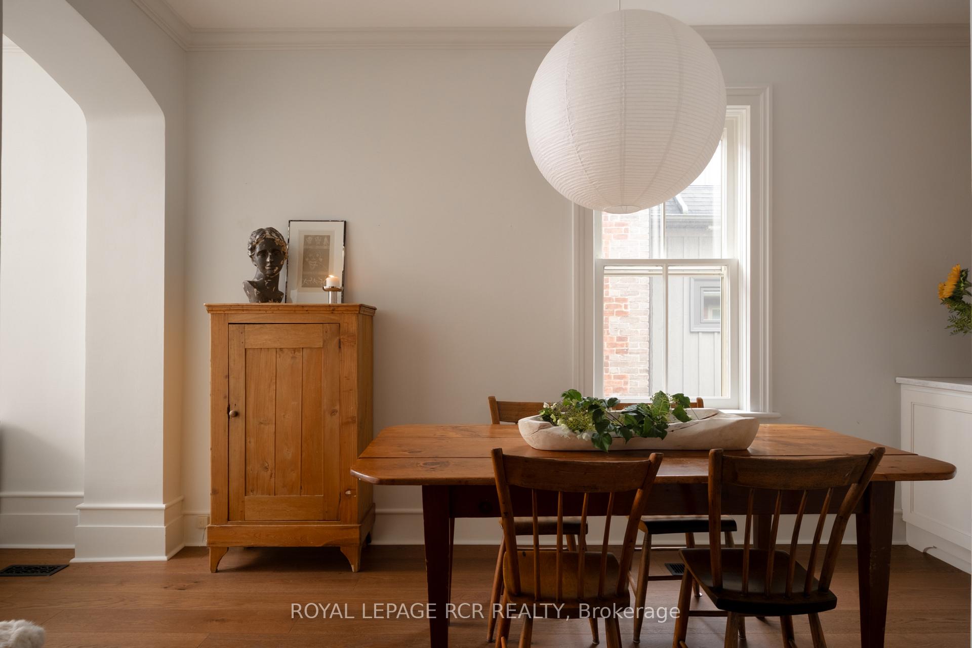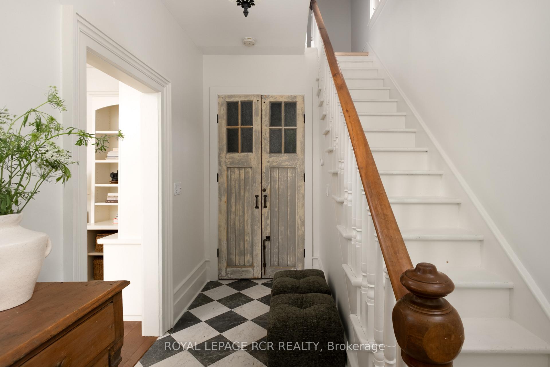 12 Bythia. A home to fall for, where Victorian character meets modern comfort in a home that exudes the warm, lived-in charm of a Nancy Meyers classic. Recently renovated and upgraded, this home gracefully balances its timeless appeal and charm with the conveniences of today. The beautiful front entryway, complete with a closet and bespoke details, leads you to interconnected living spaces featuring elegant crown moulding and built-in storage. The kitchen is a beautifully updated space that feels both stylish and functional, anchored by a spacious island and equipped with sleek cabinetry, stainless steel appliances, and gas stove. It’s a kitchen designed for gathering and creativity. With three bedrooms and three bathrooms, the home provides ample space and privacy. The main floor includes a convenient laundry/powder room and a bonus cozy family room with a wood stove and walkout to the backyard. Upstairs, the sleeping quarters offer a luxurious and quiet retreat. The primary suite is a true sanctuary, featuring a polished 5-piece ensuite bathroom, with a lovely clawfoot soaker tub and spa-worthy shower. Two additional peaceful bedrooms and a gorgeous fully updated 3-piece bathroom ensure comfort for family and guests alike. Throughout the second floor, you’ll find custom bedroom closets and additional storage that have been thoughtfully added. Outside, the backyard is an intimate retreat designed for both entertaining and quiet morning coffee. Lush gardens, mature trees, and a spacious patio create an oasis where moments are meant to be savoured. The grounds also feature a charming garden shed and a small workshop, offering the perfect spaces for creative pursuits. This is a home rich with history, updated for today’s lifestyle, and ready for its next beautiful chapter.