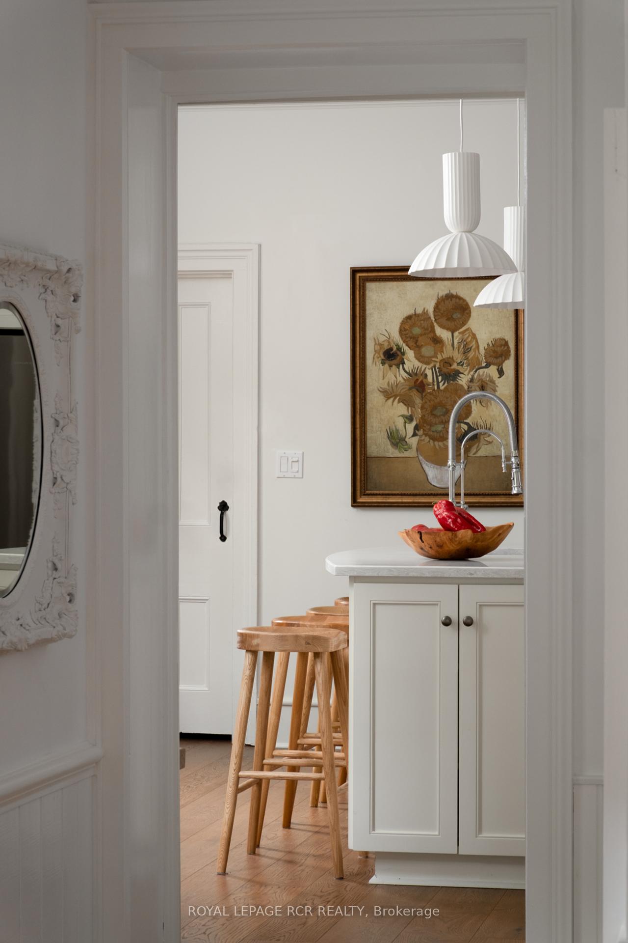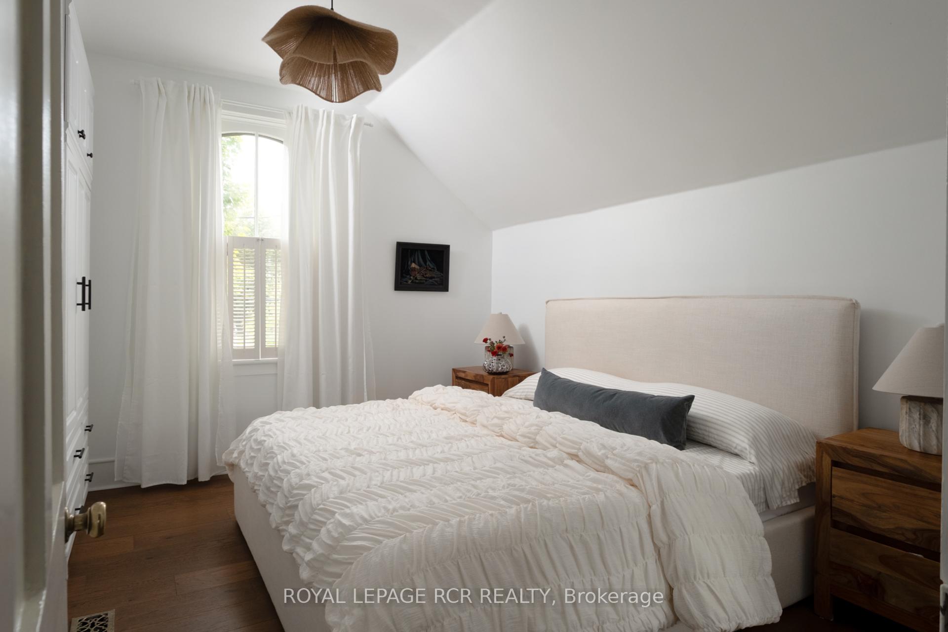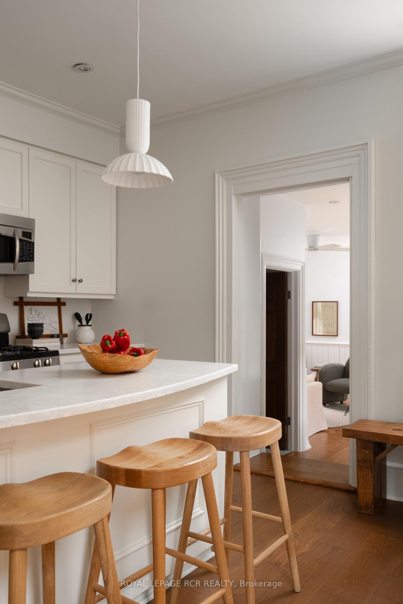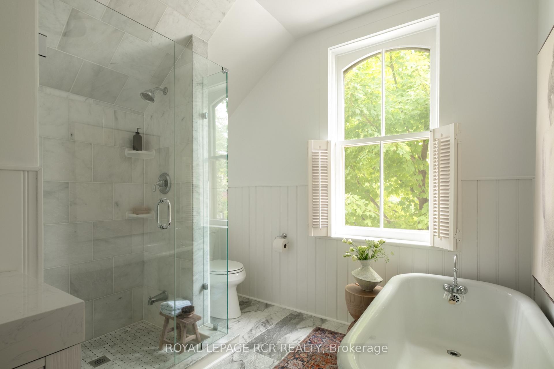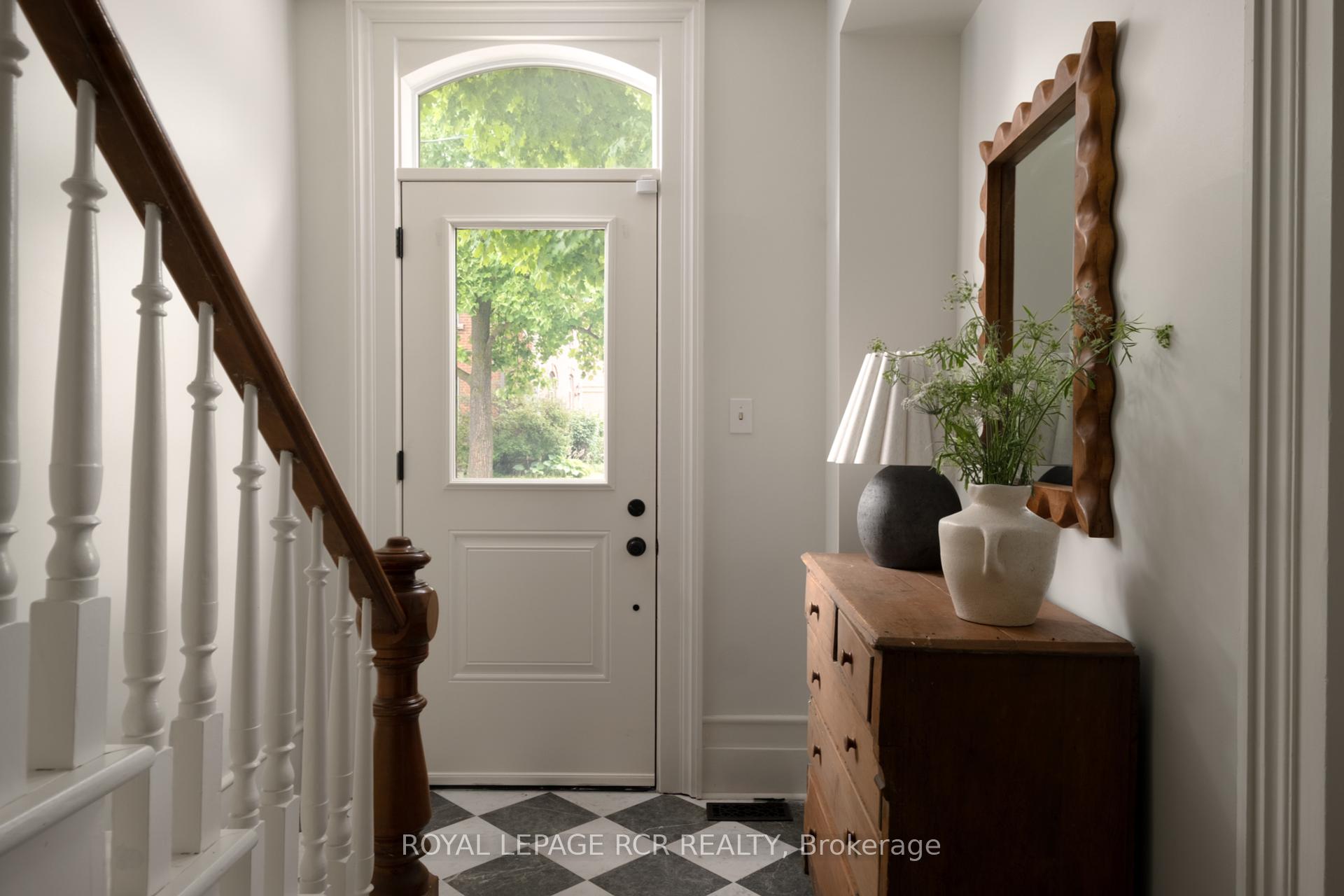 12 Bythia. A home to fall for, where Victorian character meets modern comfort in a home that exudes the warm, lived-in charm of a Nancy Meyers classic. Recently renovated and upgraded, this home gracefully balances its timeless appeal and charm with the conveniences of today. The beautiful front entryway, complete with a closet and bespoke details, leads you to interconnected living spaces featuring elegant crown moulding and built-in storage. The kitchen is a beautifully updated space that feels both stylish and functional, anchored by a spacious island and equipped with sleek cabinetry, stainless steel appliances, and gas stove. It’s a kitchen designed for gathering and creativity. With three bedrooms and three bathrooms, the home provides ample space and privacy. The main floor includes a convenient laundry/powder room and a bonus cozy family room with a wood stove and walkout to the backyard. Upstairs, the sleeping quarters offer a luxurious and quiet retreat. The primary suite is a true sanctuary, featuring a polished 5-piece ensuite bathroom, with a lovely clawfoot soaker tub and spa-worthy shower. Two additional peaceful bedrooms and a gorgeous fully updated 3-piece bathroom ensure comfort for family and guests alike. Throughout the second floor, you’ll find custom bedroom closets and additional storage that have been thoughtfully added. Outside, the backyard is an intimate retreat designed for both entertaining and quiet morning coffee. Lush gardens, mature trees, and a spacious patio create an oasis where moments are meant to be savoured. The grounds also feature a charming garden shed and a small workshop, offering the perfect spaces for creative pursuits. This is a home rich with history, updated for today’s lifestyle, and ready for its next beautiful chapter.