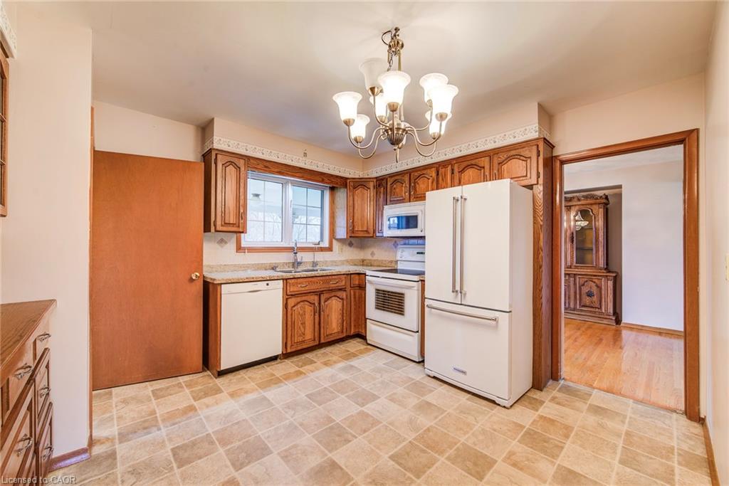 Discover a rare opportunity to own a lovingly maintained bungalow on a quiet cul-de-sac, backing directly onto City park land, “Franchetto Park.” Enjoy 131 feet of unobstructed views with no rear neighbours-a truly exceptional setting. This spacious, one-owner, 3-bedroom home is ready for its next chapter. Inside, you’ll find beautiful hardwood floors and thoughtful updates to the main-floor kitchen and baths. The home features updated windows, front and back doors, and added attic insulation for improved comfort and efficiency. The principal bedroom offers a convenient cheater ensuite bath. Step outside to a large covered patio, framed by elegant concrete pillars, overlooking a generous pie-shaped, fully fenced yard. A gate provides direct access to the park, which is ideal for families, nature lovers, and pet owners.The lower level offers fantastic in-law or multi-generational living potential, with private entrances from both the garage and the backyard. This versatile space includes a second kitchen, a spacious recreation room with a gas stove, a 3-piece bath, and ample storage. With walk-ups to both the rear yard and garage, flexibility and functionality abound. Conveniently located within walking distance to schools, churches, and shopping, this home is a true gem that seldom comes to the market. Don’t miss your chance, book your private viewing today!