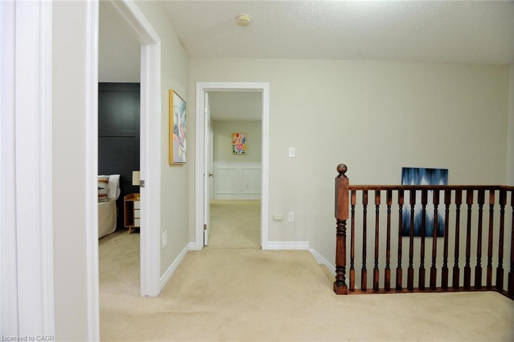 Stunning 3-bedroom, 2.5-bathroom home located on a quiet cul-de-sac with easy access to Highway 403, just 2 minutes from Hamilton International Airport and 10 minutes from the Amazon Warehouse. This well-maintained property features a spacious foyer ideal for a home office, a primary bedroom with a 4-piece en suite, a separate laundry room, and broadloom carpeting throughout the second floor. The double-car garage and extended driveway (with no sidewalk) provide parking for up to six vehicles. Enjoy the beautifully landscaped backyard with a 14-ft above-ground saltwater pool, complete with solar heating and a deck for outdoor entertaining. All chattels and fixtures are included, making this home move-in ready in a safe, family-friendly neighbourhood. Property also comes with Above Ground pool in “AS IS” Condition.