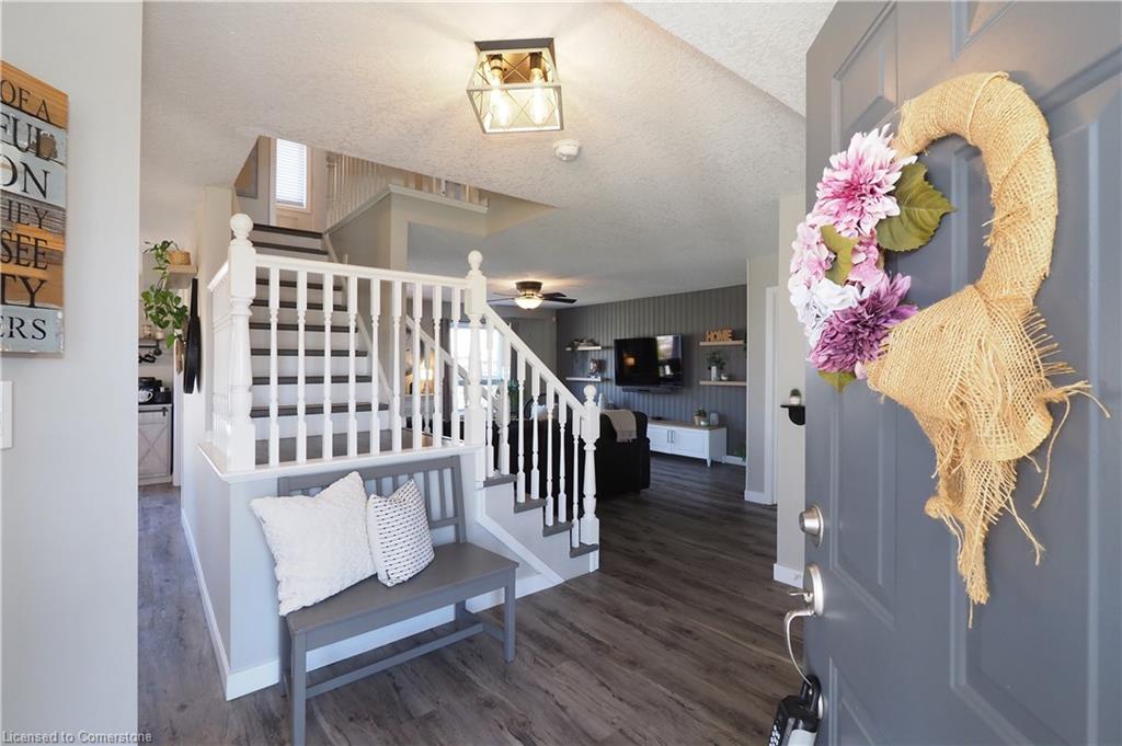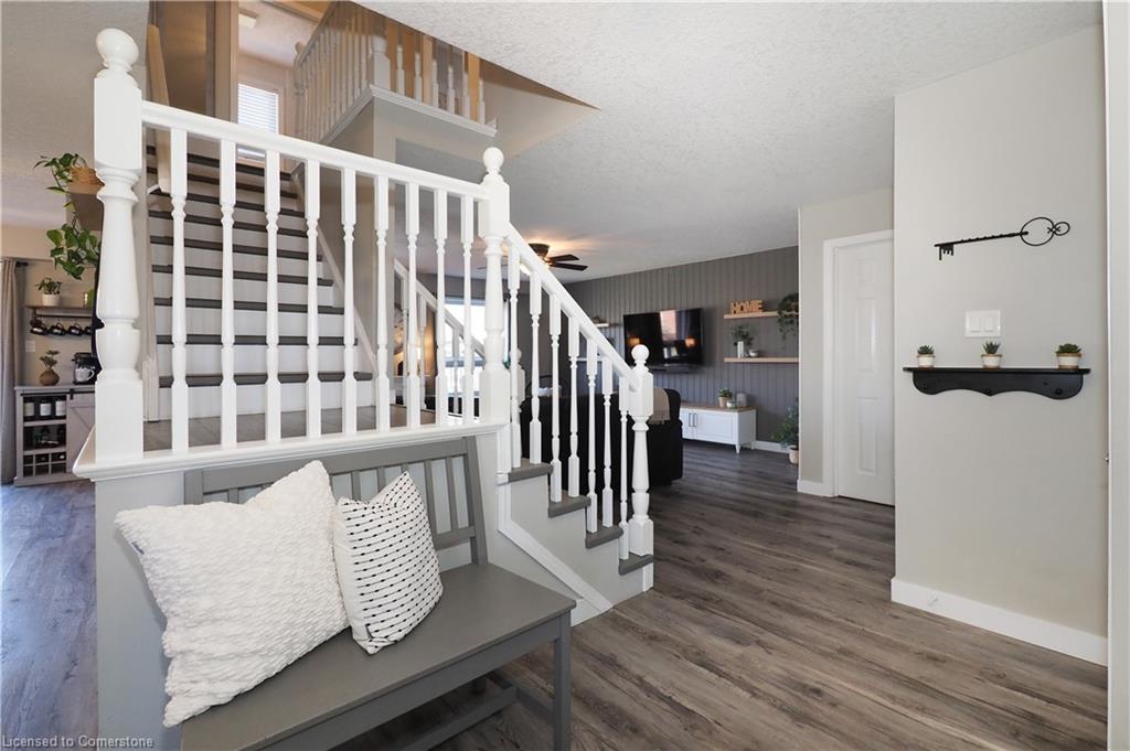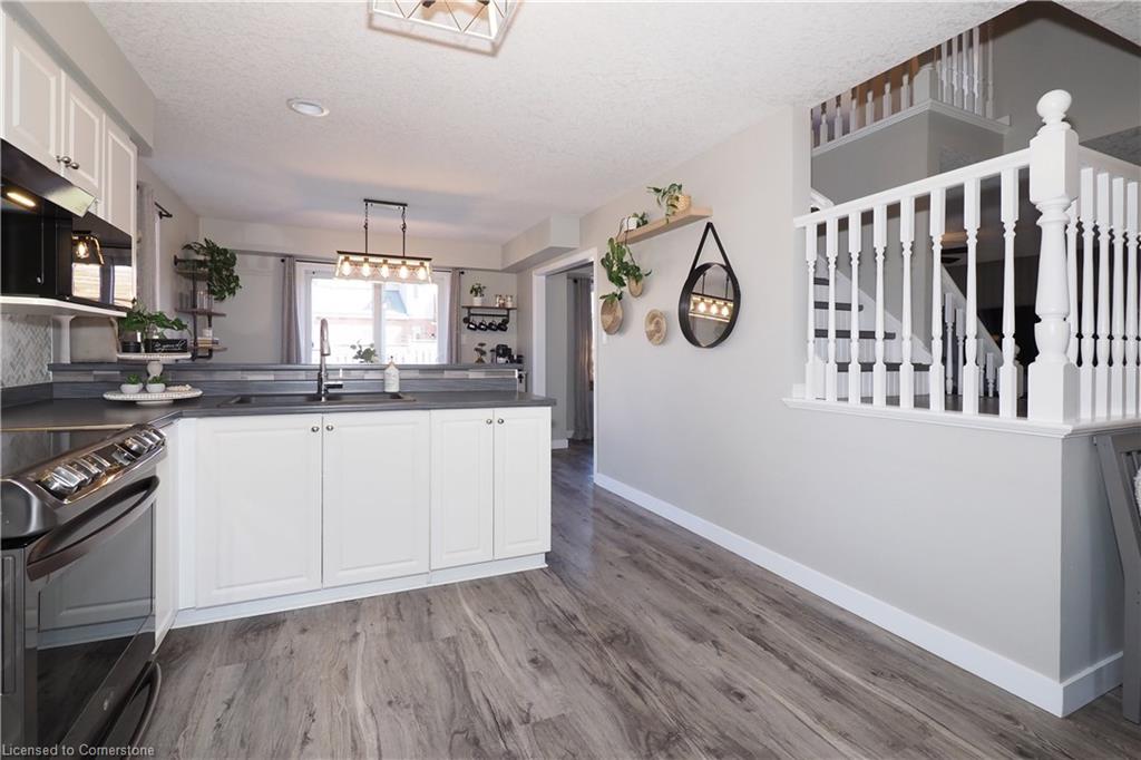 Cheerful and welcoming, is the best way to describe this light filled North Galt beauty! It starts from the street with awesome curb appeal and a large inside corner lot (no sidewalks to shovel here), and continues through the interior from the moment you walk in the door. The main floor is an awesome space for family to connect either prepping and cooking in the well appointed kitchen, or hanging out in the spacious great room. The dinette offers a walkout to the fully fenced, landscaped yard with patio, shed, and lots of room to play, garden or just relax! The upper level hosts 3 bedrooms, and 2 bathrooms including a 4pc primary ensuite, the lower level is mainly finished with a recroom, office, utility room and cold cellar.