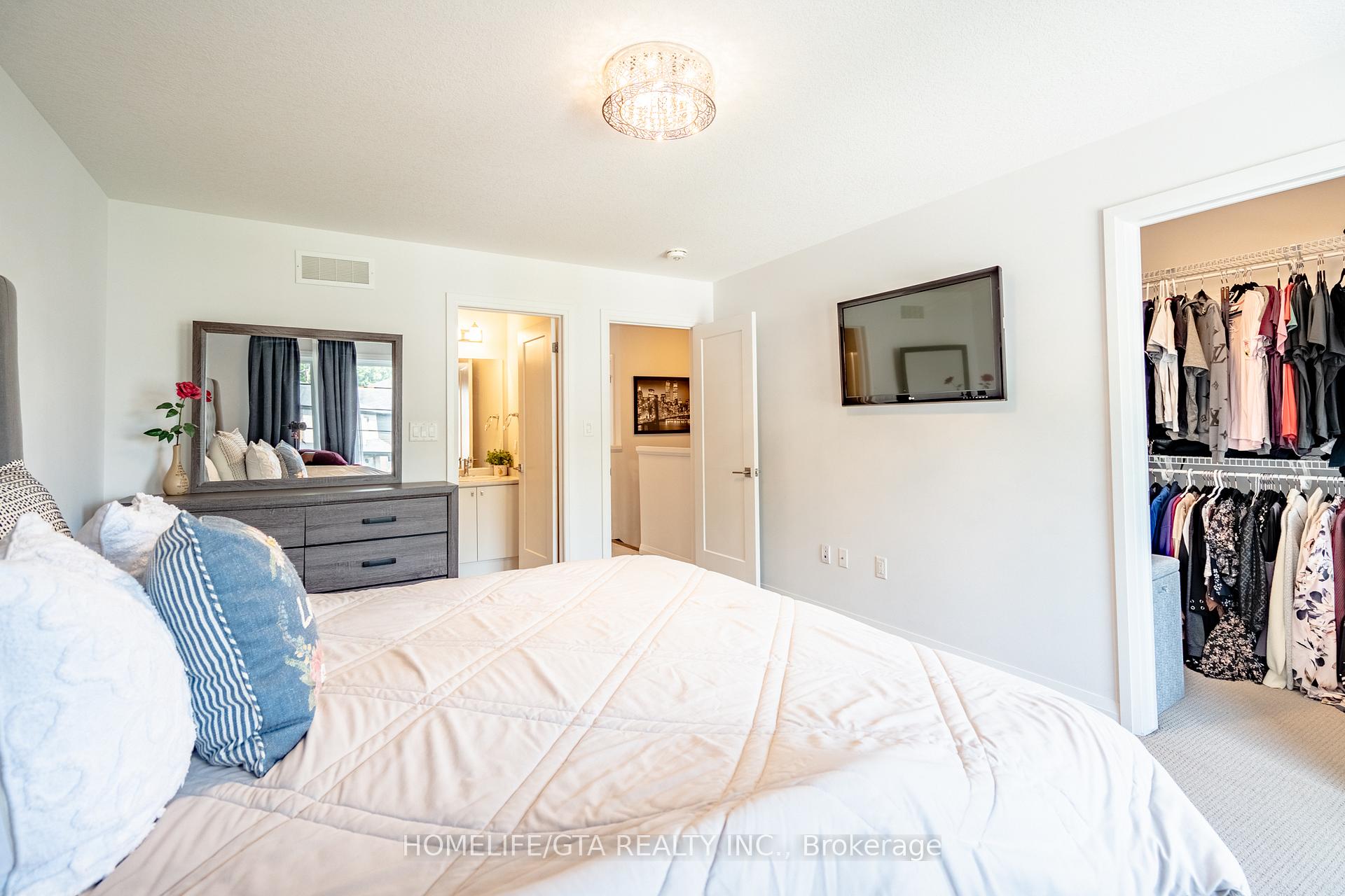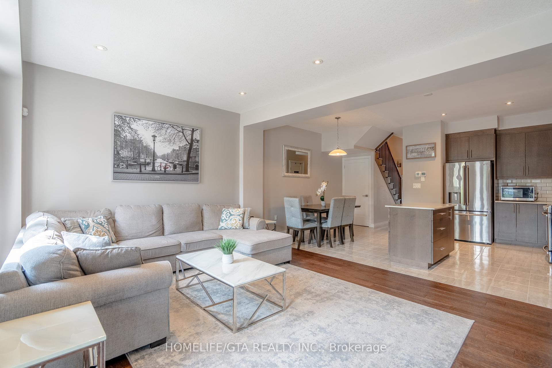 Stunning Modern Townhome In Sought-After Ancaster Glen. Welcome To This Beautifully Designed Modern Freehold Townhome By Losani Homes, Where Contemporary Elegance Meets Functional Living. With Its Striking Architectural Blend Of Stone, Brick And Wood-Inspired Metal Siding, This Home Makes A Memorable First Impression. A Glass- Panel Front Door With Matching Sidelight Floods The Entryway With Natural Light, Perfectly Complementing The Sleek Dark Easement Windows Throughout. Step Inside To Discover An Open-Concept Layout Enhanced By 9-Foot Ceilings On The Main Floor, Creating A Spacious And Airy Atmosphere Encompassing Over 1500 SqFt Of Living Space, The Kitchen Is A Showstopper, Featuring Caesarstone Quartz Countertops, Extended- Height Upper Cabinets, Pot And Pan Drawers, And Sleek Pot Lights – Ideal For Both Cooking And Entertaining. The Exquisite Custom Built Entertainment Wall Is Adorned With Sophisticated Marble – Style Tiling, Anchored By A High-End Electric Fireplace Offering Customizable Ambient Lighting In A Spectrum Of Elegant Hues. Strategically Relocated Multimedia Ports Ensure Seamless Connectivity, All Designed With Both Luxury And Convenience In Mid. Additional Interior Highlights Include: Hardwood Flooring. Oak Staircase Leading To The Upper Level. The Primary Suite Offers A Private Retreat With 3 Piece Ensuite, Complete With A Tiled Shower Fing Security Camera System With Emergency Flood Lights, Reliance Alarm System, Digital Thermostat And Laundry. The Unspoiled Basement Includes A Rough-In For A 2 Piece Bathroom, Offering The Potential To Customize And Expand Your Living Space. Located In The Highly Desirable Ancaster Glen Community, You’re Just Minutes From Meadowlands Shopping. Top Rated Schools, Old Ancaster And Major Routes Including The 403, The Linc As Well As McMaster University And Redeemer University. Don’t Miss Your Chance To own A Modern, Move In Ready Home In One Of Ancaster’s Most Sought-After Neighborhoods!