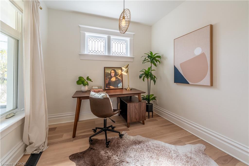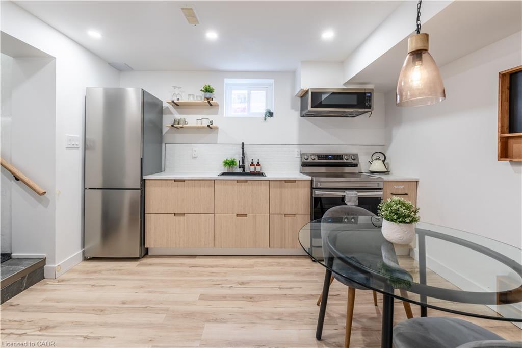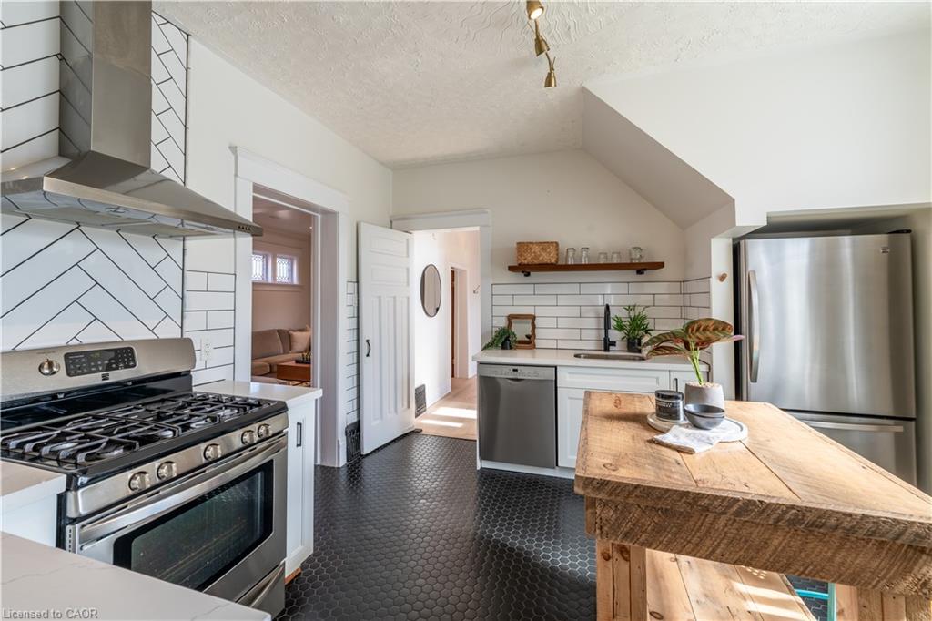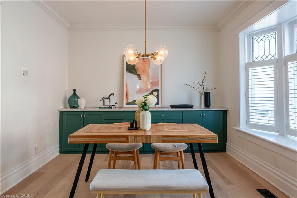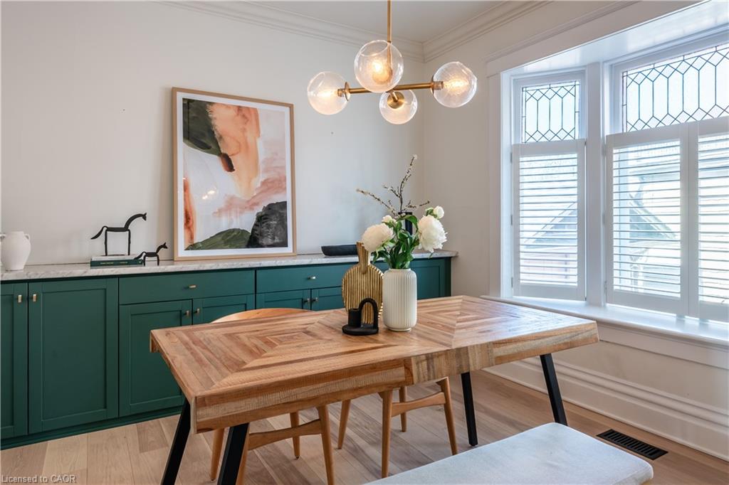 TURNKEY LEGAL DUPLEX IN THE HEART OF KITCHENER’S EAST WARD! Whether you’re seeking a family home, a mortgage helper, an in-law suite, or a turnkey rental, the flexibility here is exceptional. This stunning century-style home blends timeless elegance with modern luxury and offers a thoughtful layout. Currently operating as a successful Airbnb, this property also has the potential to be two fully independent rental units. Sitting on a desirable corner lot in a vibrant, family-friendly neighbourhood, the home feels warm and welcoming the moment you arrive. A charming front porch sets the tone, while inside you’ll find soaring ceilings, abundant natural light, and thoughtful renovations that respect the home’s character while delivering modern comfort. The main floor features a home office, a spacious living room that flows into a dedicated dining area with built-in cabinetry, and a stylish powder room. The chef’s kitchen is a true showstopper, with quartz countertops, sleek cabinetry, subway tile with dark grout, a gas range, stainless steel appliances, and striking charcoal mosaic floor tiles. Perfect for both everyday living and entertaining. Up the maple hardwood stairs, you’ll find three comfortable bedrooms, a spa-like bathroom with heated floors, and laundry room. One level higher, the finished attic offers even more value – perfect as an additional bedroom, creative studio, or cozy retreat. The lower level, with its own private entrance and laundry is fully finished – ideal for extended family, tenants, or continued Airbnb income. Outdoors, enjoy multiple spaces including a fenced patio, side yard, and a two-car detached garage with concrete driveway. Located just minutes to the LRT, Downtown Kitchener, Uptown Waterloo, and quick hwy access, you’ll also enjoy nearby parks, top-rated schools, restaurants, coffee shops, shopping, and more. A rare gem that seamlessly combines history, charm, and modern upgrades – this one truly has it all.