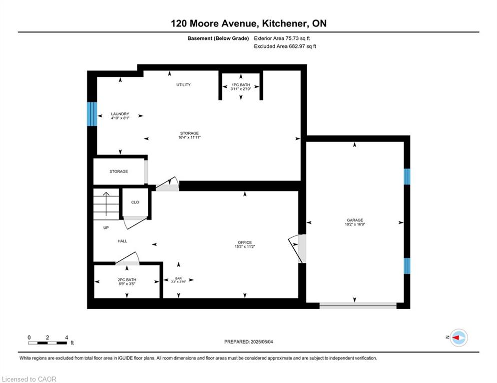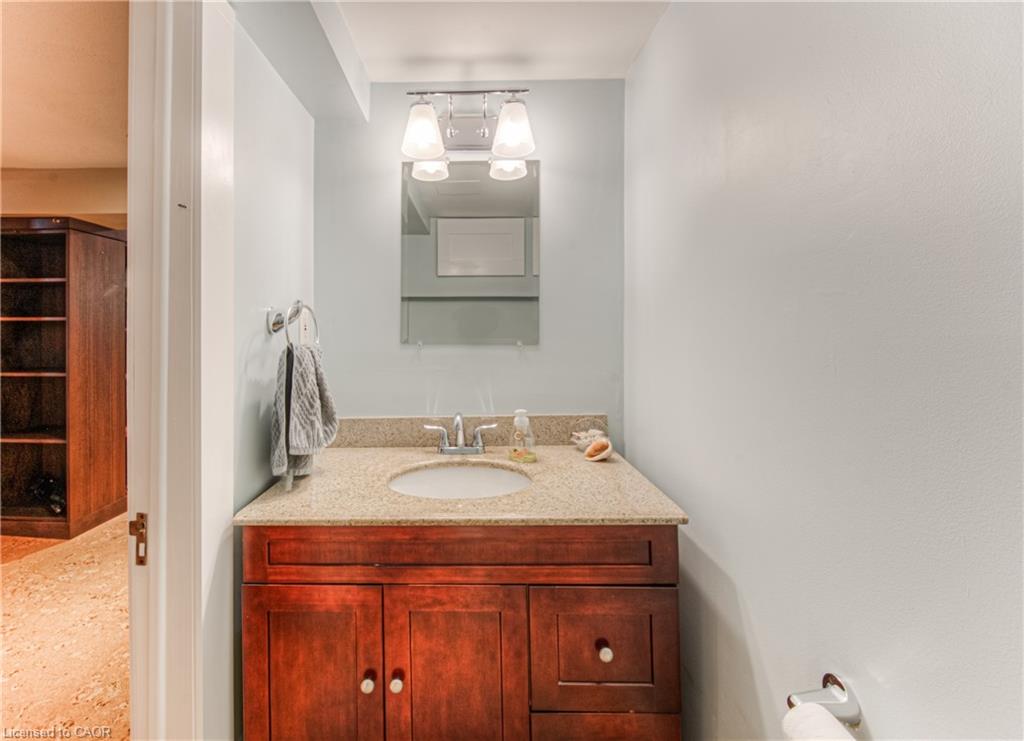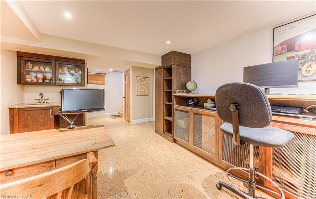 The basement includes a convenient two-piece bathroom and a versatile area ideal for a home office, den, or additional living space, with walk-up access to the single-car garage.