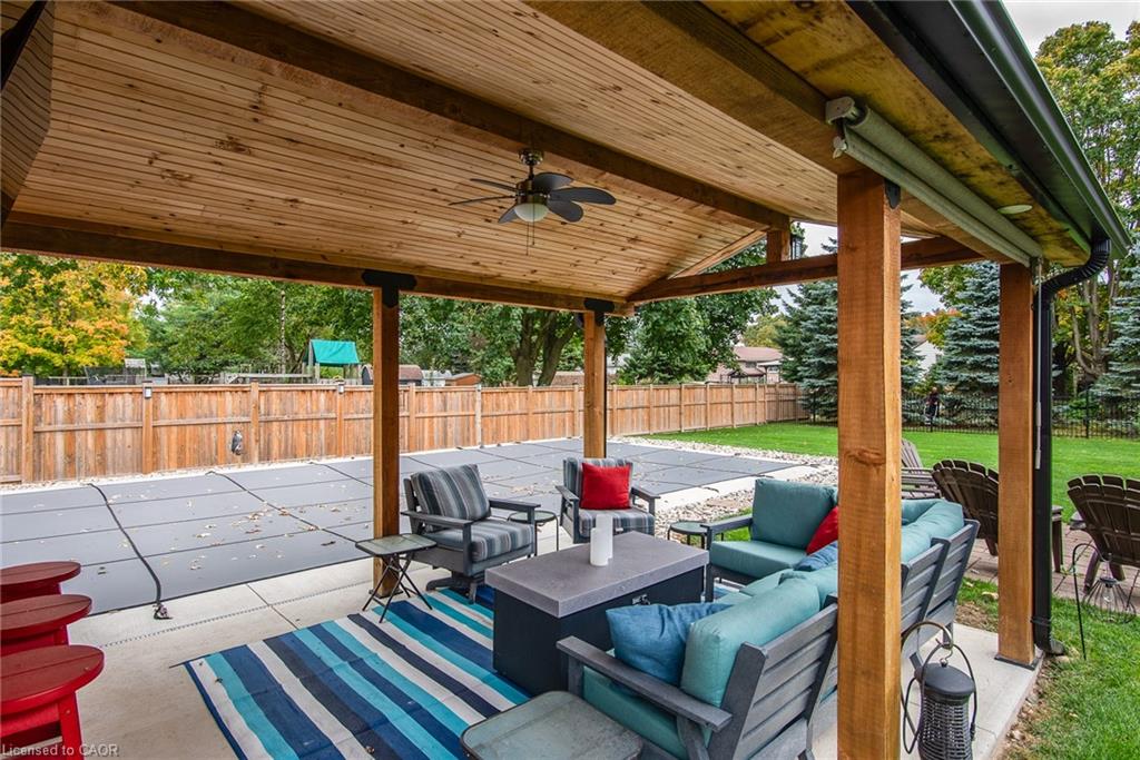 The backyard is truly a showstopper. A large deck overlooks the pool area, perfect for hosting summer gatherings or simply relaxing under the covered patio. Whether you’re entertaining guests or enjoying quiet evenings outdoors, this space offers the ideal setting.