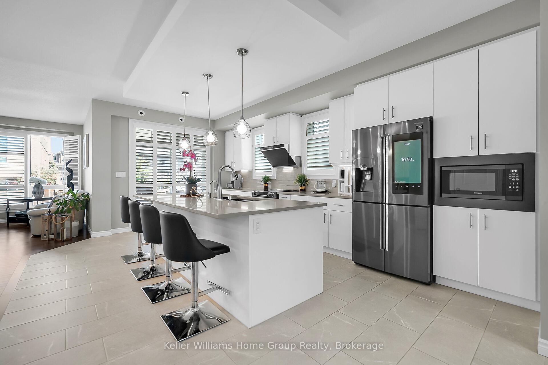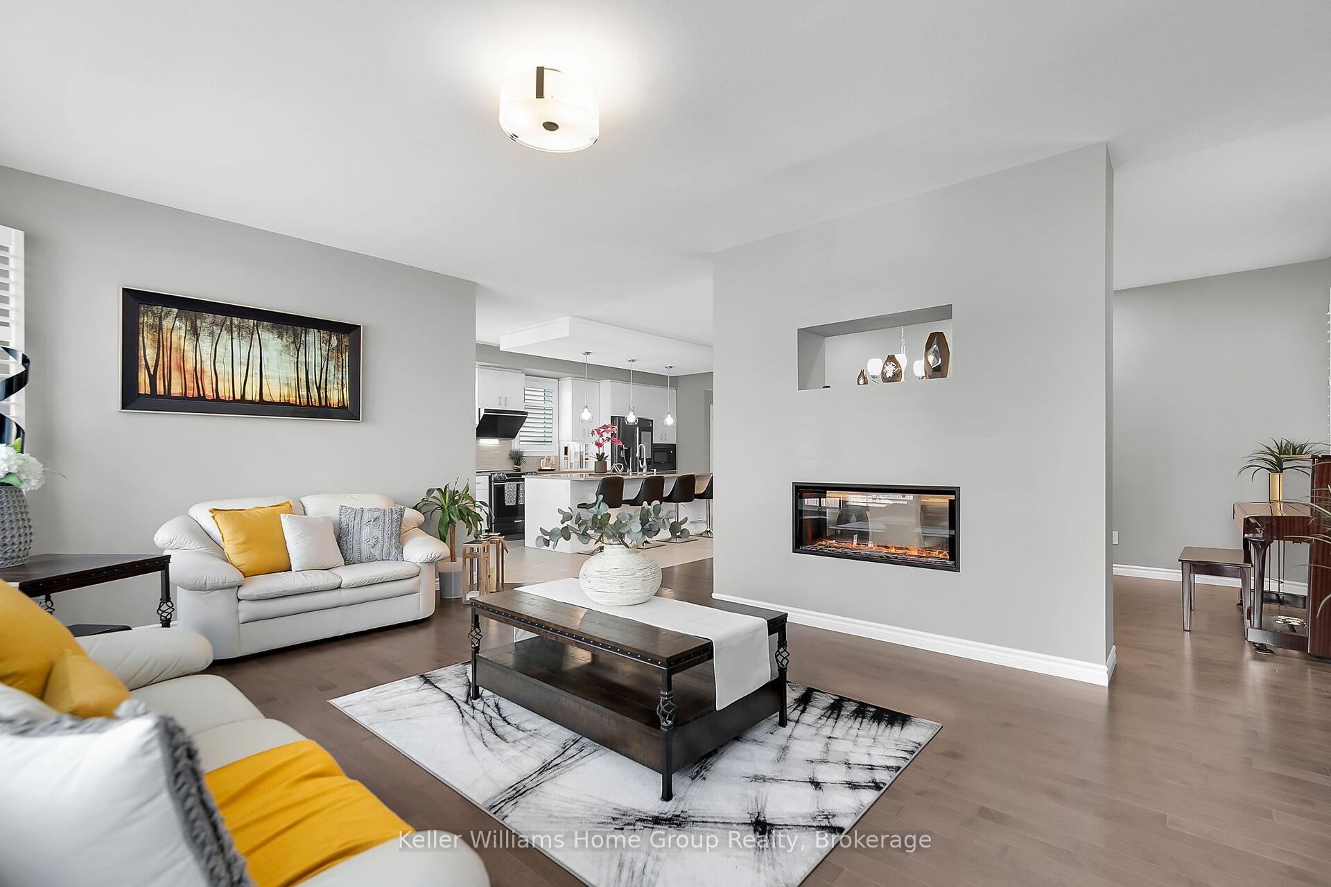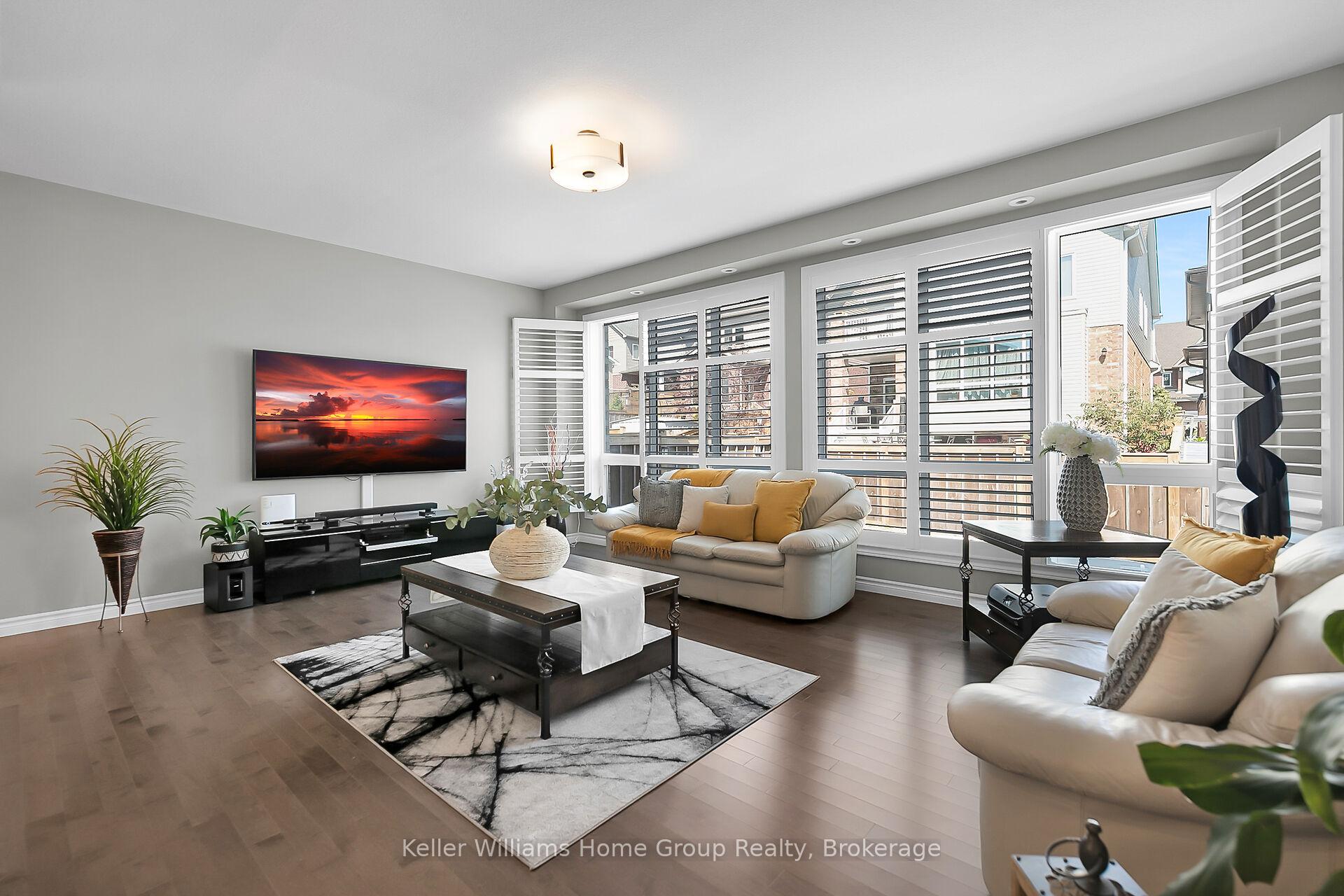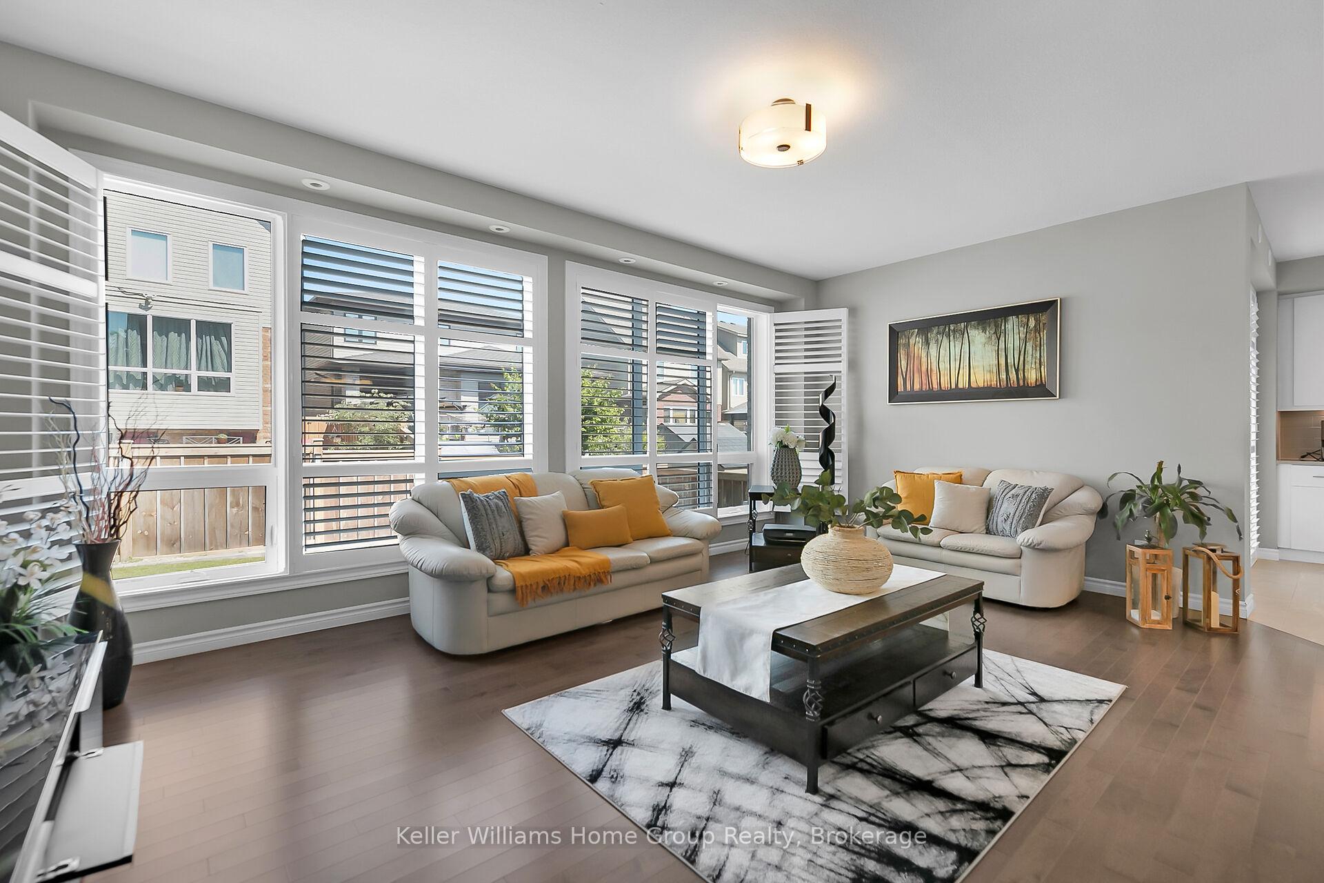 This almost 3000 sq ft Teraview Net Zero ready home sits within the sought-after Hart Village in Guelph’s South end. Step into the 18 foot open front foyer, and gaze into its elegant open concept main, with its soaring 9 foot ceilings. The kitchen presents quartz countertops, as well as upgraded appliances and and a walk-in pantry for more convenient storage. The living room/dining room spaces are separated by a double sided electric steam fireplace that you’ll absolutely love. Out the rear sliders we come into a very trim fully fenced yard with a regulation escape window for the apartment ready basement. And if you’re looking to add either an in-law suite or a second unit, there’s already a completely separate entry for the basement. Upstairs features four luxurious bedrooms, including a rare set-up of two primary bedrooms, with the other two bedrooms joined by a cheater bathroom. Both primary bedrooms feature an ensuite and a walk-in closet. There’s also a convenient top floor laundry to save on chore time. And a double car garage with driveway parking for at least 4 cars and NO sidewalk. We all know that the South end is the best area in the city for its convenience, and some of the best schools in the city. Rickson Ridge Public is a short 5 minute walk away. Access to the 401, the University, and all of the nearby malls and restaurants make this home an easy choice.