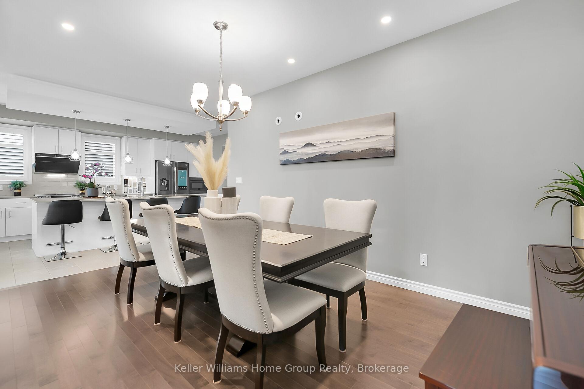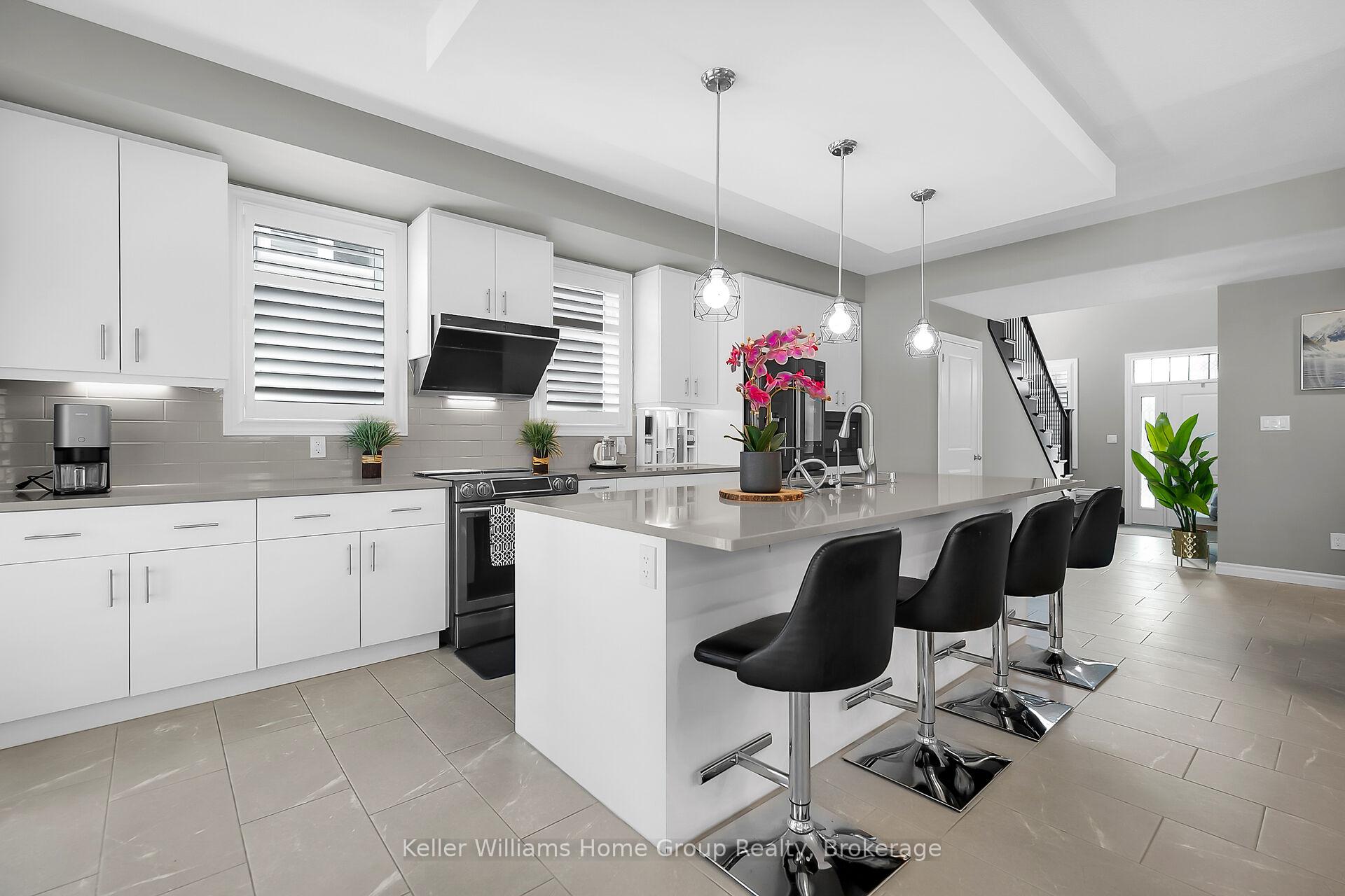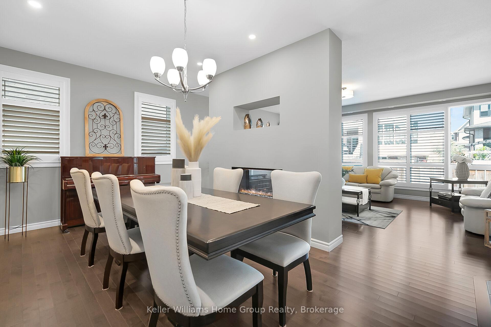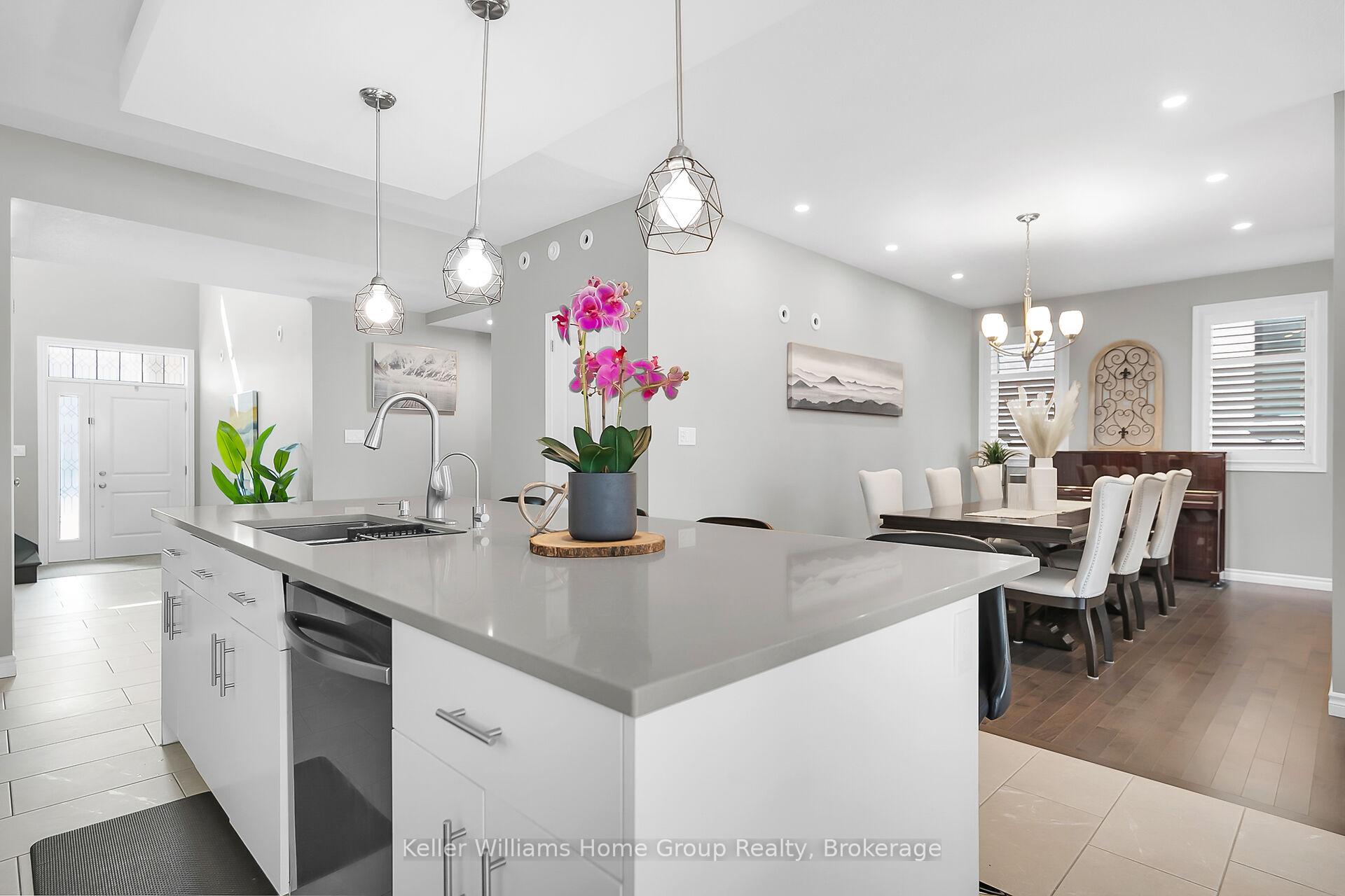 This almost 3000 sq ft Teraview Net Zero ready home sits within the sought-after Hart Village in Guelph’s South end. Step into the 18 foot open front foyer, and gaze into its elegant open concept main, with its soaring 9 foot ceilings. The kitchen presents quartz countertops, as well as upgraded appliances and and a walk-in pantry for more convenient storage. The living room/dining room spaces are separated by a double sided electric steam fireplace that you’ll absolutely love. Out the rear sliders we come into a very trim fully fenced yard with a regulation escape window for the apartment ready basement. And if you’re looking to add either an in-law suite or a second unit, there’s already a completely separate entry for the basement. Upstairs features four luxurious bedrooms, including a rare set-up of two primary bedrooms, with the other two bedrooms joined by a cheater bathroom. Both primary bedrooms feature an ensuite and a walk-in closet. There’s also a convenient top floor laundry to save on chore time. And a double car garage with driveway parking for at least 4 cars and NO sidewalk. We all know that the South end is the best area in the city for its convenience, and some of the best schools in the city. Rickson Ridge Public is a short 5 minute walk away. Access to the 401, the University, and all of the nearby malls and restaurants make this home an easy choice.