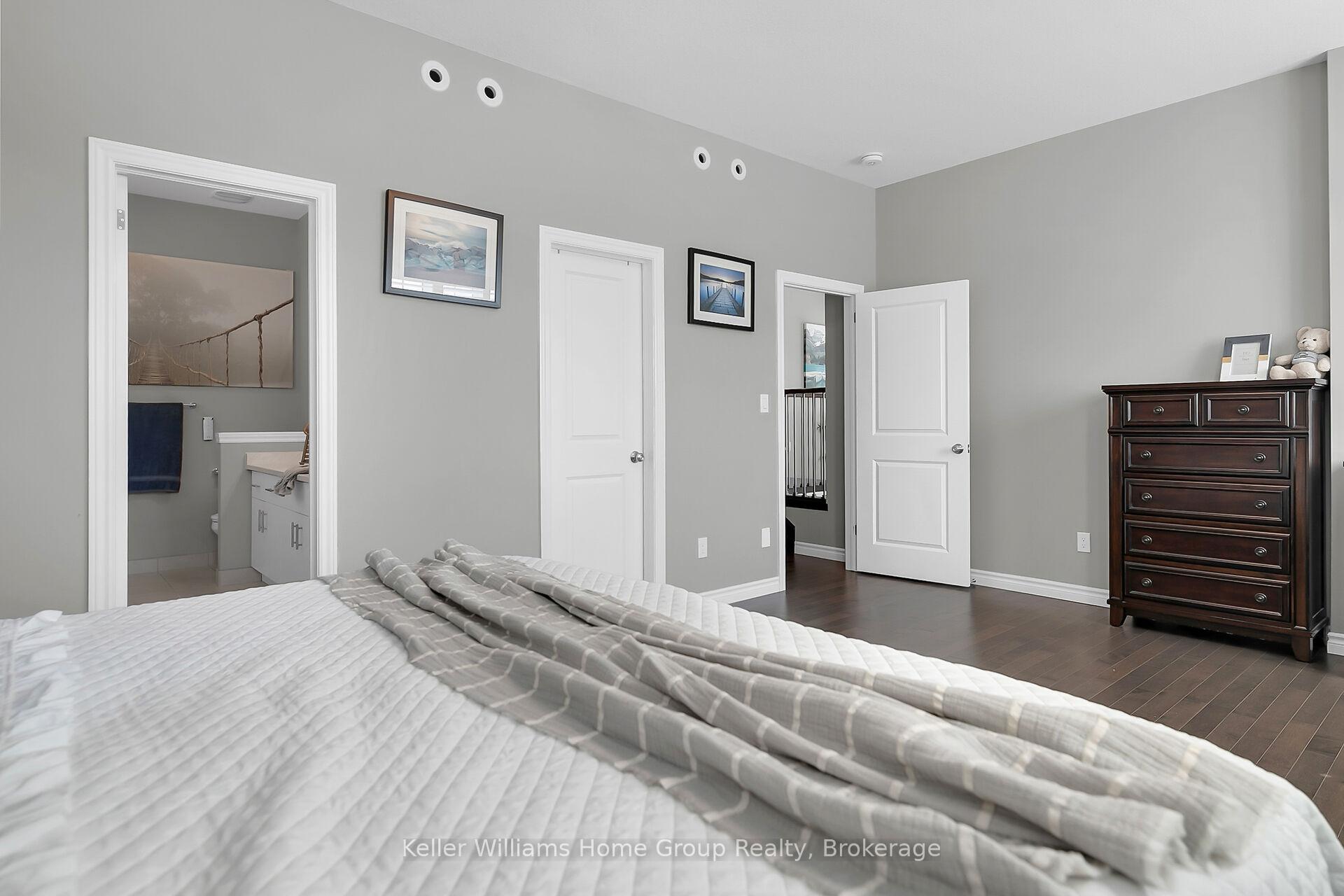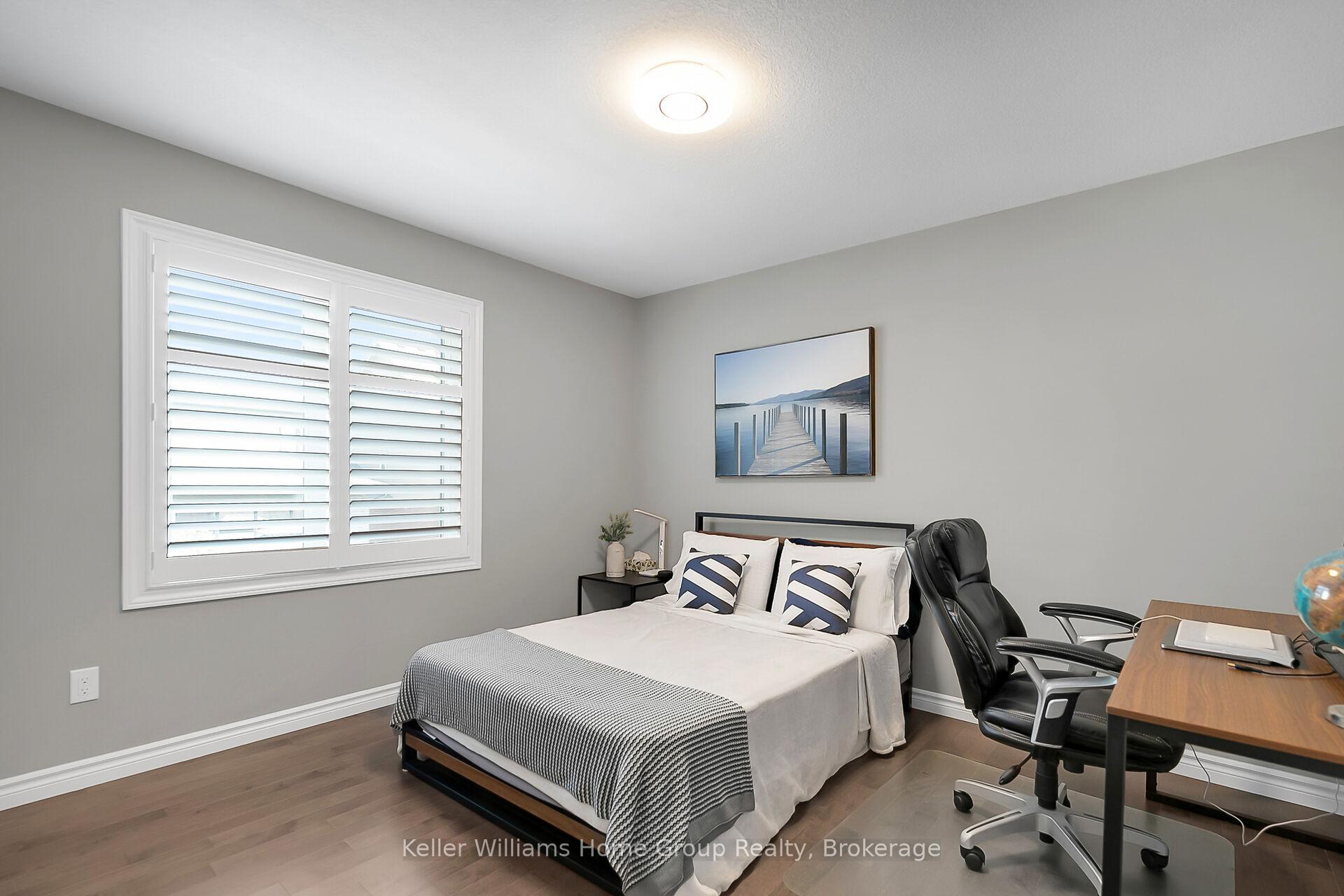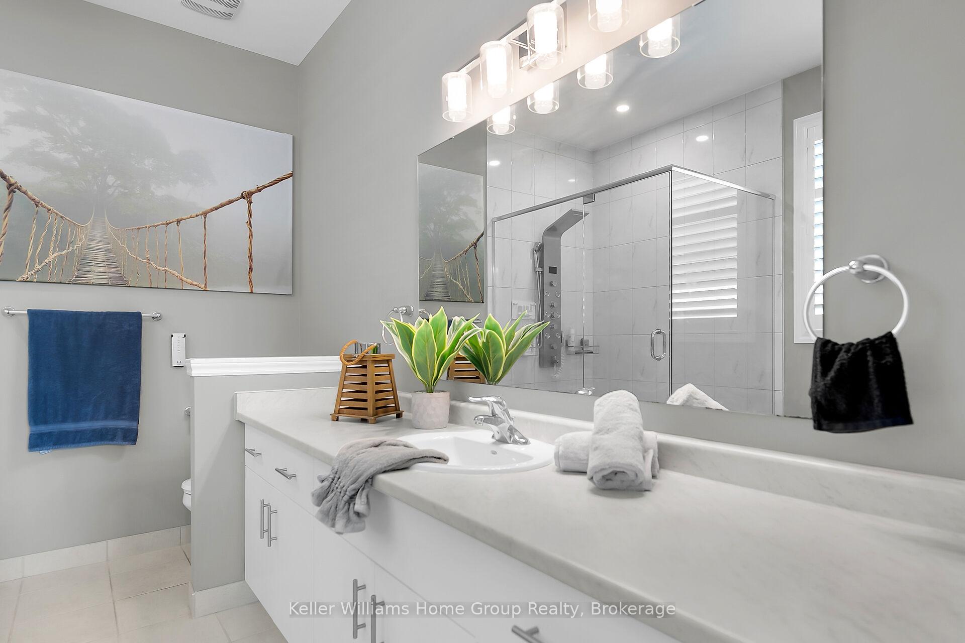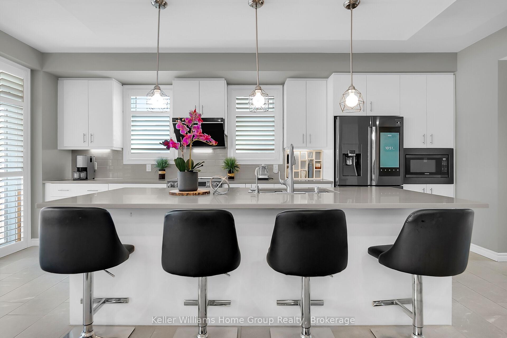 This almost 3000 sq ft Teraview Net Zero ready home sits within the sought-after Hart Village in Guelph’s South end. Step into the 18 foot open front foyer, and gaze into its elegant open concept main, with its soaring 9 foot ceilings. The kitchen presents quartz countertops, as well as upgraded appliances and and a walk-in pantry for more convenient storage. The living room/dining room spaces are separated by a double sided electric steam fireplace that you’ll absolutely love. Out the rear sliders we come into a very trim fully fenced yard with a regulation escape window for the apartment ready basement. And if you’re looking to add either an in-law suite or a second unit, there’s already a completely separate entry for the basement. Upstairs features four luxurious bedrooms, including a rare set-up of two primary bedrooms, with the other two bedrooms joined by a cheater bathroom. Both primary bedrooms feature an ensuite and a walk-in closet. There’s also a convenient top floor laundry to save on chore time. And a double car garage with driveway parking for at least 4 cars and NO sidewalk. We all know that the South end is the best area in the city for its convenience, and some of the best schools in the city. Rickson Ridge Public is a short 5 minute walk away. Access to the 401, the University, and all of the nearby malls and restaurants make this home an easy choice.