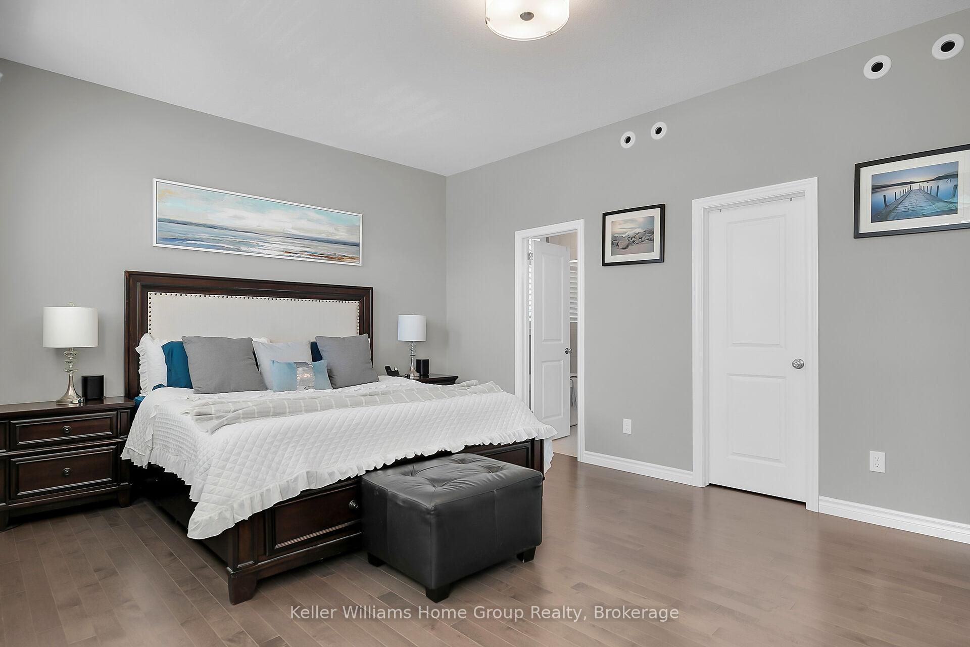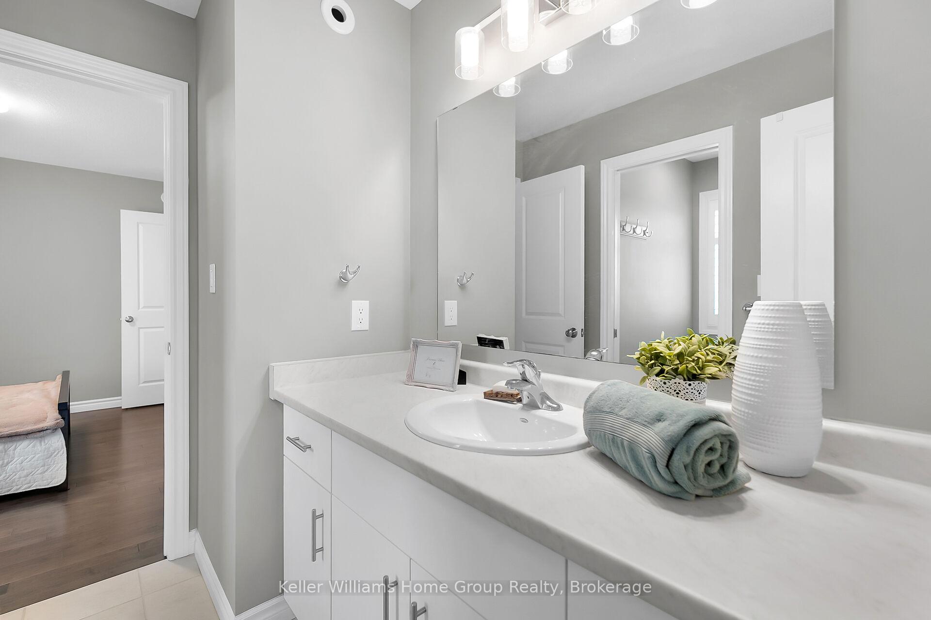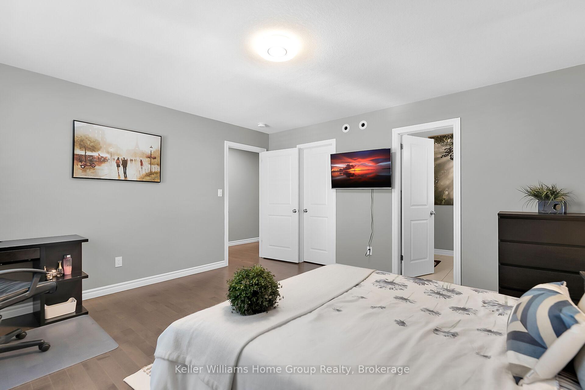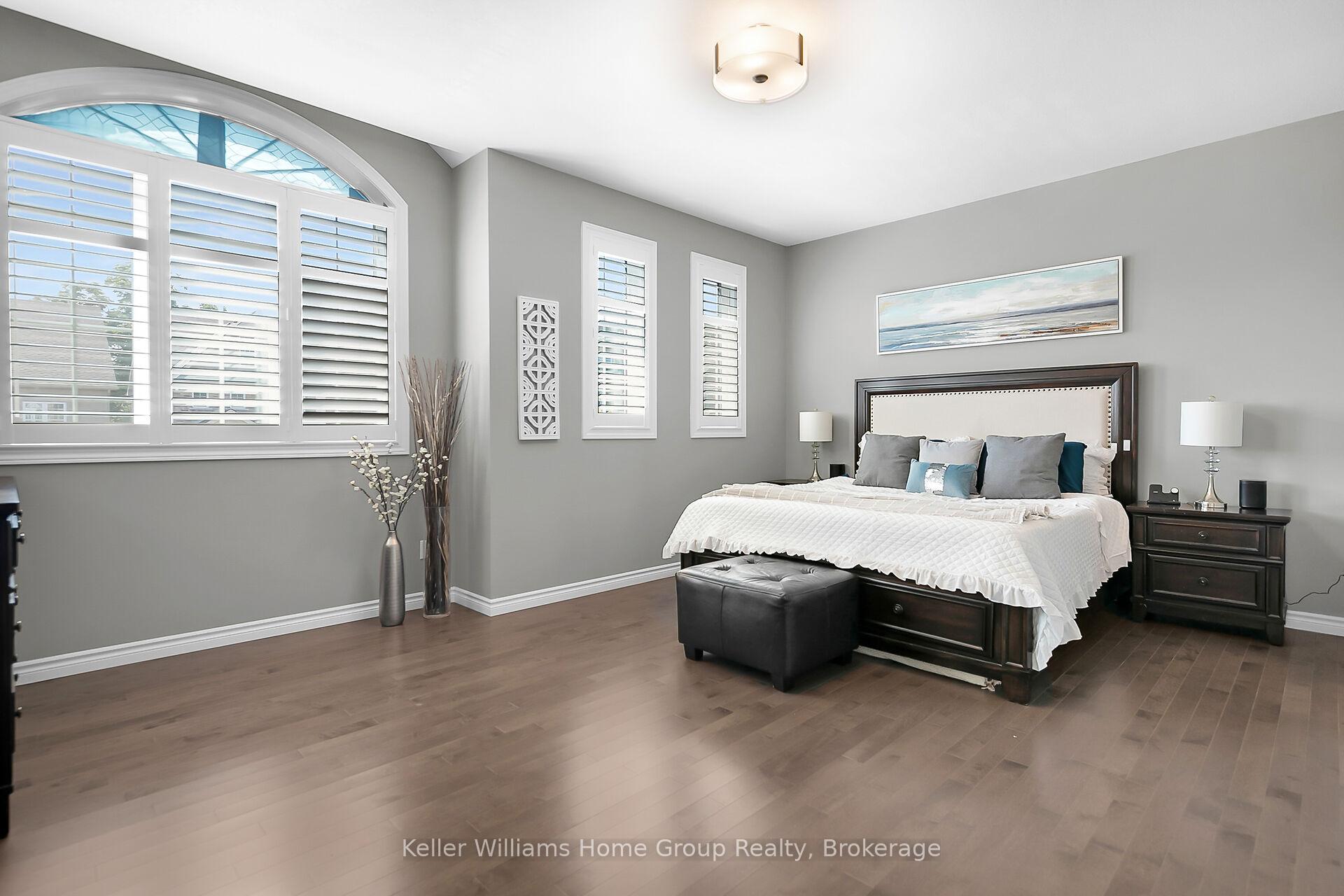 This almost 3000 sq ft Teraview Net Zero ready home sits within the sought-after Hart Village in Guelph’s South end. Step into the 18 foot open front foyer, and gaze into its elegant open concept main, with its soaring 9 foot ceilings. The kitchen presents quartz countertops, as well as upgraded appliances and and a walk-in pantry for more convenient storage. The living room/dining room spaces are separated by a double sided electric steam fireplace that you’ll absolutely love. Out the rear sliders we come into a very trim fully fenced yard with a regulation escape window for the apartment ready basement. And if you’re looking to add either an in-law suite or a second unit, there’s already a completely separate entry for the basement. Upstairs features four luxurious bedrooms, including a rare set-up of two primary bedrooms, with the other two bedrooms joined by a cheater bathroom. Both primary bedrooms feature an ensuite and a walk-in closet. There’s also a convenient top floor laundry to save on chore time. And a double car garage with driveway parking for at least 4 cars and NO sidewalk. We all know that the South end is the best area in the city for its convenience, and some of the best schools in the city. Rickson Ridge Public is a short 5 minute walk away. Access to the 401, the University, and all of the nearby malls and restaurants make this home an easy choice.