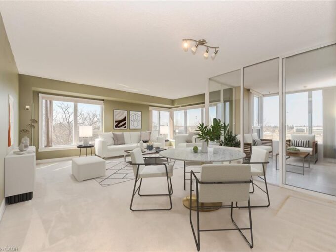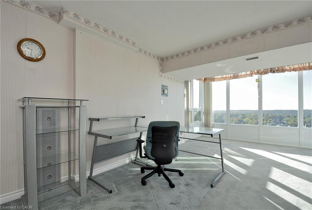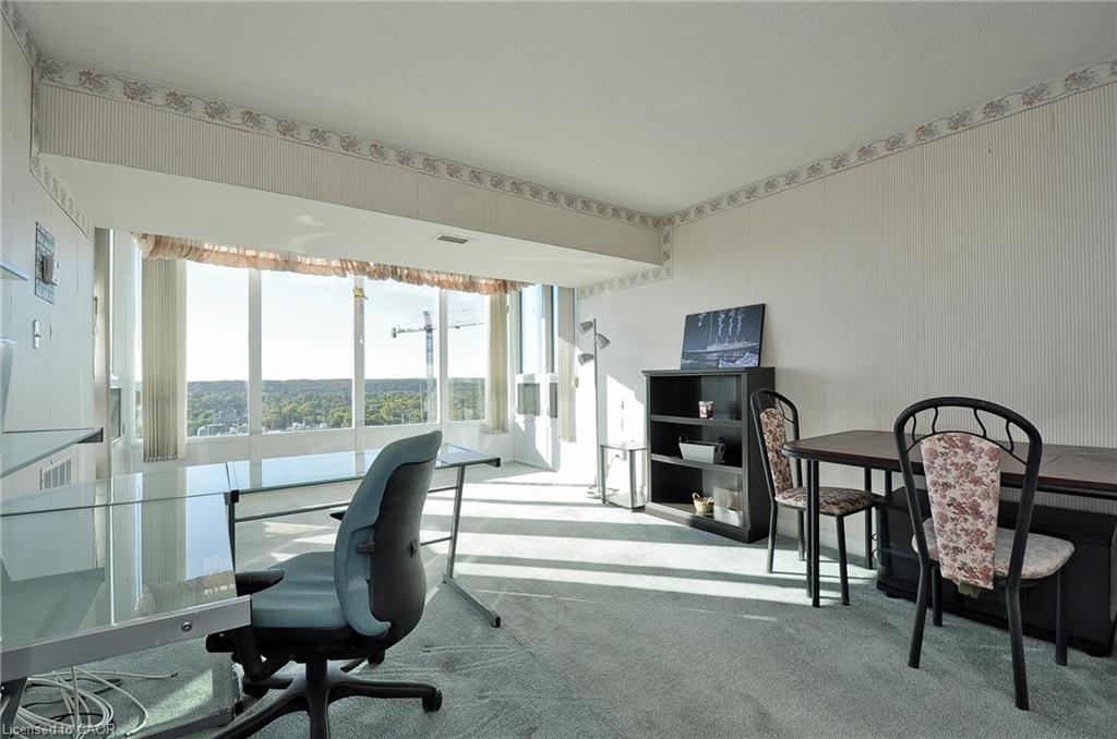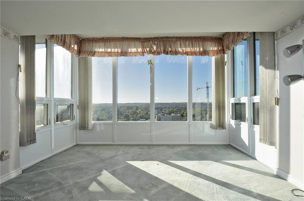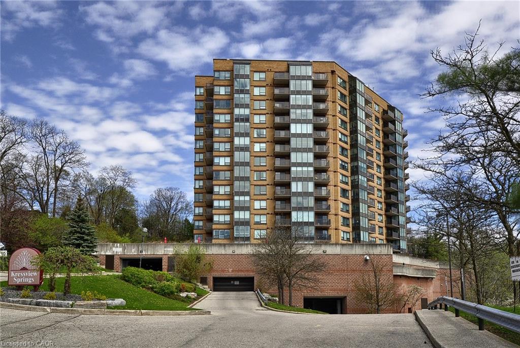 Experience the best views in the city — watch both the sunrise and sunset from this stunning 12th-floor suite at Kressview Springs Condominium! Overlooking the Grand River and Riverside Park, this spacious 2-bedroom, 2-bath unit combines comfort, convenience, and natural beauty. The open-concept living and dining area is ideal for entertaining or relaxing, while two generous bedrooms offer comfort and flexibility. Enjoy two private balconies, each showcasing breathtaking panoramic views — perfect for morning coffee, evening reflection, or hosting friends. This home also features in-suite laundry and ample storage for everyday ease. Kressview Springs offers resort-style amenities including a heated indoor pool, sauna, fitness center, games and party room with billiards, workshop, and an elegant grand foyer. Located near scenic trails, shopping, and major routes, this is more than just a home — it’s a lifestyle. Don’t miss your chance to make it yours!