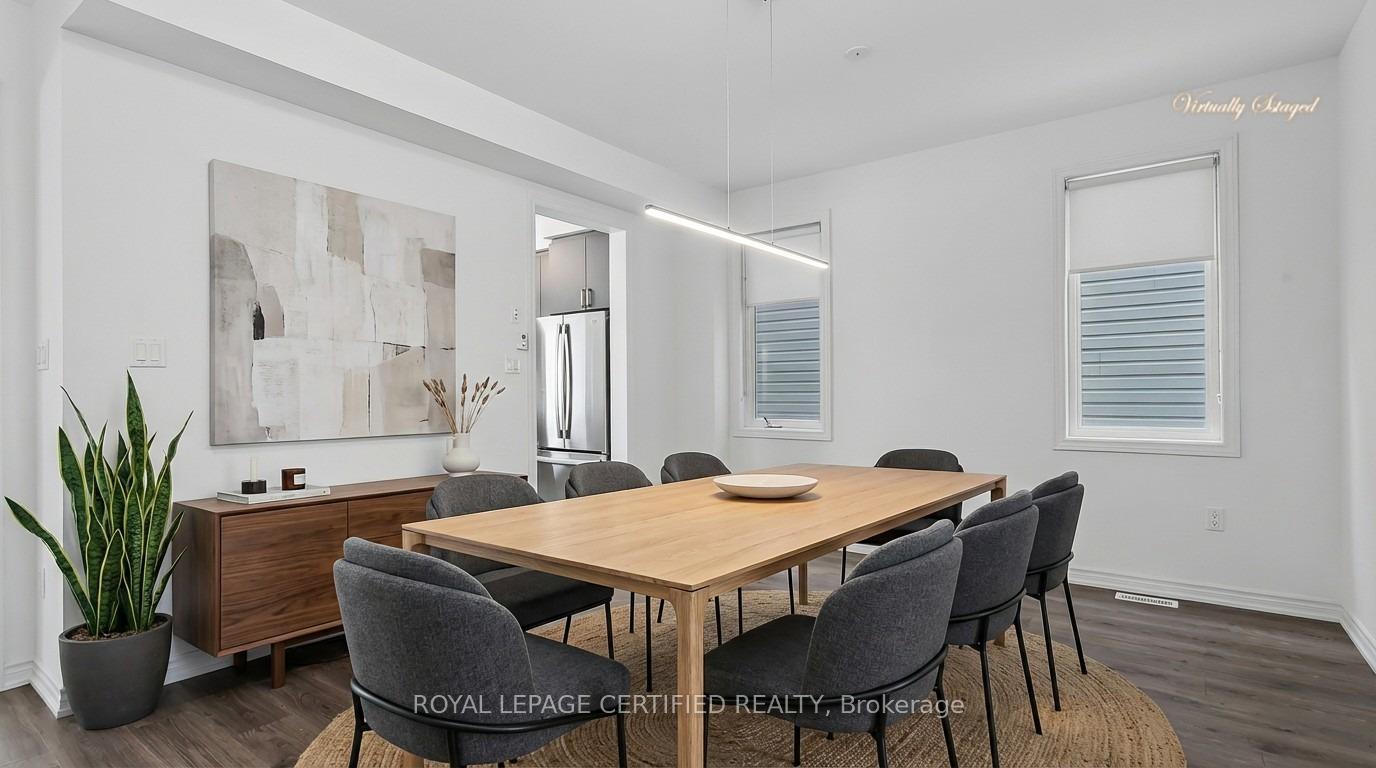 Set in the charming community of Fergus, this impressive 3,000+ sq ft two-storey residence offers a rare combination of space, design, and convenience. Less than 30 minutes to the University of Guelph, approximately 35 minutes to the University of Waterloo, and about 25 minutes to the Guelph Central GO Station. An ideal opportunity for families, professionals, and commuters seeking refined living outside the city. From the covered front porch step into a grand foyer that immediately impresses with soaring ceilings and an open, airy staircase overlooking the elegant dining and living area. The expansive open-concept main floor is thoughtfully designed for both everyday living and hosting, featuring an upgraded kitchen with centre island, seamlessly connected to a spacious family room with gas fireplace. Wide walkout sliders lead to the deck, creating an effortless indoor-outdoor lifestyle. The main level is completed by a convenient powder room, mudroom/laundry room, and direct access to the garage-where functionality meets upscale design. Upstairs, the home offers four generously sized bedrooms, three with private ensuite bathrooms. The spacious primary retreat features a his and her walk-in closets and a luxurious five-piece spa-inspired ensuite, providing a true private escape. The walkout basement features a separate entrance and presents excellent potential for an in-law or multi-generational living setup, with rough-in plumbing for a bathroom, large windows, and an open layout ready to be customized to suit your needs. A remarkable home that balances elegance, comfort, and location. This is a standout opportunity to own a truly impressive property in one of the most desirable neighbourhood in Fergus.