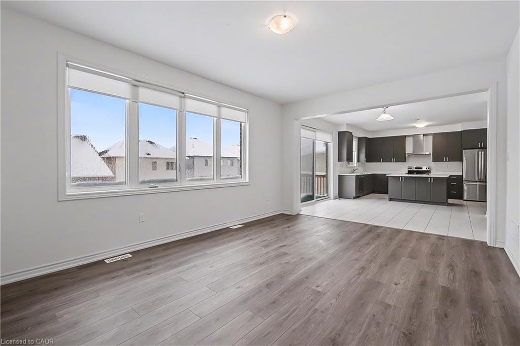 Set in the charming community of Fergus, this impressive 3,000+ sq ft two-storey residence offers a rare combination of space, design, and convenience. Less than 30 minutes to the University of Guelph, approximately 35 minutes to the University of Waterloo, and about 25 minutes to the Guelph Central GO Station. An ideal opportunity for families, professionals, and commuters seeking refined living outside the city. From the covered front porch step into a grand foyer that immediately impresses with soaring ceilings and an open, airy staircase overlooking the elegant dining and living area. The expansive open-concept main floor is thoughtfully designed for both everyday living and hosting, featuring an upgraded kitchen with centre island, seamlessly connected to a spacious family room with gas fireplace. Wide walkout sliders lead to the deck, creating an effortless indoor-outdoor lifestyle. The main level is completed by a convenient powder room, mudroom/laundry room, and direct access to the garage-where functionality meets upscale design. Upstairs, the home offers four generously sized bedrooms, three with private ensuite bathrooms. The spacious primary retreat features a his and her walk-in closets and a luxurious five-piece spa-inspired ensuite, providing a true private escape. The walkout basement features a separate entrance and presents excellent potential for an in-law or multi-generational living setup, with rough-in plumbing for a bathroom, large windows, and an open layout ready to be customized to suit your needs. A remarkable home that balances elegance, comfort, and location. This is a standout opportunity to own a truly impressive property in one of the most desirable neighbourhood in Fergus.