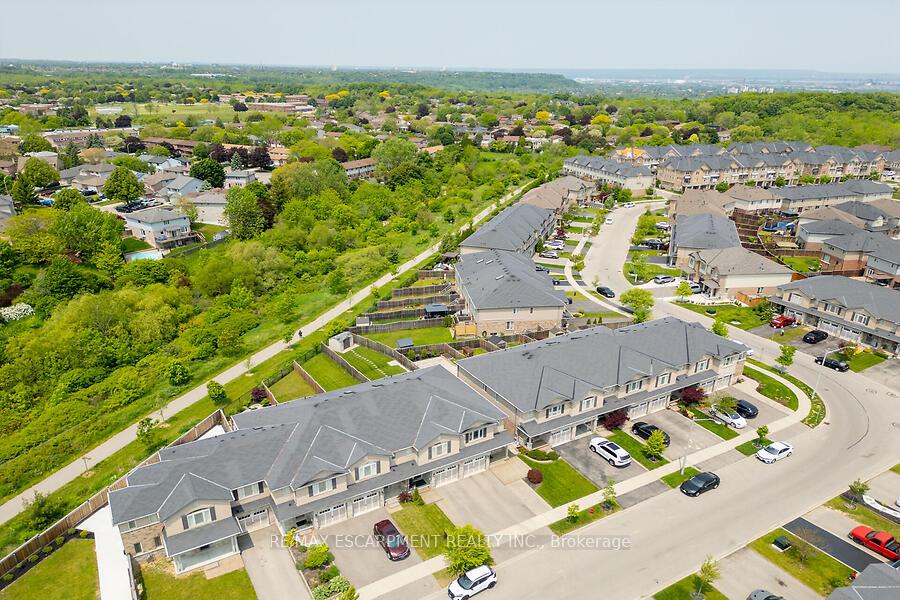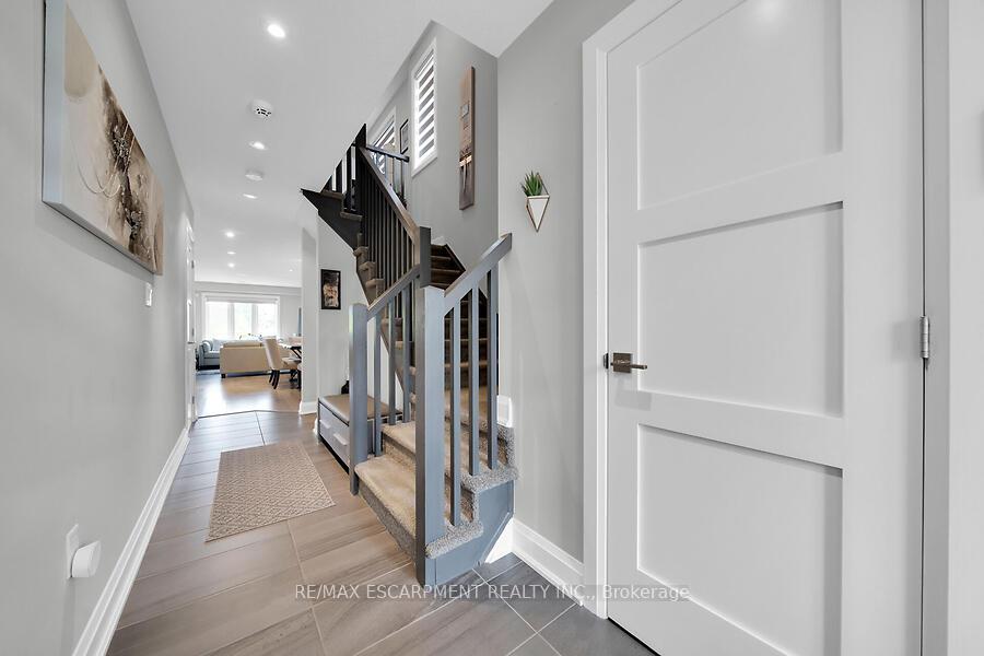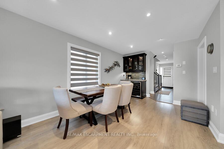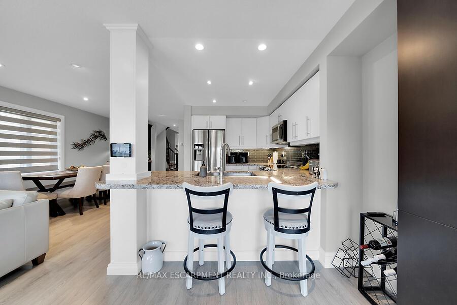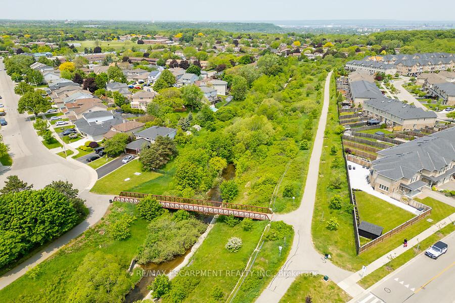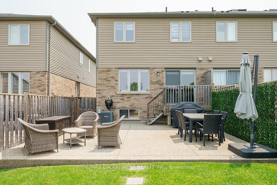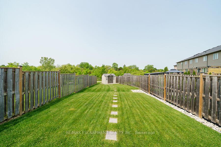 This custom-designed 1,700+ sq. ft. freehold end-unit townhome sits on an oversized lot and offers a perfect blend of style and functionality. The open-concept main floor boasts a spacious dining area with a servery/coffee bar/wine cooler, a bright white kitchen with granite counters and newer appliances, and a stunning great room with an electric fireplace feature wall and custom built-ins – an ideal setting for entertaining. Upstairs, you’ll find a versatile loft, a full main bath, and three bedrooms, including a primary suite with walk-in closet and private 4-piece ensuite. The lower level is unfinished, Step out from the great room to a tiered patio overlooking a private, fenced backyard with no rear neighbours and direct access to the Felker Falls trail system. Additional highlights include double-wide parking and a prime location within walking distance to schools, parks, Valley Park Recreation Centre, and scenic trails, plus just minutes to shopping, restaurants, the Red Hill, LINC, and QEW for easy commuting.