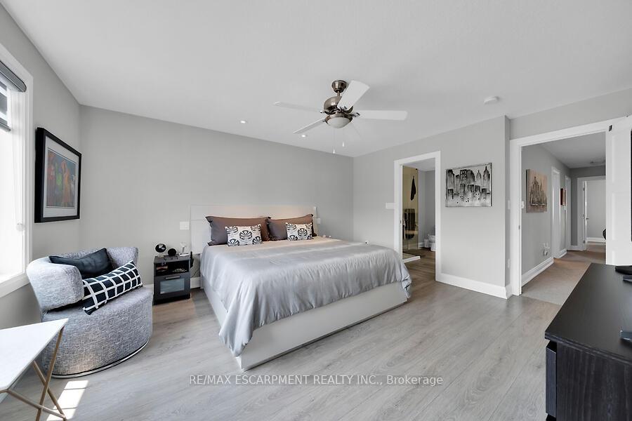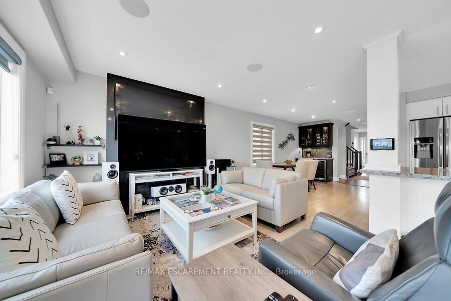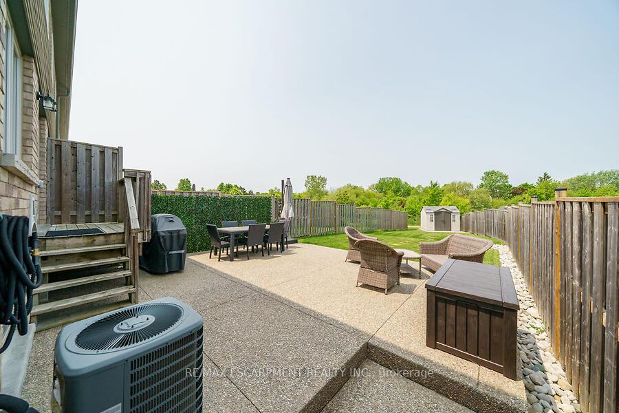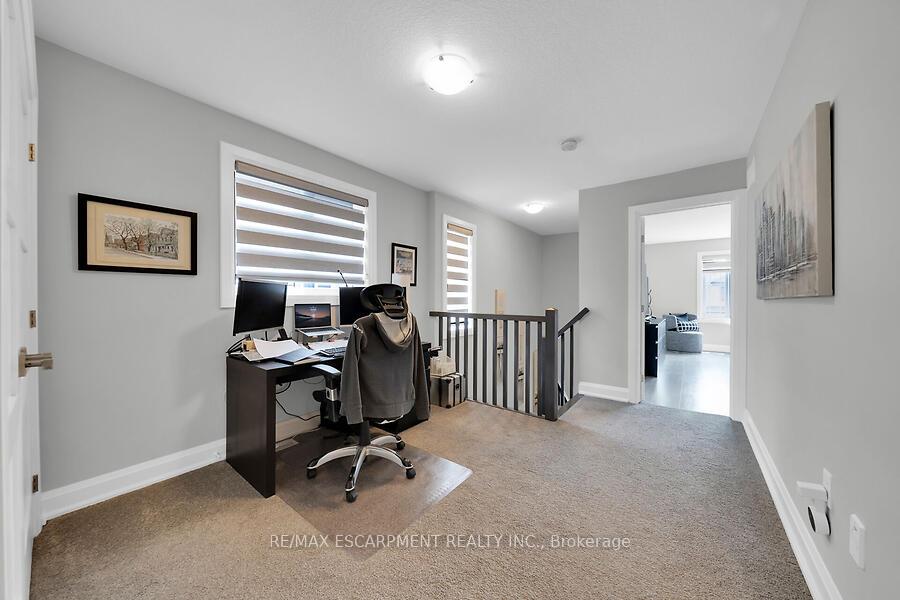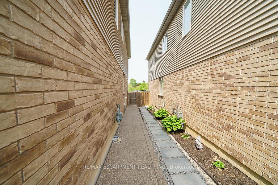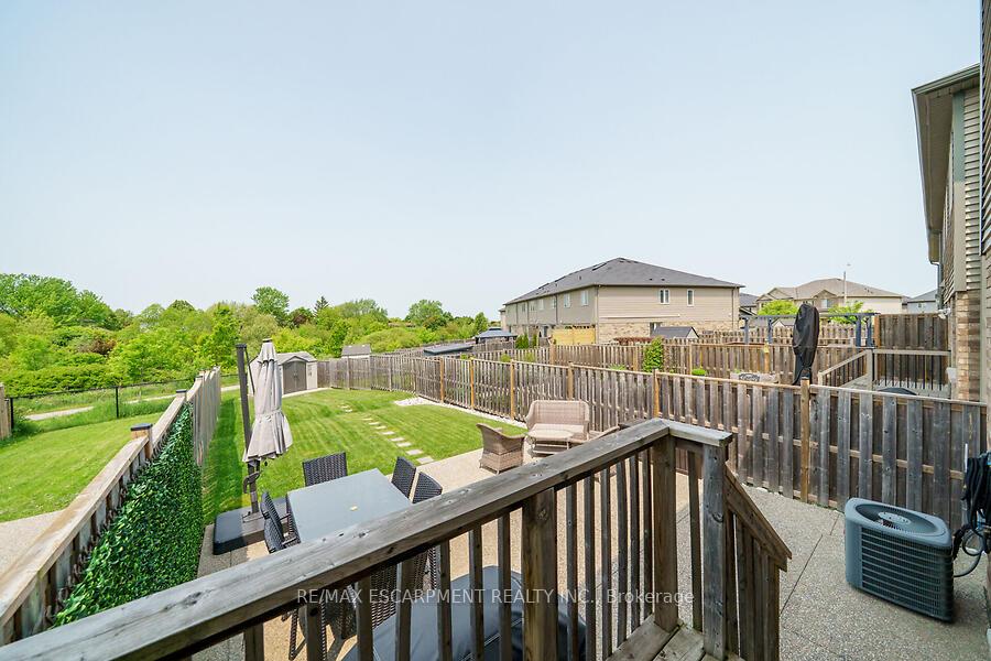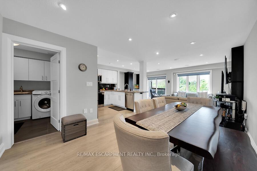 This custom-designed 1,700+ sq. ft. freehold end-unit townhome sits on an oversized lot and offers a perfect blend of style and functionality. The open-concept main floor boasts a spacious dining area with a servery/coffee bar/wine cooler, a bright white kitchen with granite counters and newer appliances, and a stunning great room with an electric fireplace feature wall and custom built-ins – an ideal setting for entertaining. Upstairs, you’ll find a versatile loft, a full main bath, and three bedrooms, including a primary suite with walk-in closet and private 4-piece ensuite. The lower level is unfinished, Step out from the great room to a tiered patio overlooking a private, fenced backyard with no rear neighbours and direct access to the Felker Falls trail system. Additional highlights include double-wide parking and a prime location within walking distance to schools, parks, Valley Park Recreation Centre, and scenic trails, plus just minutes to shopping, restaurants, the Red Hill, LINC, and QEW for easy commuting.