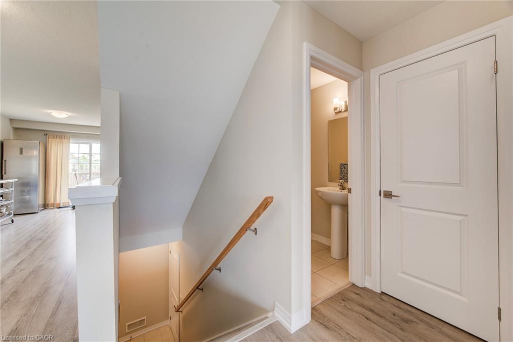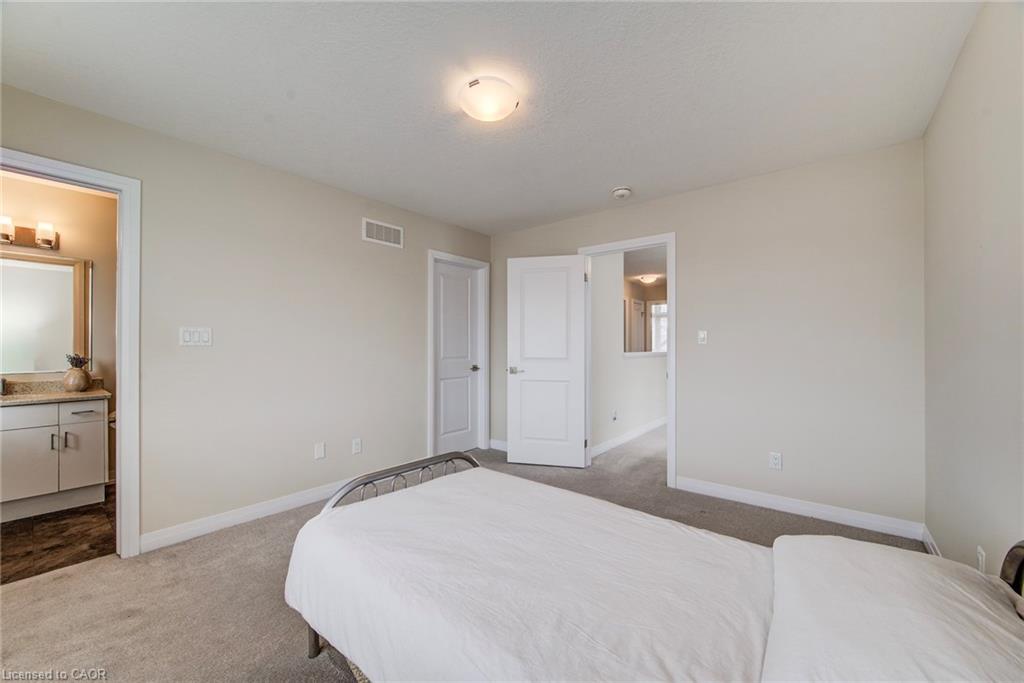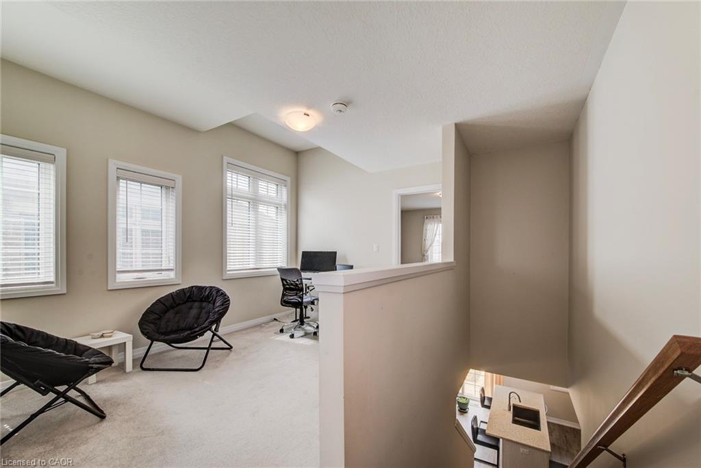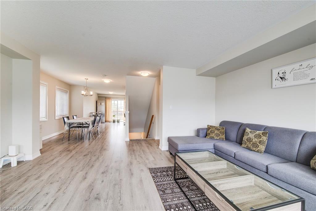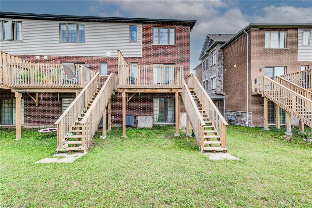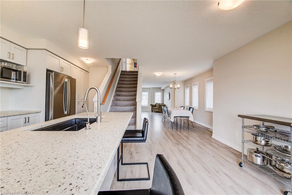 LARGE END UNIT TOWNHOME CLOSE TO 2000SF WITH WALKOUT BASEMENT & 2 CAR GARAGE. Welcome to this beautiful 3 bedroom, 3 bathroom end-unit townhome located in the sought-after Doon South community. This home offers a 2-car garage with a double driveway, providing parking for 4 vehicles. The entry level features a versatile room—perfect as a 4th bedroom, playroom, home office, or extra living space—with a walkout to the backyard, plus laundry and utility room for convenience. The main floor boasts an open-concept layout filled with natural light from the large living room windows. The modern white kitchen offers a pull out trash bin, a deep cabinet pantry, ample cabinet and countertop space, an eat-in island, stainless steel appliances, and a walkout to a deck for outdoor enjoyment. A spacious dining area completes this inviting level. Upstairs, you’ll find a flexible loft-style space ideal for a home office or play area, 3 generous bedrooms, and a full 4-piece bathroom with granite countertops and new faucet. The primary suite includes a walk-in closet and a private 3-piece ensuite which also includes granite countertops and new faucet. Situated in a family-friendly neighborhood, minutes to the 401, close to schools, parks, trails, shopping, this home is the perfect blend of comfort and convenience.