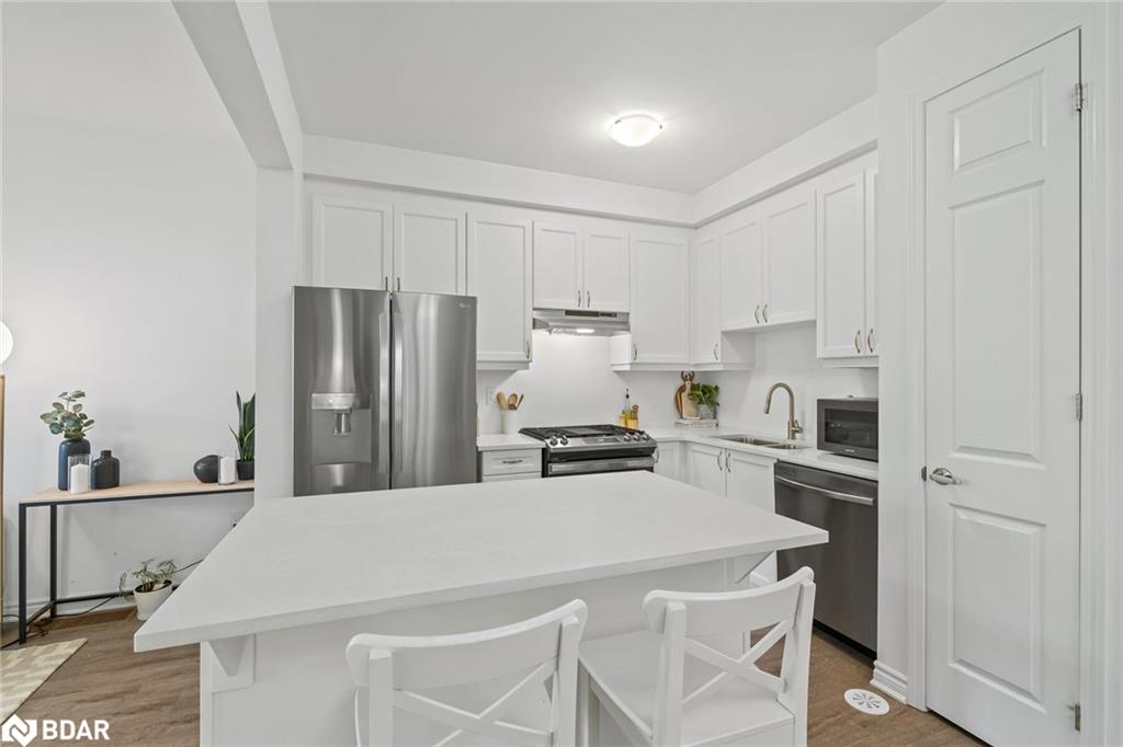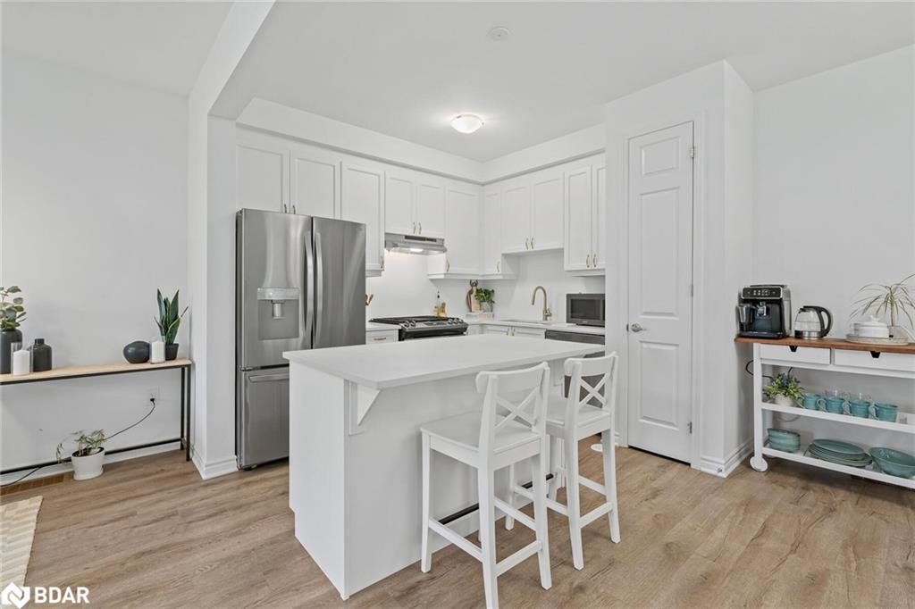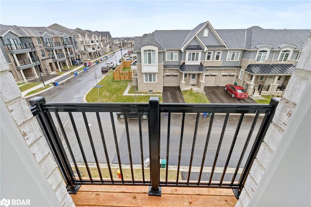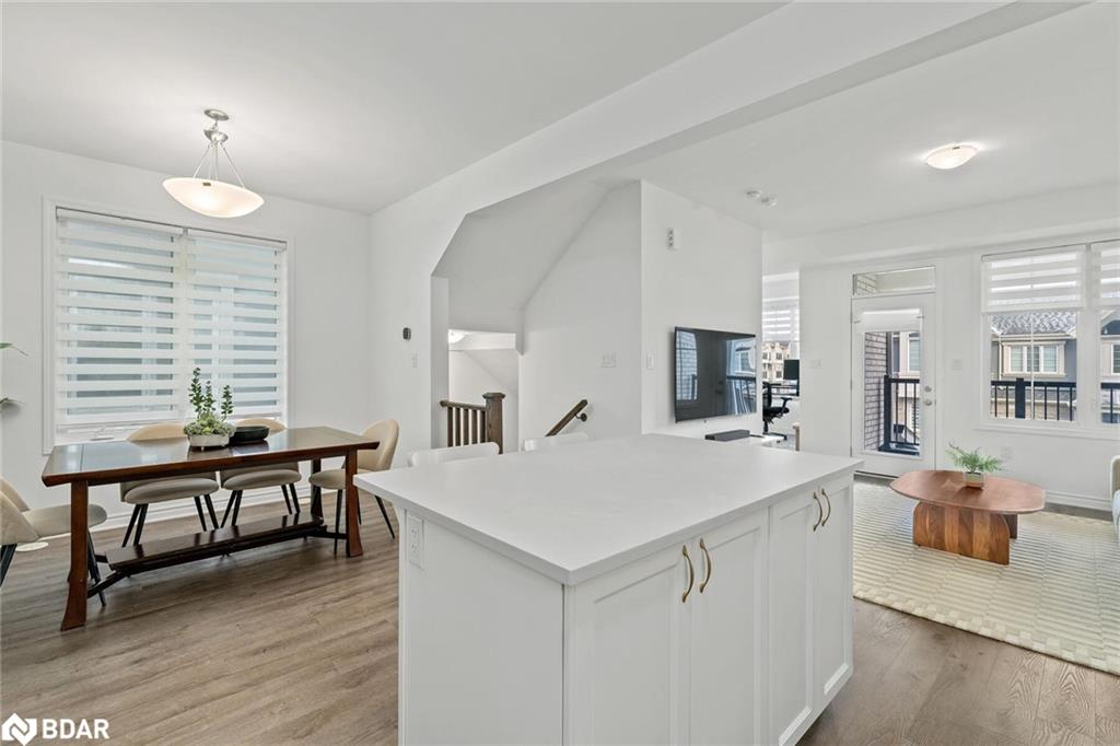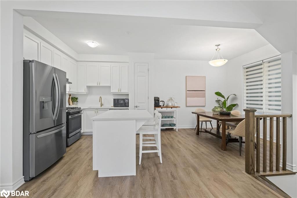 Move-in ready, beautifully finished, and built in 2024, this is the kind of home buyers dream about! Welcome to this end-unit freehold townhome in Milton, offering 3 bedrooms, 3 bathrooms, and a thoughtful contemporary layout across three levels with 2 parking spots. The main floor impresses with high 9-foot ceilings and an open-concept design featuring luxury vinyl flooring throughout. The kitchen boasts granite countertops, stainless steel appliances, including a gas stove, a centre island with seating, a pantry, and an adjacent dining area perfect for gatherings. The bright living room opens to a covered balcony with a built-in gas line for convenient BBQs. For added convenience, enjoy the separate den, ideal for an office, and it is perfect for work or study. The main floor is complemented by a convenient 2-pc bathroom. Upstairs, the third floor offers three well-sized bedrooms. The primary bedroom offers a walk-in closet and a 3-pc ensuite, while the other two bedrooms each feature double closets, with the third bedroom enhanced by a charming Juliette balcony. This level also includes a 4-pc bathroom, an ensuite laundry, and a linen closet for added convenience. The ground floor features high 9-foot ceilings, direct access to the garage equipped with an accessibility point for an optional EV charger, a spacious storage room, a double closet, tile flooring, and a baseboard heater at the entrance for added comfort. Situated in a growing Milton community, you are just minutes from parks, schools, shopping, restaurants, transit, and all your everyday essentials, making this home as practical as it is inviting.