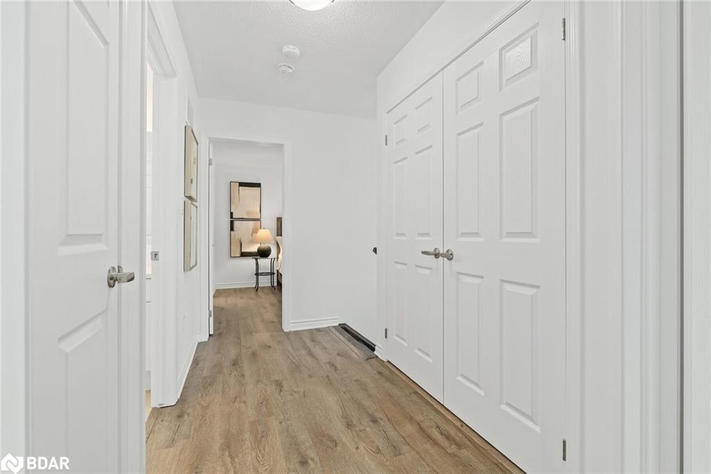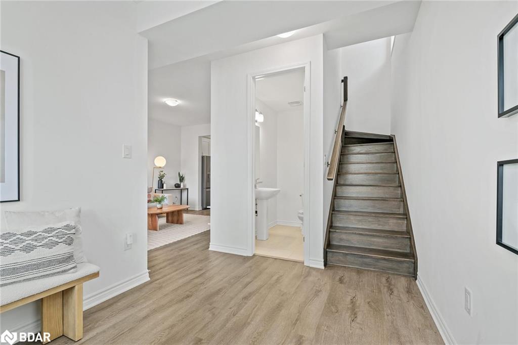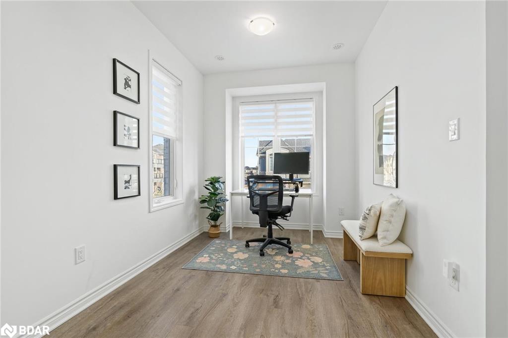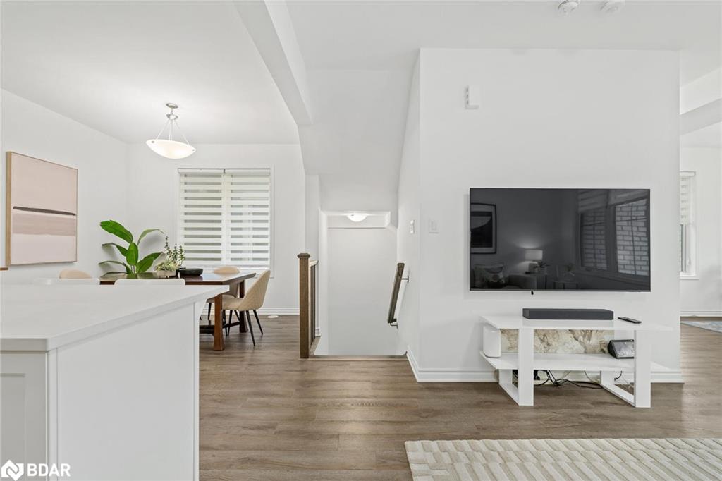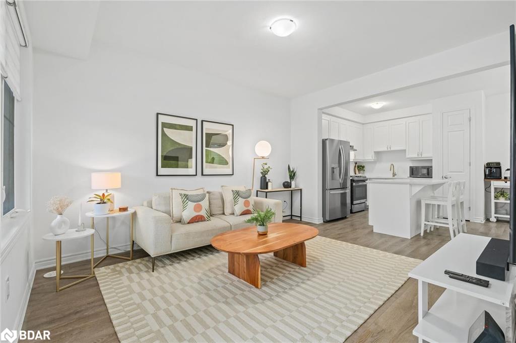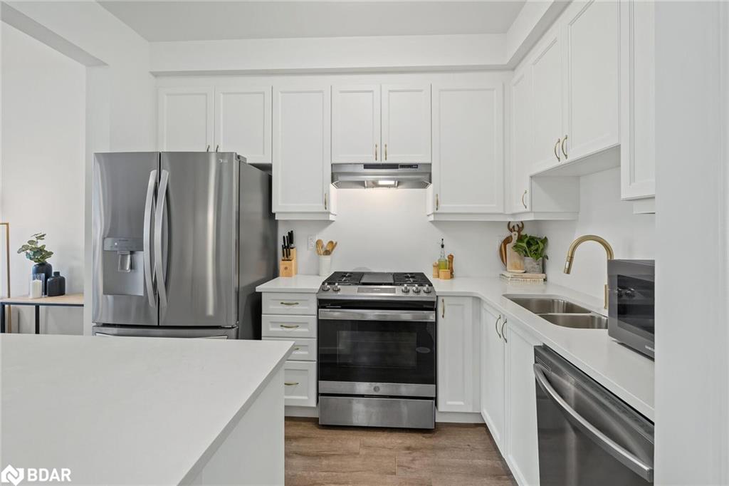 Move-in ready, beautifully finished, and built in 2024, this is the kind of home buyers dream about! Welcome to this end-unit freehold townhome in Milton, offering 3 bedrooms, 3 bathrooms, and a thoughtful contemporary layout across three levels with 2 parking spots. The main floor impresses with high 9-foot ceilings and an open-concept design featuring luxury vinyl flooring throughout. The kitchen boasts granite countertops, stainless steel appliances, including a gas stove, a centre island with seating, a pantry, and an adjacent dining area perfect for gatherings. The bright living room opens to a covered balcony with a built-in gas line for convenient BBQs. For added convenience, enjoy the separate den, ideal for an office, and it is perfect for work or study. The main floor is complemented by a convenient 2-pc bathroom. Upstairs, the third floor offers three well-sized bedrooms. The primary bedroom offers a walk-in closet and a 3-pc ensuite, while the other two bedrooms each feature double closets, with the third bedroom enhanced by a charming Juliette balcony. This level also includes a 4-pc bathroom, an ensuite laundry, and a linen closet for added convenience. The ground floor features high 9-foot ceilings, direct access to the garage equipped with an accessibility point for an optional EV charger, a spacious storage room, a double closet, tile flooring, and a baseboard heater at the entrance for added comfort. Situated in a growing Milton community, you are just minutes from parks, schools, shopping, restaurants, transit, and all your everyday essentials, making this home as practical as it is inviting.