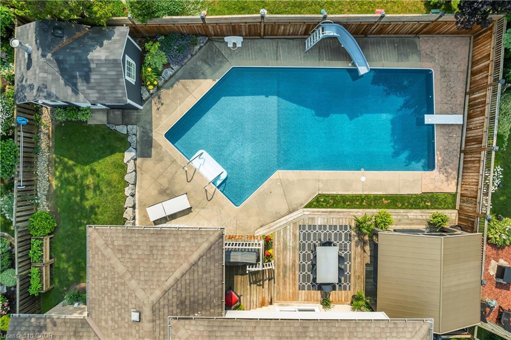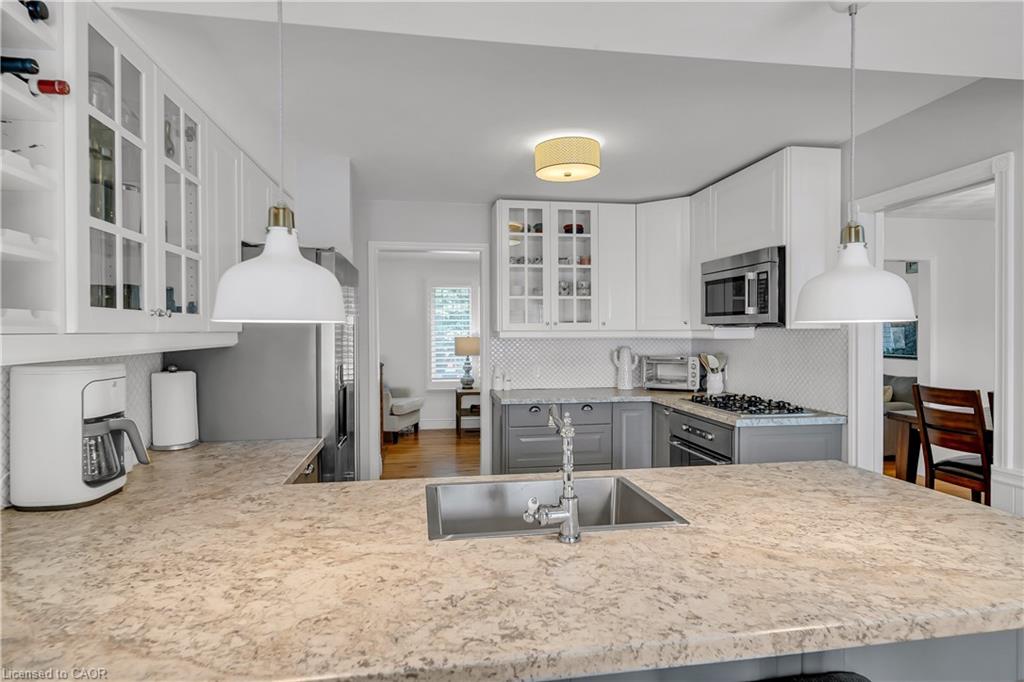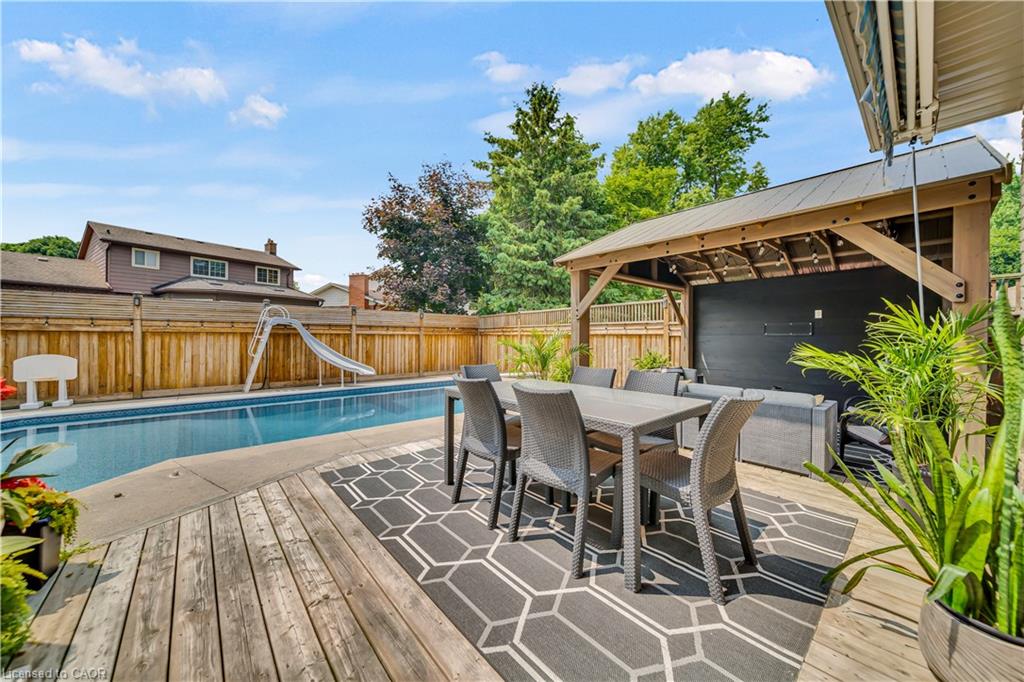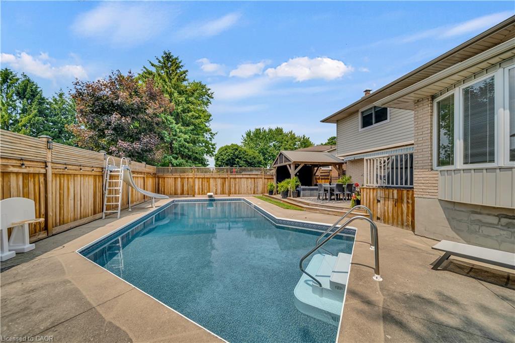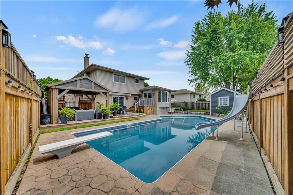 Welcome to 126 Winding Way, Kitchener — Your Private Poolside Retreat in Forest Heights. Located in the highly desirable Forest Heights neighbourhood, this charming detached home sits on an impressive 57′ x 105′ lot. With outstanding curb appeal, 5 parking: 4-car driveway, one in garage & a backyard oasis featuring an inground heated pool, this home truly has it all. Step inside to inviting foyer, overlooking a sunlit living room with real hardwood flooring. Thoughtfully updated in 2014, the home boasts a stunning upgraded kitchen featuring a gas cooktop, SS Appliances, chic two-tone cabinetry, stylish backsplash & extra storage. The bright breakfast area offers peaceful views of the backyard, while the designated dining room is perfect for hosting family meals & celebrations. Upstairs, There are 3 spacious bedrooms, all bright, airy with large closets. The shared 4pc bathroom, beautifully renovated in 2022, offers a fresh, modern touch. The fully finished basement extends your living space, complete with a 4th bedroom, 3pc bathroom, large rec room & a convenient laundry area. Additional updates include a water softener (2022) & AC (2023). Step Outside to Paradise. The backyard is where this home truly shines featuring a heated inground pool (gas heater) with a new liner (2022), patio with gazebo & spacious deck, all surrounded by a fully fenced yard for privacy. Pool equipment includes pump, gas heater, filter & winter cover. (Note: thermostat currently not working.) Whether you’re entertaining, relaxing, or soaking in the sun, this space offers your very own summer escape right at home. Spacious lot with endless potential, Nestled in a peaceful, well-established community, this home is minutes from top-rated schools, parks, scenic trails & major shopping centres. Quick access to Highway 401 & public transit. Don’t miss your chance to own this rare gem with a pool in one of Kitchener’s most beloved neighbourhoods. Book your showing today!
