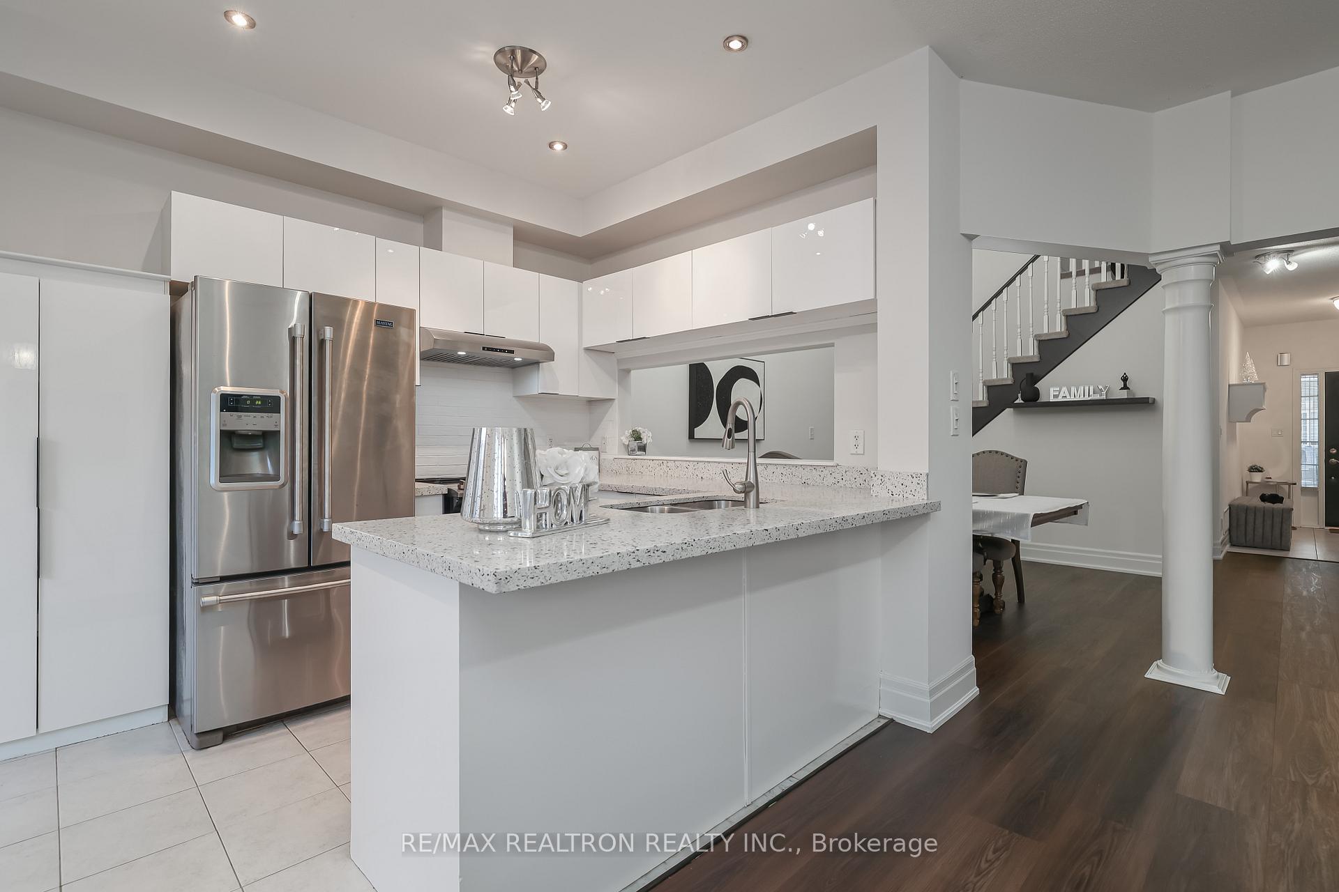 Come & Fall In Love With This Beautifully Updated Freehold Townhouse Featuring 3+1 Bedrooms, 3 Washrooms, And A Finished Basement For Added Living Space. The Main Floor Showcases Brand-New Flooring, 9-ft Ceilings, Modern Kitchen Cabinets, Backsplash, Complemented By Fresh Paint And Upgraded Light Fixtures Throughout (All Nov 2025). Upgraded Countertops (2022) In The Kitchen And Bathrooms, Along With Refreshed Vanities (2025). Walk Out To A Spacious Deck With Plenty Of Green Space. California Shutters (2021) Add A Refined Touch Throughout. Primary Bedroom Features A His & Her Closet. A Year-Old Furnace And AC Plus A Large Backyard With A Deck And Green Space, This Home Is Modern, Comfortable, And Move-In Ready. Clopay Insulated Garage Door (2023), Chandelier And Light Fixtures (Nov 2025), Driveway Pavement (2023), Kitchen Hoodvent (2022), Deck (2021), Front Interlocking (2022).