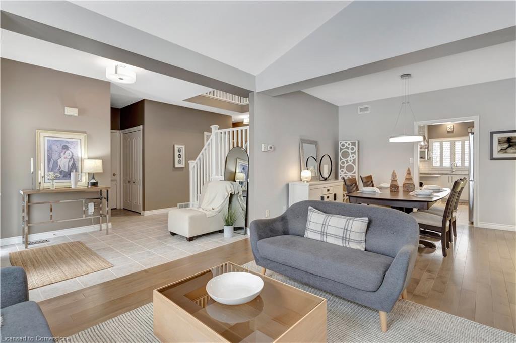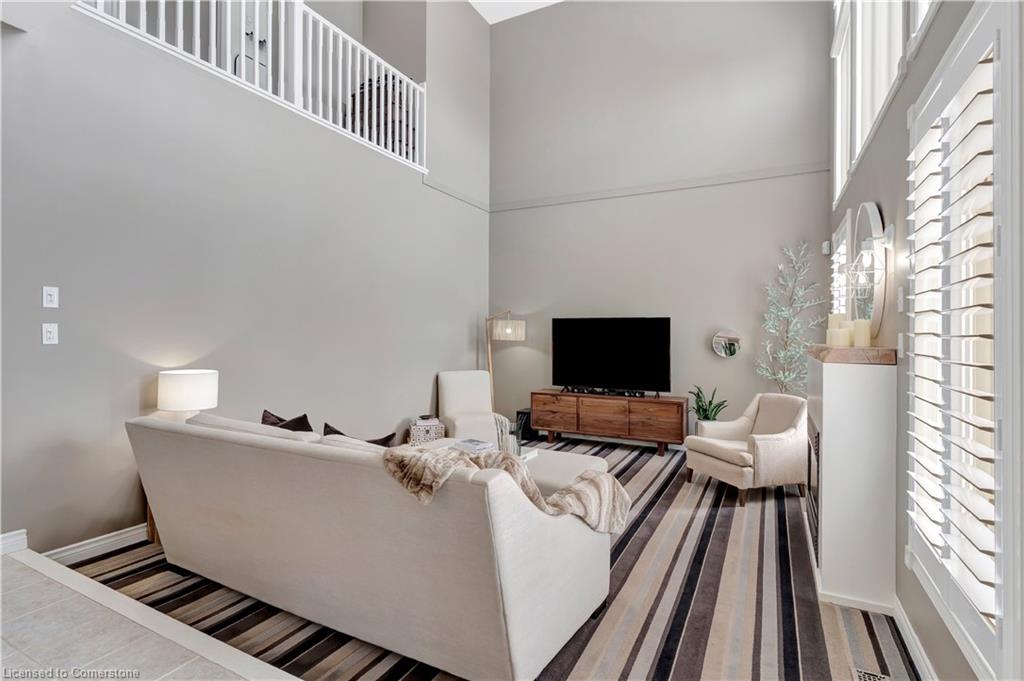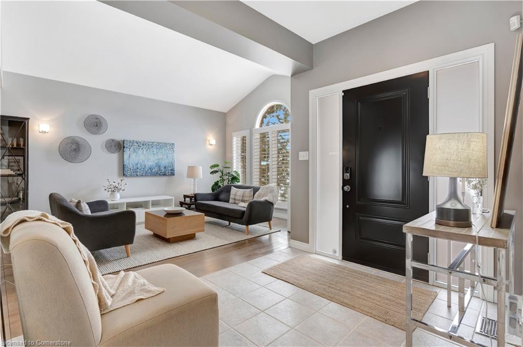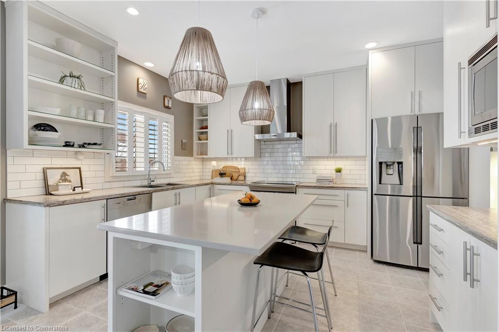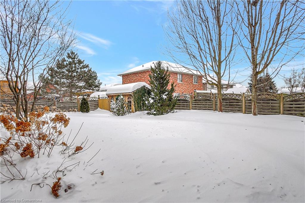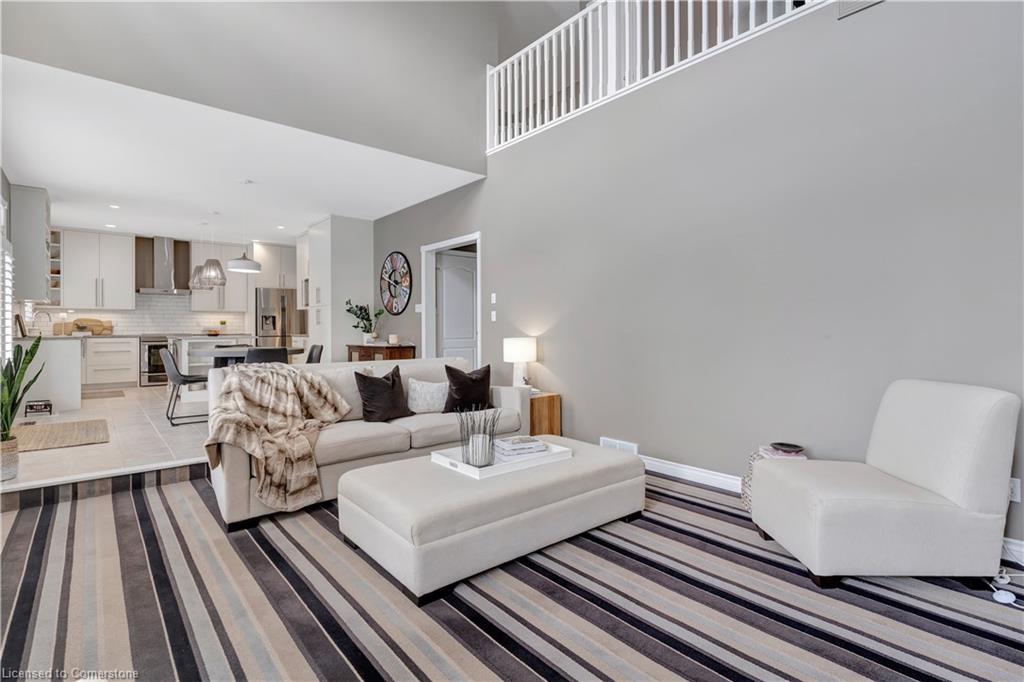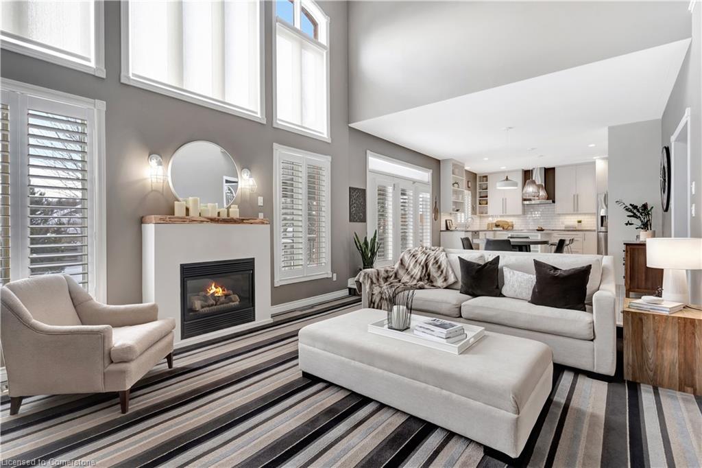 Located the Clemens Mills/Saginaw neighbourhood, this beautifully updated four-bedroom, four-bathroom detached home has a spacious two-car garage, lots of natural light and is perfect for a growing family. Large foyer leading to an open-concept living and formal dining area featuring vaulted ceiling, expansive windows, and hardwood floors. The eat-in kitchen is a chef’s and entertainer’s dream, featuring a large island, stainless steel appliances, and ample cupboard space. The kitchen opens into the family room, with soaring 18 ft ceilings, a gas fireplace, and oversized windows with California shutters. The main floor also offers a large office with hardwood flooring, a powder room and a combined laundry/mudroom with direct access to the garage. A skylight brightens the staircase as you make your way to the second floor, where three generously sized bedrooms provide plenty of space for the whole family. The updated main bathroom features a sleek quartz countertop, while the primary suite has big windows, a spacious walk-in closet, and a luxurious five-piece ensuite, complete with a soaker tub, dual sinks, and a glass shower. The fully finished basement expands the living space with a large recreation room, a fourth bedroom, and a versatile media room or additional office. A three-piece bathroom with a new toilet and fresh vinyl flooring adds to the functionality of the space, while a sizable utility room and extra storage under the stairs ensure there’s plenty of room for storage. Outside, the fully fenced backyard is an ideal space for entertaining, children, and pets. A well-maintained deck and patio offer plenty of room to relax, while the front yard is enhanced by an irrigation system for easy upkeep. This home is perfectly situated near top-rated schools, parks, and shopping, with easy access to the 401 for commuters. Outdoor enthusiasts will love being just minutes from Shade’s Mills Conservation Area, where hiking trails, kayaking, and picnicking await!
