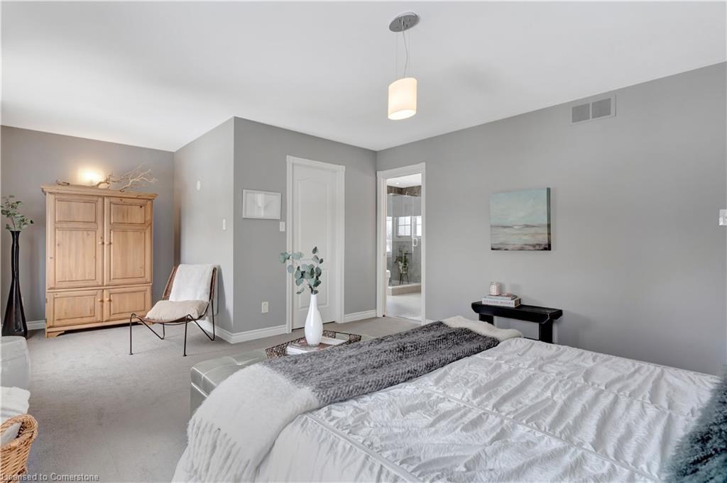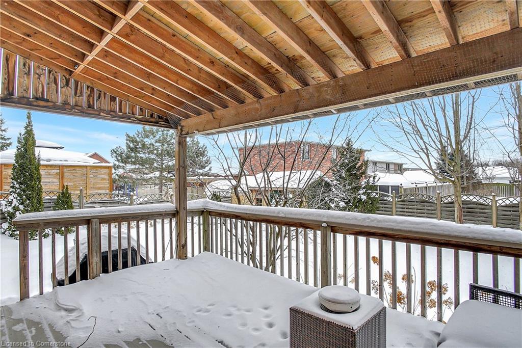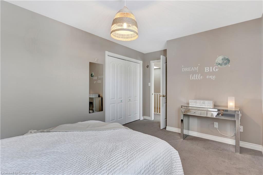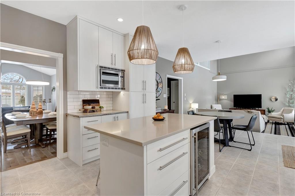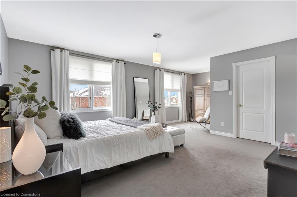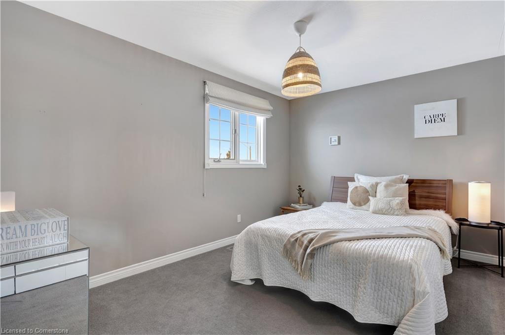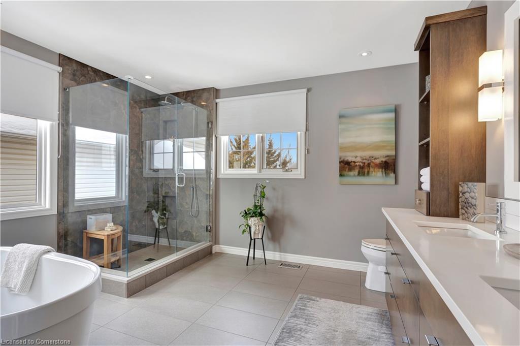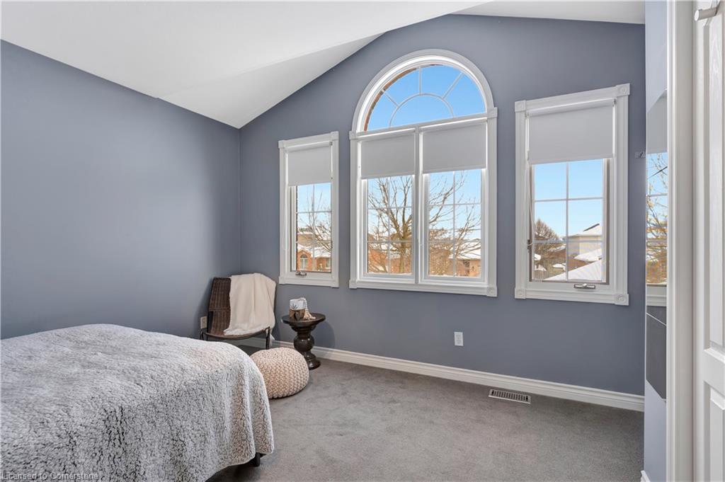 Located the Clemens Mills/Saginaw neighbourhood, this beautifully updated four-bedroom, four-bathroom detached home has a spacious two-car garage, lots of natural light and is perfect for a growing family. Large foyer leading to an open-concept living and formal dining area featuring vaulted ceiling, expansive windows, and hardwood floors. The eat-in kitchen is a chef’s and entertainer’s dream, featuring a large island, stainless steel appliances, and ample cupboard space. The kitchen opens into the family room, with soaring 18 ft ceilings, a gas fireplace, and oversized windows with California shutters. The main floor also offers a large office with hardwood flooring, a powder room and a combined laundry/mudroom with direct access to the garage. A skylight brightens the staircase as you make your way to the second floor, where three generously sized bedrooms provide plenty of space for the whole family. The updated main bathroom features a sleek quartz countertop, while the primary suite has big windows, a spacious walk-in closet, and a luxurious five-piece ensuite, complete with a soaker tub, dual sinks, and a glass shower. The fully finished basement expands the living space with a large recreation room, a fourth bedroom, and a versatile media room or additional office. A three-piece bathroom with a new toilet and fresh vinyl flooring adds to the functionality of the space, while a sizable utility room and extra storage under the stairs ensure there’s plenty of room for storage. Outside, the fully fenced backyard is an ideal space for entertaining, children, and pets. A well-maintained deck and patio offer plenty of room to relax, while the front yard is enhanced by an irrigation system for easy upkeep. This home is perfectly situated near top-rated schools, parks, and shopping, with easy access to the 401 for commuters. Outdoor enthusiasts will love being just minutes from Shade’s Mills Conservation Area, where hiking trails, kayaking, and picnicking await!