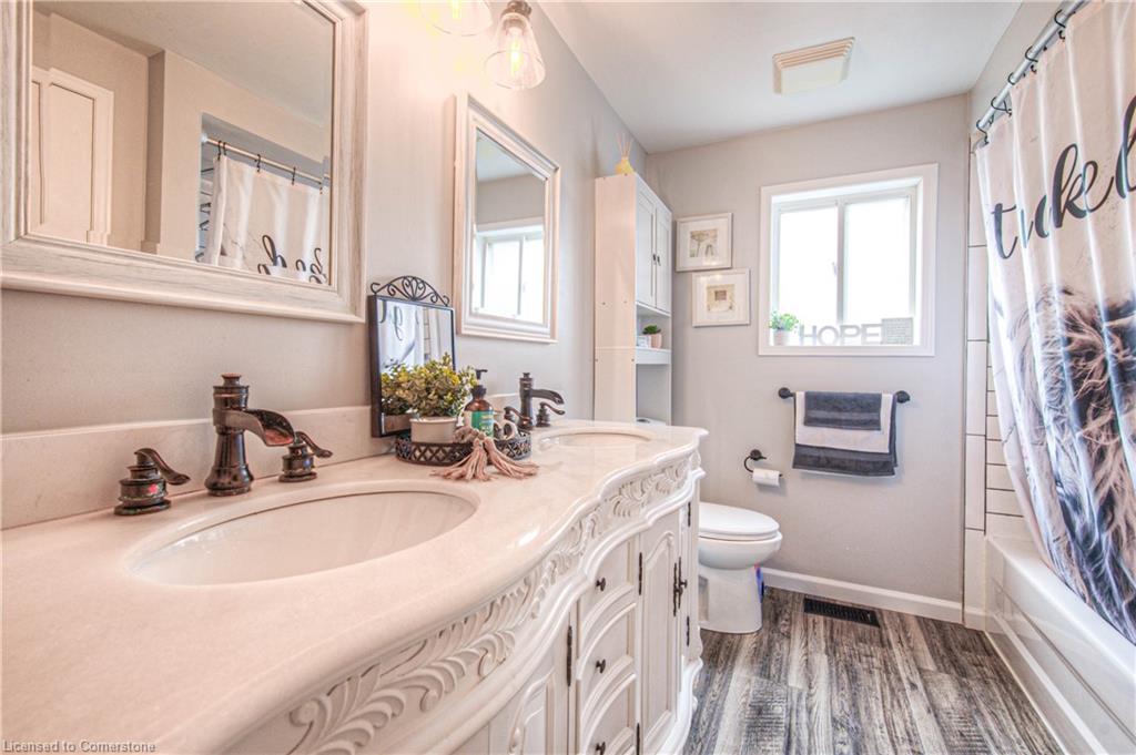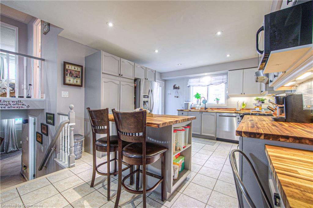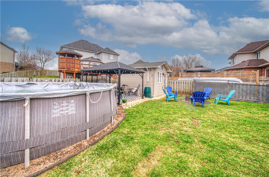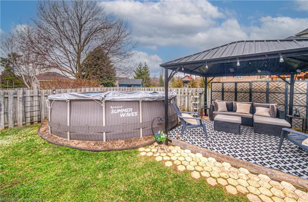 A HOME FOR THE WHOLE FAMILY! This well-kept 4-level backsplit offers more than just space. Finished on 3 levels, this home is located in Cambridge’s West Galt area, features 1865 sqft. The main floor offers a bright and spacious living room with hardwood floors, a large kitchen with an island, pantry & walk-out to the rear yard, there is also a family-sized dining room. The lower level features a huge family room with gas fireplace and a 4 pc bathroom. On the uppermost level, you will find 3 good-sized bedrooms all with hardwood floors, and a 5-piece bathroom. The 4th level offers more storage than you would think. Outside the private backyard is fully fencedand features a patio with gazebo, firepit and an above-ground pool; the driveway easily offers parking for 2 vehicles. Just a short walk away, there is a park and shops, and a short drive to the 401. Five appliances are included. Don’t miss out; book your viewing today!