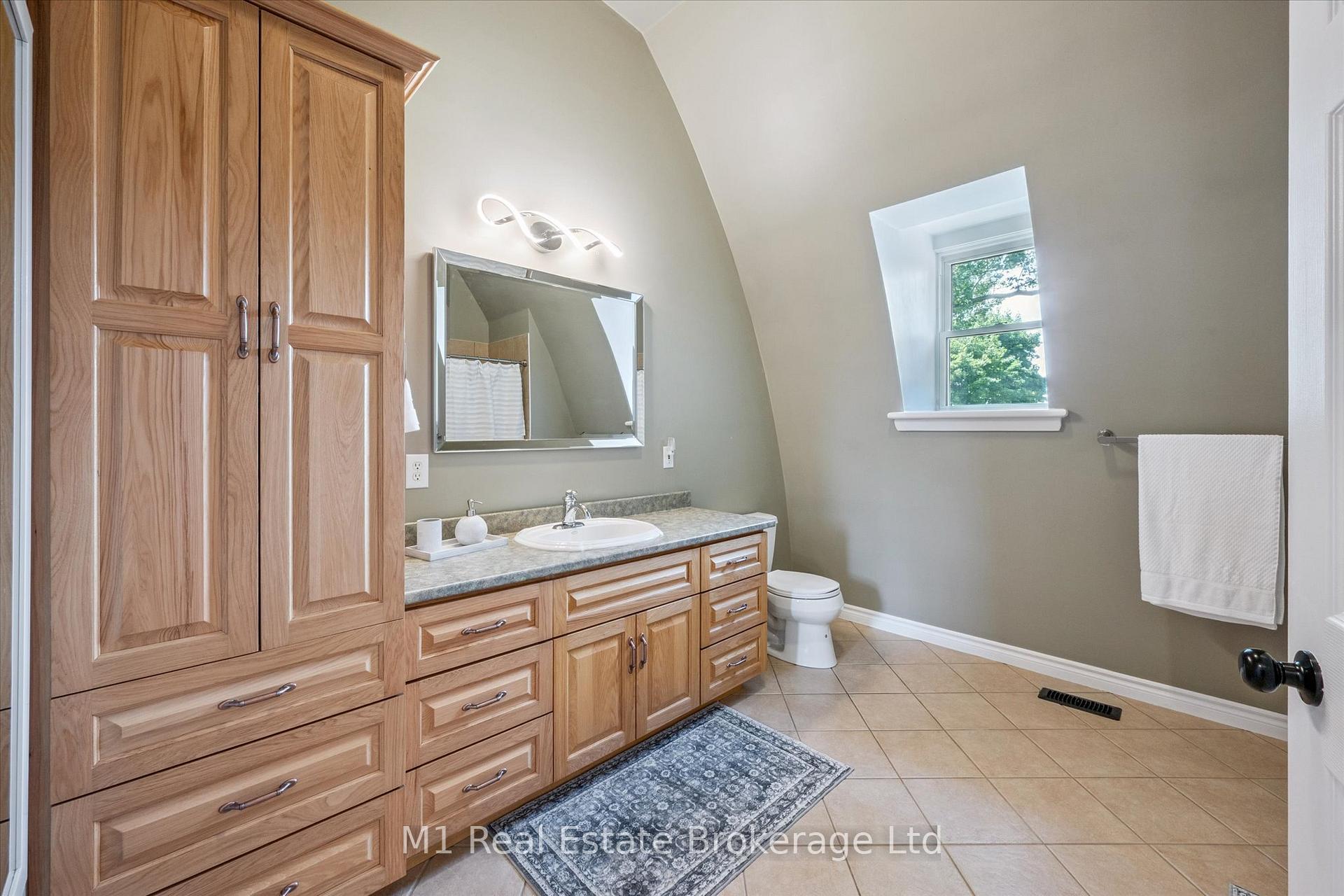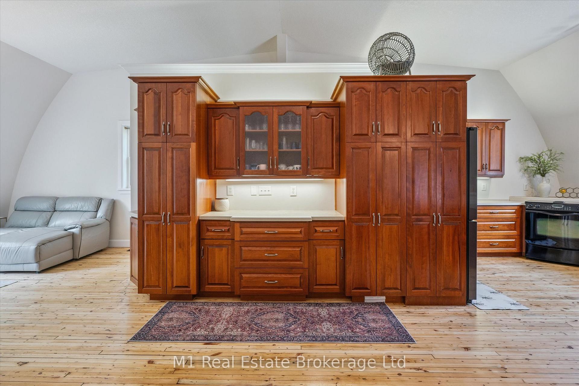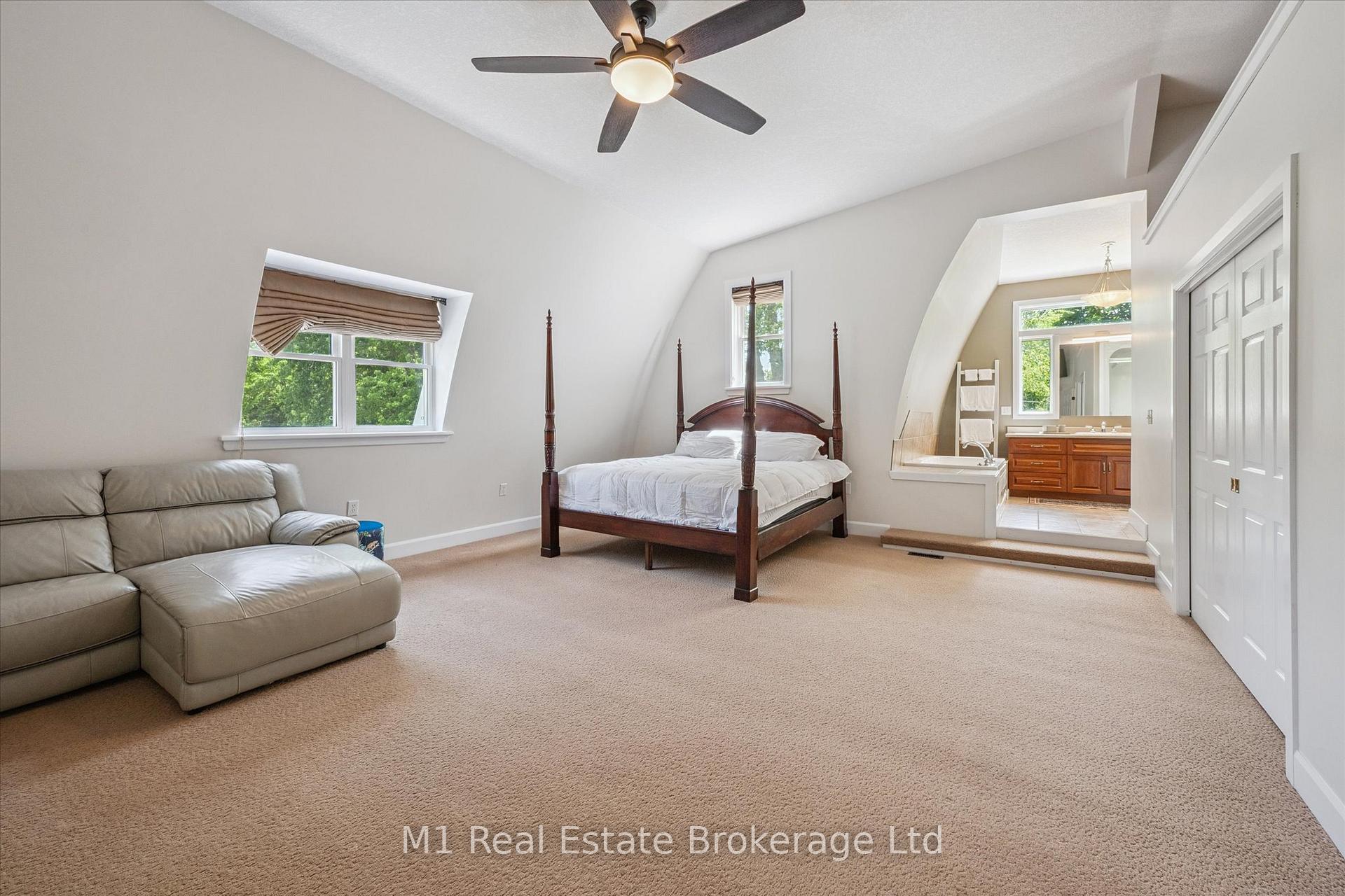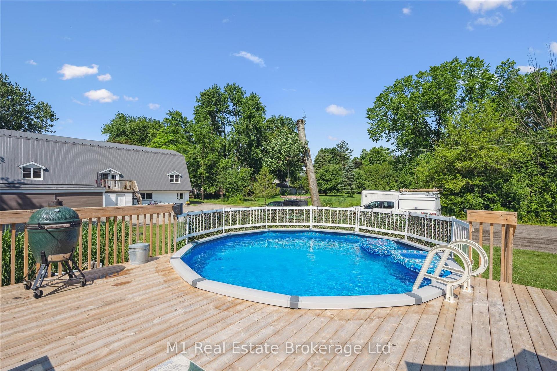 This one-of-a-kind property is ideal for home-based entrepreneurs and investors. Potential to be severed into TWO lots. Plans to extend town services past the property also open up a world of possibilities. Set on 1.8 prime acres on the edge of Elora, this architecturally gem of a building has been completely renovated and reimagined by the current owners to offer both stunning residential space and versatile commercial potential.The upper level boasts over2,500square feet of beautifully finished, open-concept living with soaring 13-foot ceilings, original hardwood floors, and an abundance of natural light. A chefs kitchen anchors the space, while the expansive primary suite offers a private retreat. Two additional bedrooms and a full bath complete the residential layout. Recent upgrades include two large new windows, a brand-new front door, and updated stone and vinyl siding for a modern, refreshed exterior. The lower level, also above grade, features more than 1,700squarefeet of open-span finished space perfect for a workshop, studio, rec room or business. It includes two oversized garage bays, a utility/storage bay, and a bathroom. With the proper approvals, this level could potentially be converted into a residential rental unit. In total, the property offers over 4,200 square feet of usable space. Two separate paved driveways and a large rear parking area provide ample room for vehicles, clients, or equipment. A generous green space out back offers potential for an accessory structure and now features a new above-ground pool, perfect for relaxing or entertaining.