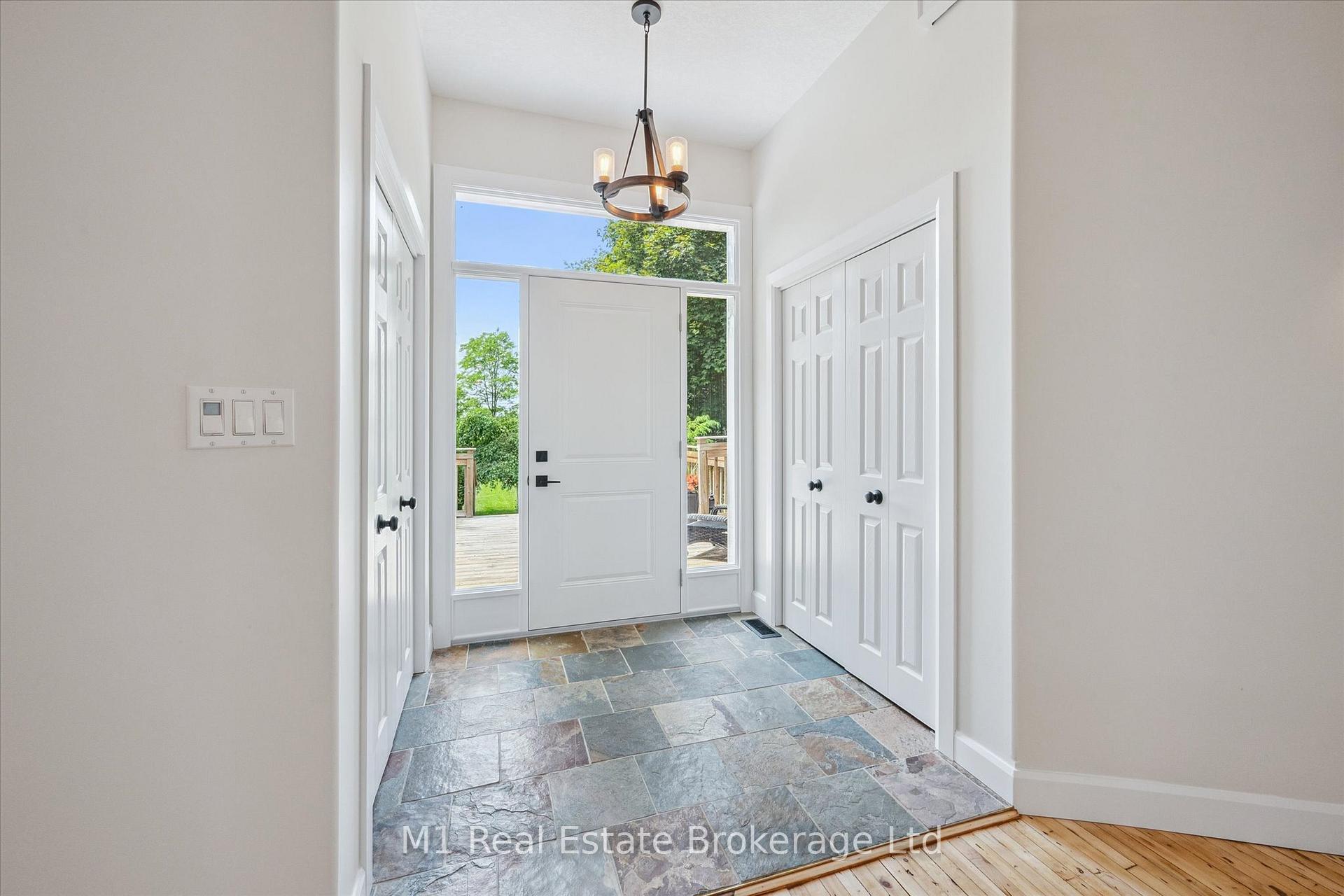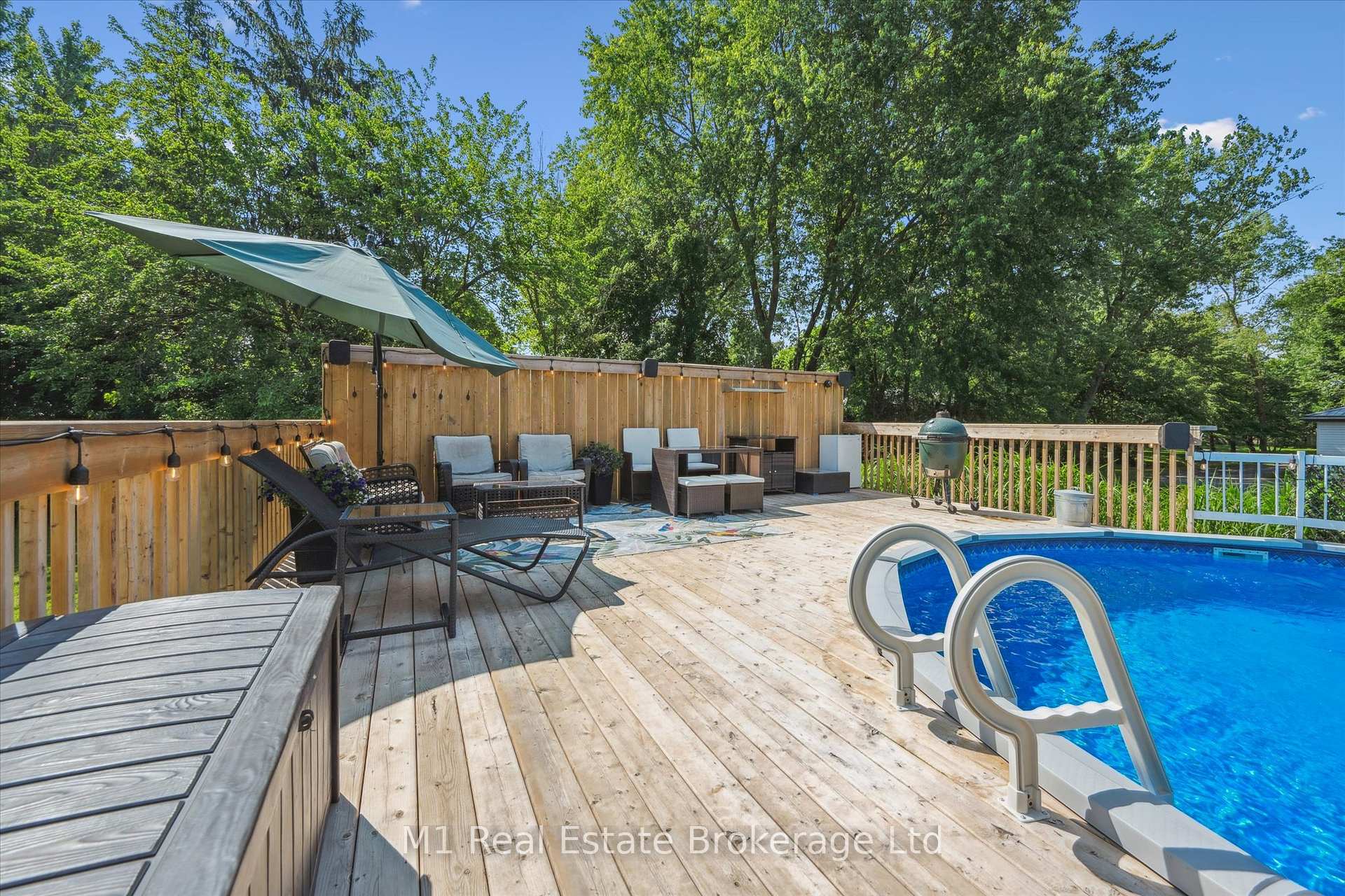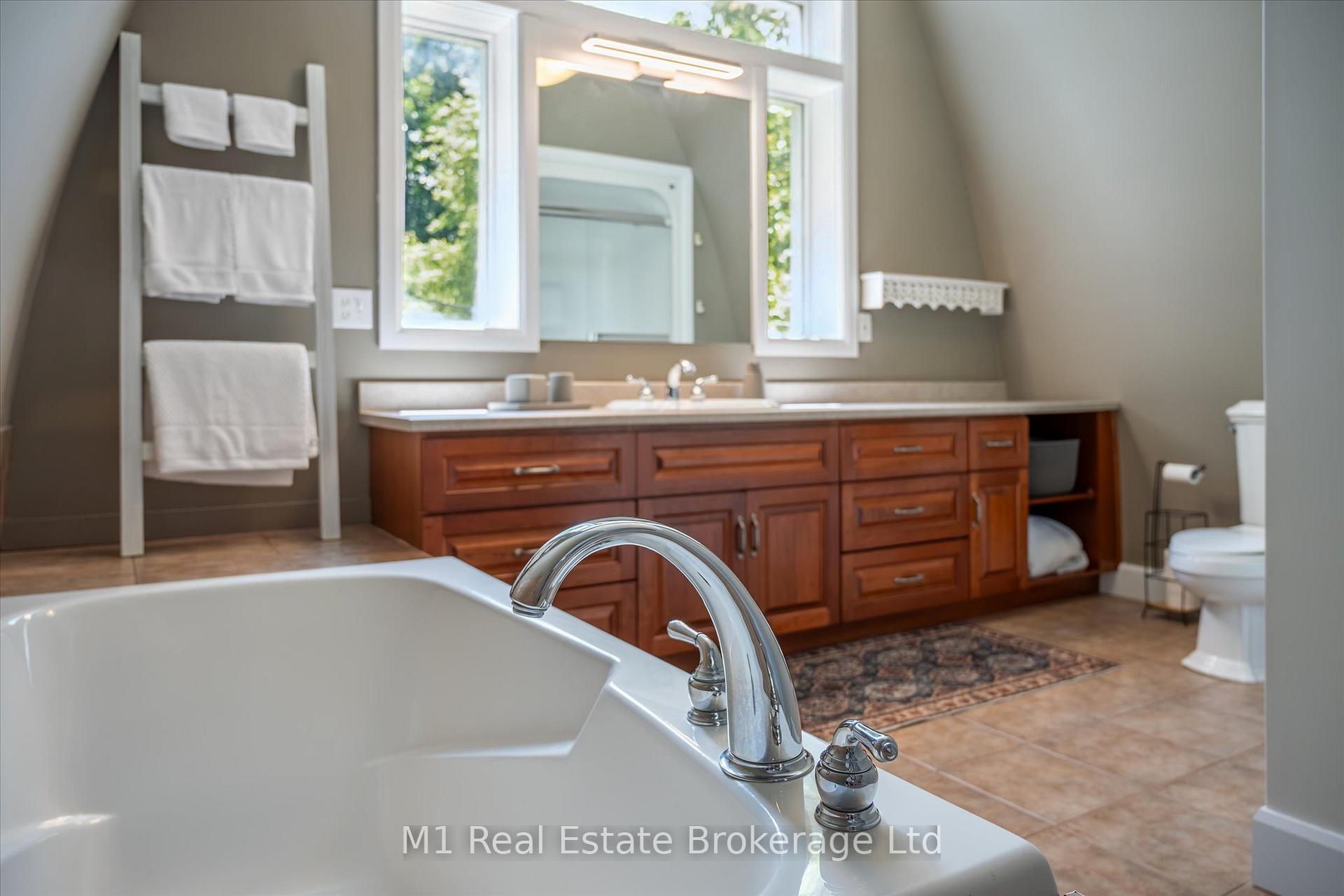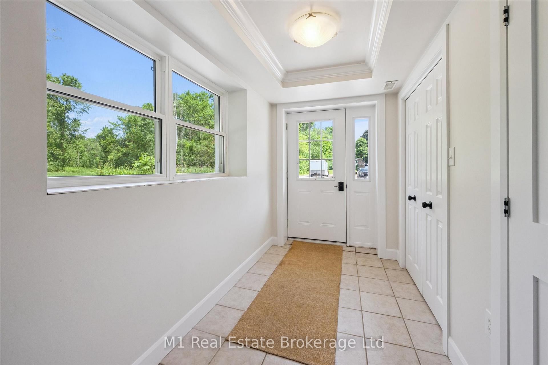 This one-of-a-kind property is ideal for home-based entrepreneurs and investors. Potential to be severed into TWO lots. Plans to extend town services past the property also open up a world of possibilities. Set on 1.8 prime acres on the edge of Elora, this architecturally gem of a building has been completely renovated and reimagined by the current owners to offer both stunning residential space and versatile commercial potential.The upper level boasts over2,500square feet of beautifully finished, open-concept living with soaring 13-foot ceilings, original hardwood floors, and an abundance of natural light. A chefs kitchen anchors the space, while the expansive primary suite offers a private retreat. Two additional bedrooms and a full bath complete the residential layout. Recent upgrades include two large new windows, a brand-new front door, and updated stone and vinyl siding for a modern, refreshed exterior. The lower level, also above grade, features more than 1,700squarefeet of open-span finished space perfect for a workshop, studio, rec room or business. It includes two oversized garage bays, a utility/storage bay, and a bathroom. With the proper approvals, this level could potentially be converted into a residential rental unit. In total, the property offers over 4,200 square feet of usable space. Two separate paved driveways and a large rear parking area provide ample room for vehicles, clients, or equipment. A generous green space out back offers potential for an accessory structure and now features a new above-ground pool, perfect for relaxing or entertaining.