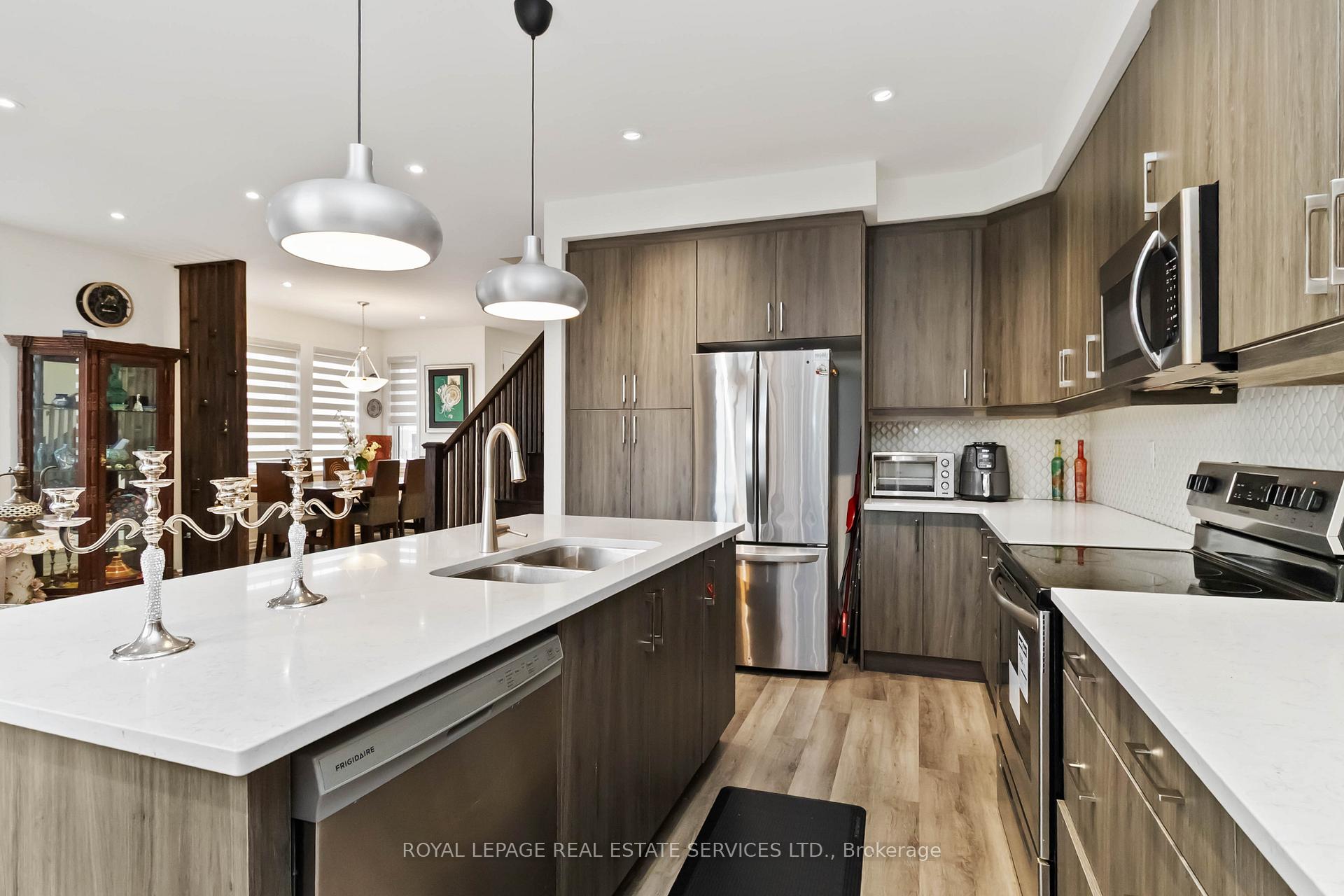Discover the perfect blend of sophisticated design and family-oriented luxury in this immaculate corner residence, situated in the highly coveted Sixteen Mile Creek community of Hawthorne Village. This gorgeous 4-bedroom, 4-bathroom home offers nearly 2,600 square feet of total living space. Defined by recessed pot lighting and expansive windows that flood the space with natural light, the formal living and dining areas provide an elegant backdrop for both intimate gatherings and festive entertaining. At the heart of the home lies a gourmet open-concept kitchen designed for culinary excellence, boasting a massive quartz center island, custom cabinetry, a stylish backsplash, and stainless steel appliances. This central hub overlooks the inviting family room and features sliding glass doors that reveal a fully fenced backyard, offering a seamless transition to outdoor living. Ascend the stunning upgraded oak staircase to the second level. The primary bedroom features a walk-in closet and a spa-inspired 4-piece ensuite complete with a deep soaker tub and separate shower. Three additional spacious bedrooms share a 4 pc bath, while a dedicated laundry room on the upper level adds a layer of everyday ease. Unlock incredible potential with the professionally fully finished lower level. This versatile space is a complete in-law suite ready for action. It boasts a large open-concept rec room, a full second kitchen, a modern 3-piece bath, and dedicated laundry. Located in a prestigious enclave close to top-rated schools, scenic walking trails, and parks, this home is a commuter’s dream-minutes from the GO Station and Hwy 401, with essential amenities like Metro and Starbucks just moments away.