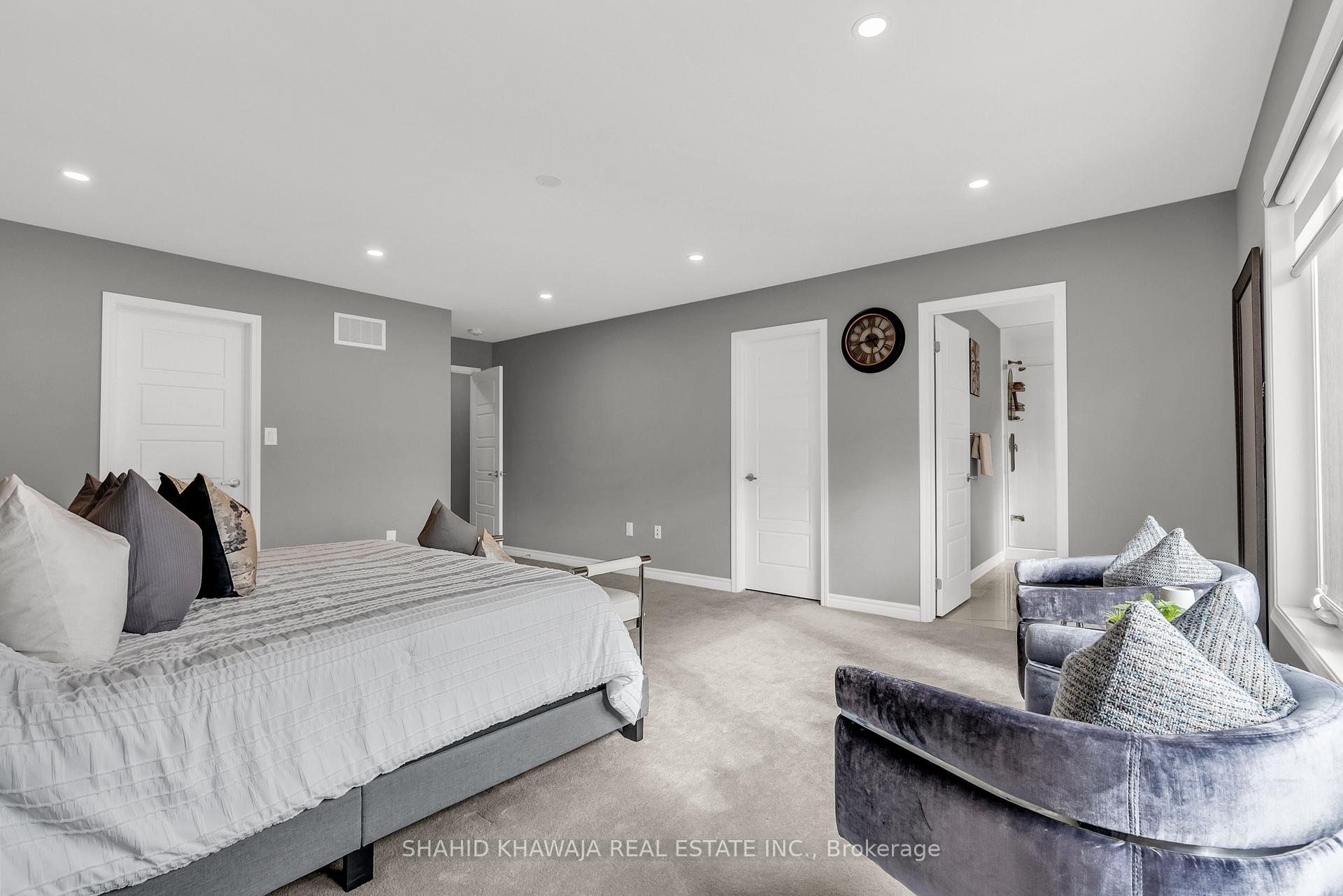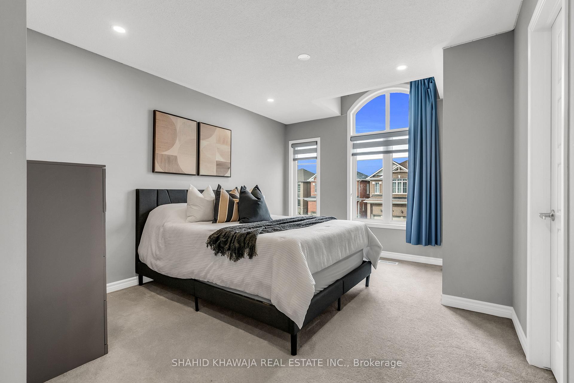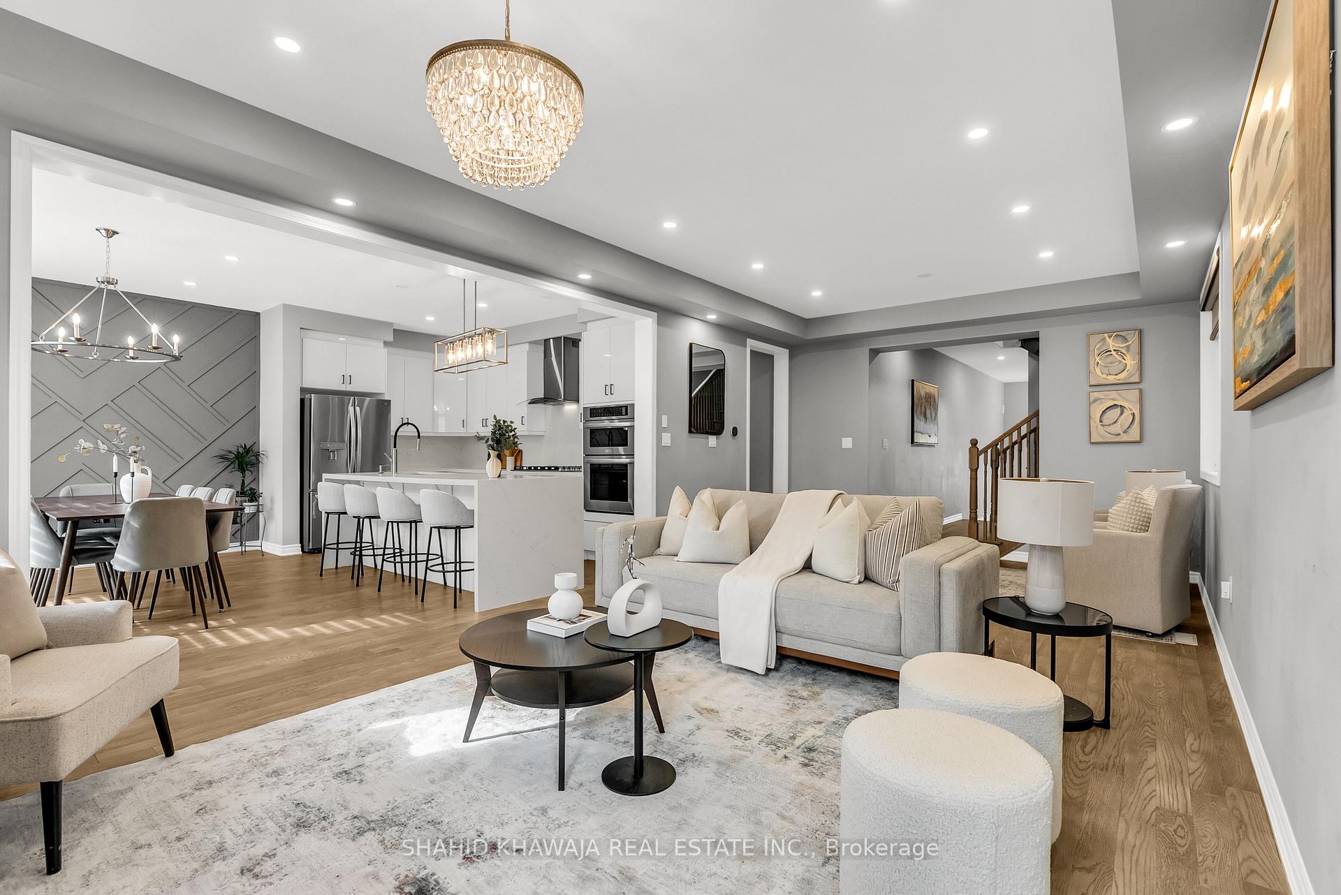 Please View Our Virtual Tour. Welcome to this stunning detached home featuring a double-car garage and a legal basement apartment with a separate side entrance, plus an extra den in the basement – perfect for an office or guest room. Ideal for multi-generational living or generating rental income, this beautifully maintained property offers 4+2 bedrooms and 5 bathrooms across approximately 3,700 sq. ft. of living space. Built just three years ago by Mattamy Homes in the sought-after Soleil Community, this Saugeen Model boasts a French Chateau elevation and remains covered under the 7-year Tarion Warranty. The exterior exudes exceptional curb appeal with a full brick, stone, and premium stucco finish leading to an elegant double-door entry.Inside, a bright and spacious foyer welcomes you with 10-ft ceilings, while the main floor features 9-ft ceilings, pot lights, designer paint, and hardwood flooring throughout. The open-concept layout includes a cozy great room with a gas fireplace and a chef’s dream kitchen – complete with extended-height cabinetry, granite countertops, custom tile backsplash, built-in oven and microwave, gas cooktop with stainless steel range hood, double-door refrigerator, and a walk-in pantry for ample storage. Upstairs, the solid oak staircase leads to four spacious bedrooms, each with washroom access and large windows that fill the rooms with natural light. The primary suite features a walk-in closet and a spa-inspired en-suite with a modern vanity and premium fixtures. A convenient second-floor laundry room adds to the home’s functionality. The exterior is complete with an extended driveway for extra parking and a low-maintenance landscaped backyard. This home perfectly combines luxury, comfort, and functionality – a rare opportunity you won’t want to miss.