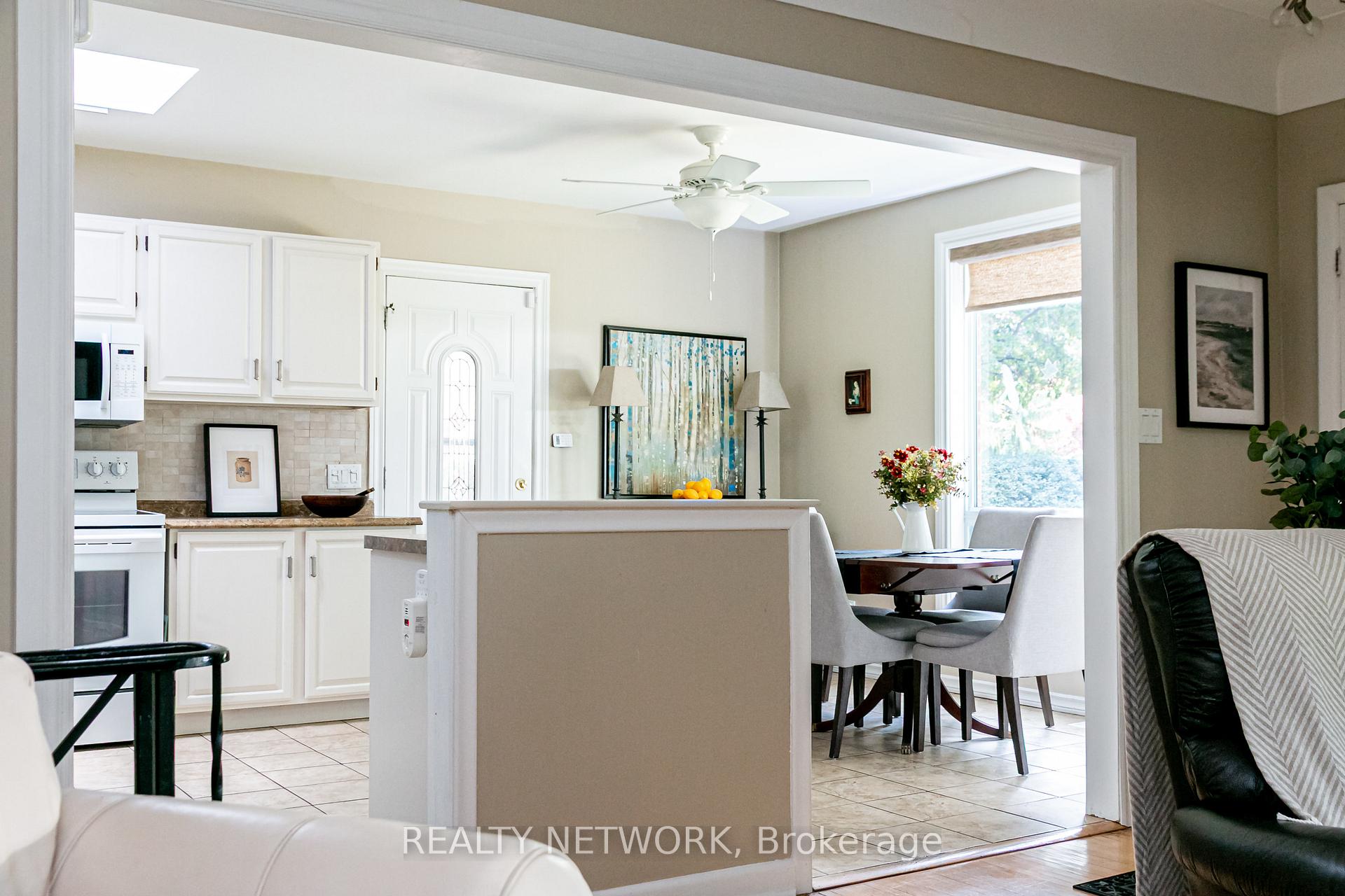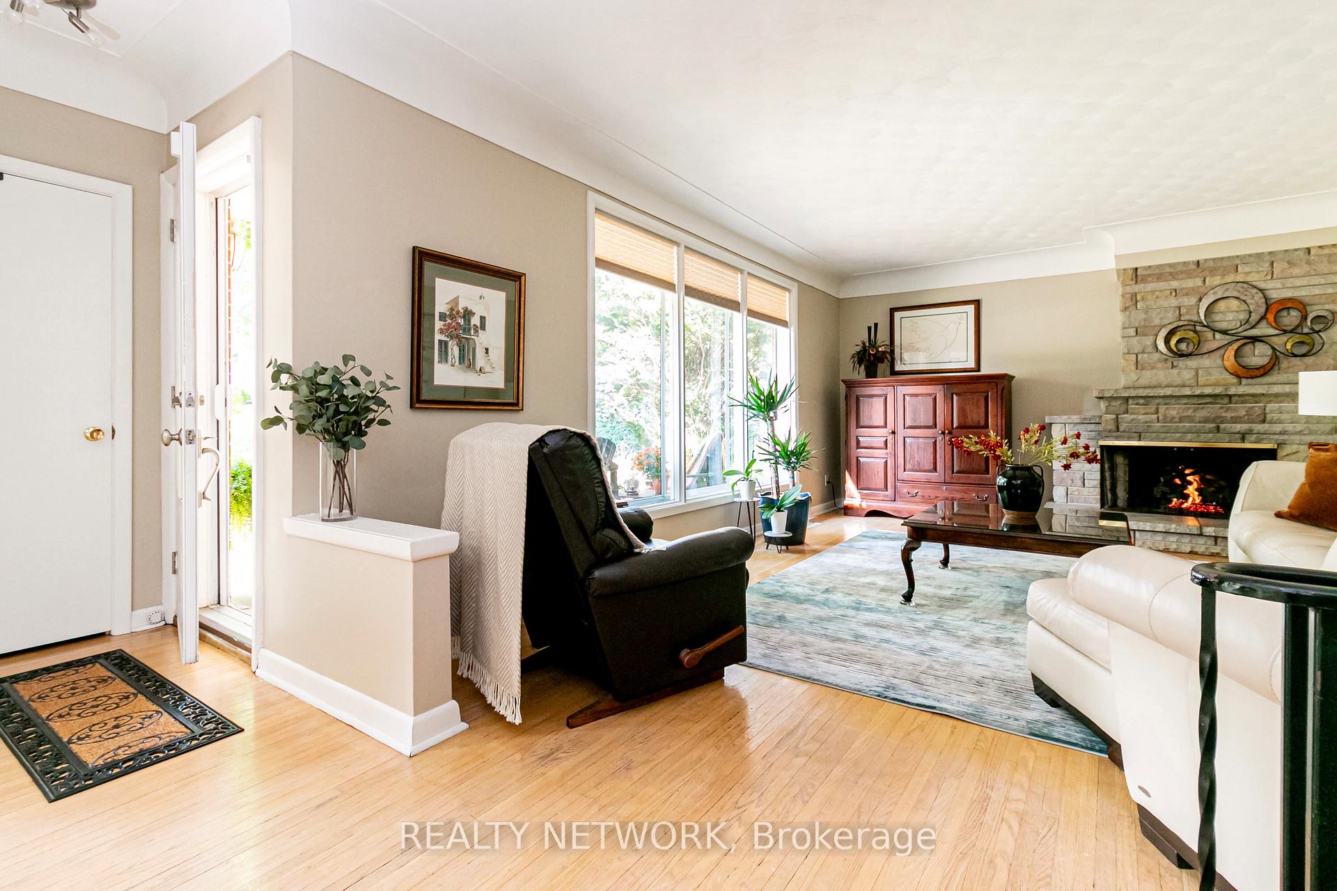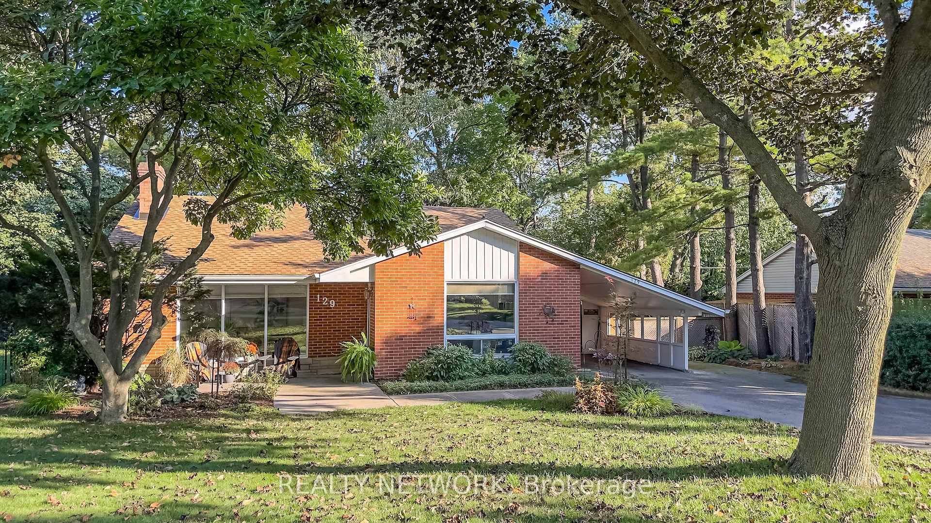 Beautiful Mid-Centuryhome in old Ancaster. Fantastic 1950’s 50’s back-split;bright, spacious, & designed for family living. Enter and see for yourself the breathtaking, floor-to-ceiling stone fireplace (gas). Hardwood & a wall of windows makes this living room a stand-out! The main level’s open-concept living/dining/kitchen design makes entertaining a breeze. Kitchen/Dining Area features a skylight & convenient walk-out to carport (for easy unloading of groceries!)Step up to the upper level (hallway skylight) with it’s 3 bedrooms & family bath (newer walk-in shower ’20), newer broadloom, baseboards & doors (’22).Step down to the 500 sq ft + fully finished lower level featuring a large, bright family room, 2-pc bathroom & laundry room (large utility sink, double closets). The lower level’s walkout adds so many possibilities! Roof reshingled ’25; furnace, a/c, family room windows ’17.Eavestroughs & gutter guards ’19. Reach out for full list of updates. This home has been meticulously maintained.With it’s deep set-back from the street, this beautiful tree-canopied property offers both privacy & many areas to relax, entertain & play! From the front patio to the large rear garden patio, this pool-sized, fully-fenced garden is just what you’ve been looking for. Plenty of parking on long drive and carport.Close to schools, walk to the park, recreational path & movie theatre. Meadowlands has all your shopping needs close by, excellent dining choices await you in the Village of Ancaster, easy access to 403 and “The Linc”. Embrace all that Ancaster has to offer with this charming residence at 129 Oneida Blvd – your future home awaits!