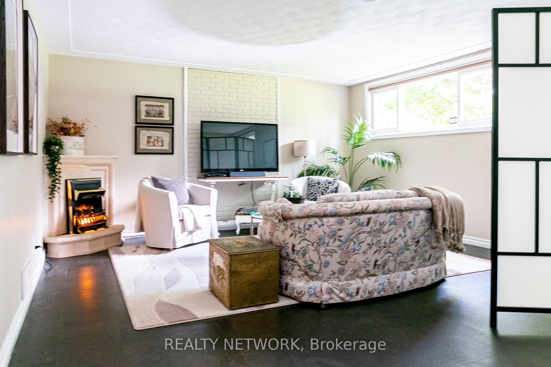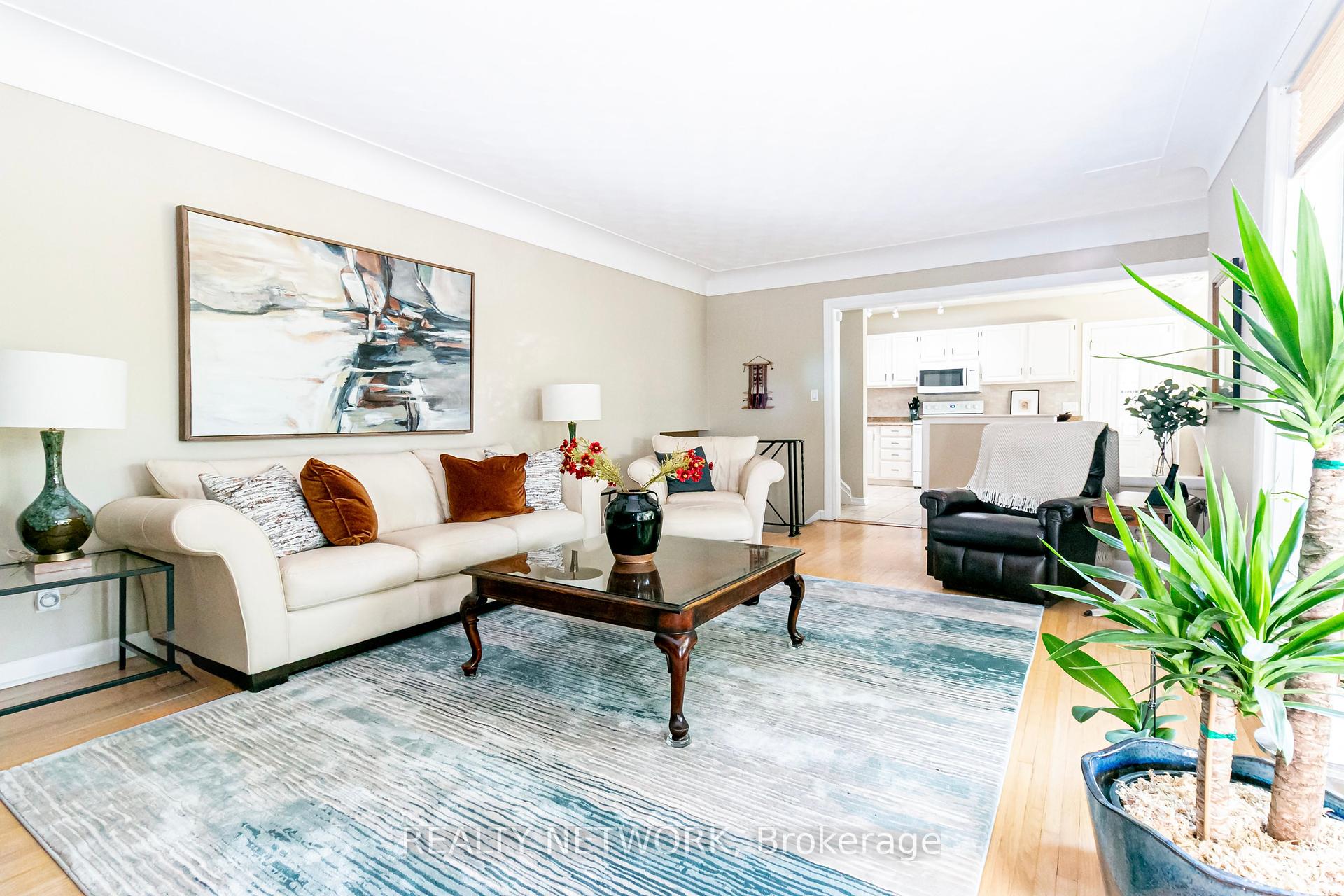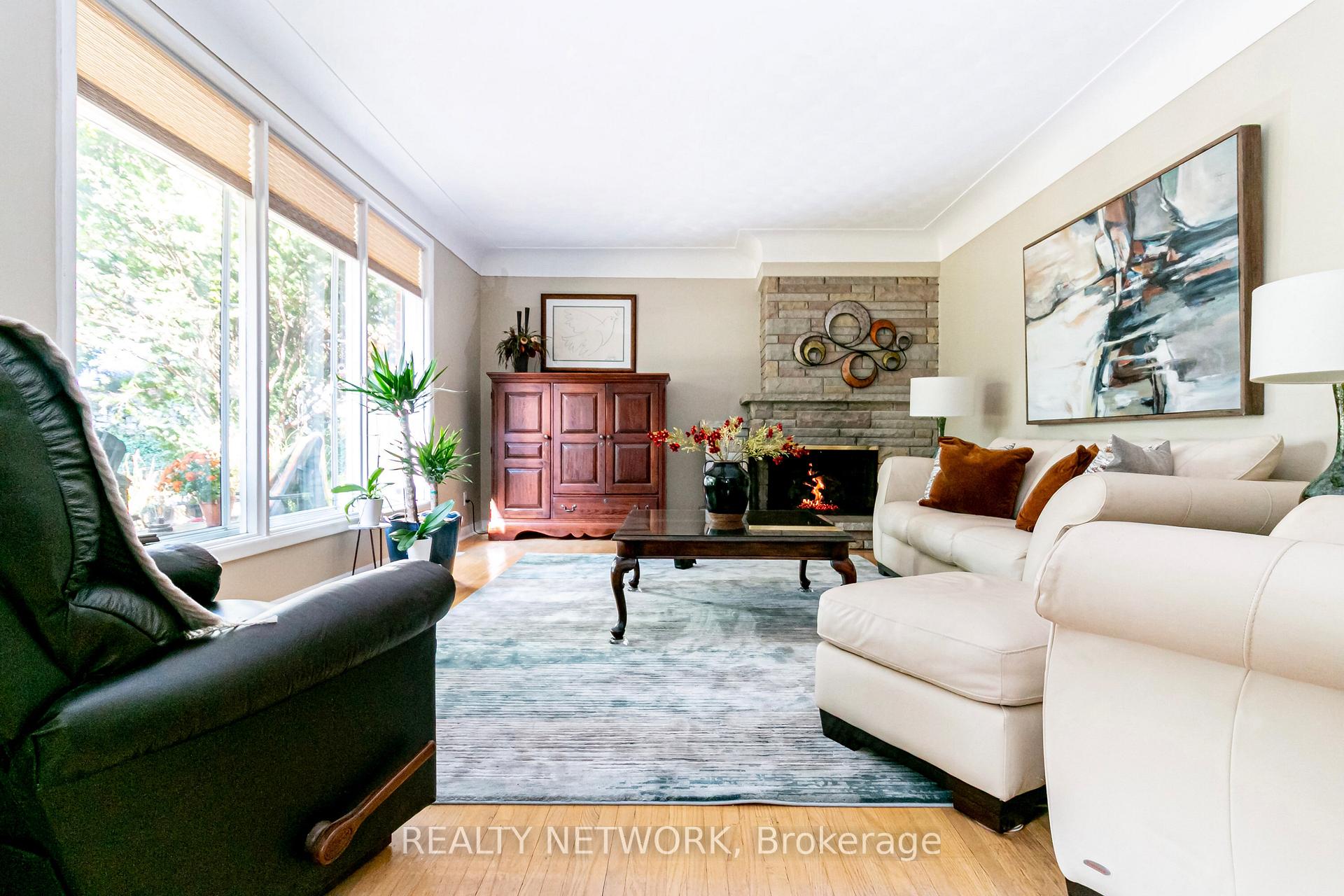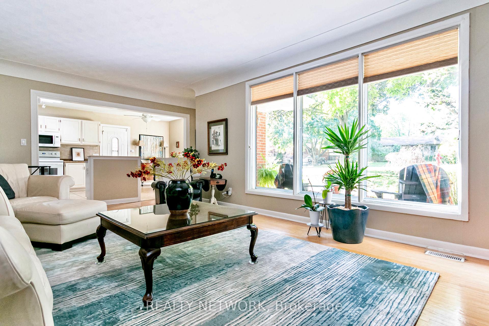 Beautiful Mid-Centuryhome in old Ancaster. Fantastic 1950’s 50’s back-split;bright, spacious, & designed for family living. Enter and see for yourself the breathtaking, floor-to-ceiling stone fireplace (gas). Hardwood & a wall of windows makes this living room a stand-out! The main level’s open-concept living/dining/kitchen design makes entertaining a breeze. Kitchen/Dining Area features a skylight & convenient walk-out to carport (for easy unloading of groceries!)Step up to the upper level (hallway skylight) with it’s 3 bedrooms & family bath (newer walk-in shower ’20), newer broadloom, baseboards & doors (’22).Step down to the 500 sq ft + fully finished lower level featuring a large, bright family room, 2-pc bathroom & laundry room (large utility sink, double closets). The lower level’s walkout adds so many possibilities! Roof reshingled ’25; furnace, a/c, family room windows ’17.Eavestroughs & gutter guards ’19. Reach out for full list of updates. This home has been meticulously maintained.With it’s deep set-back from the street, this beautiful tree-canopied property offers both privacy & many areas to relax, entertain & play! From the front patio to the large rear garden patio, this pool-sized, fully-fenced garden is just what you’ve been looking for. Plenty of parking on long drive and carport.Close to schools, walk to the park, recreational path & movie theatre. Meadowlands has all your shopping needs close by, excellent dining choices await you in the Village of Ancaster, easy access to 403 and “The Linc”. Embrace all that Ancaster has to offer with this charming residence at 129 Oneida Blvd – your future home awaits!