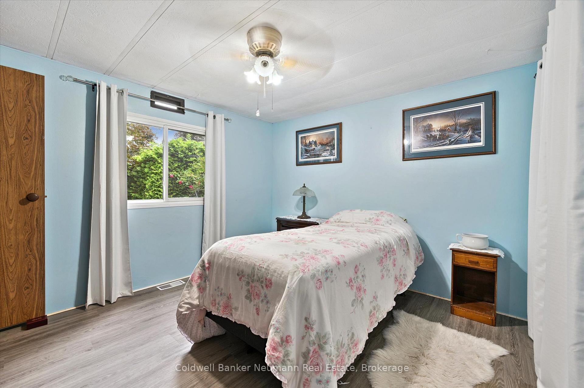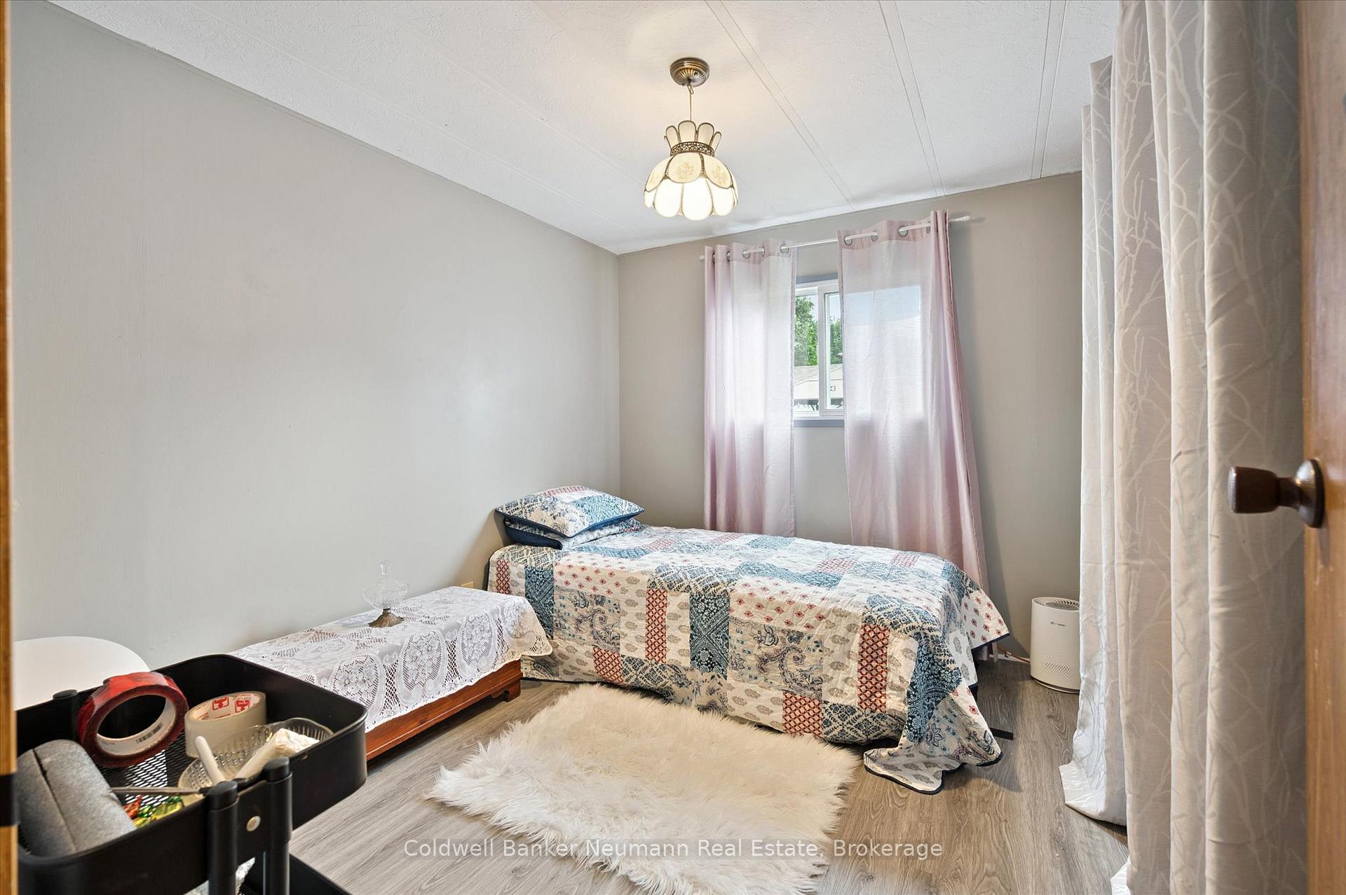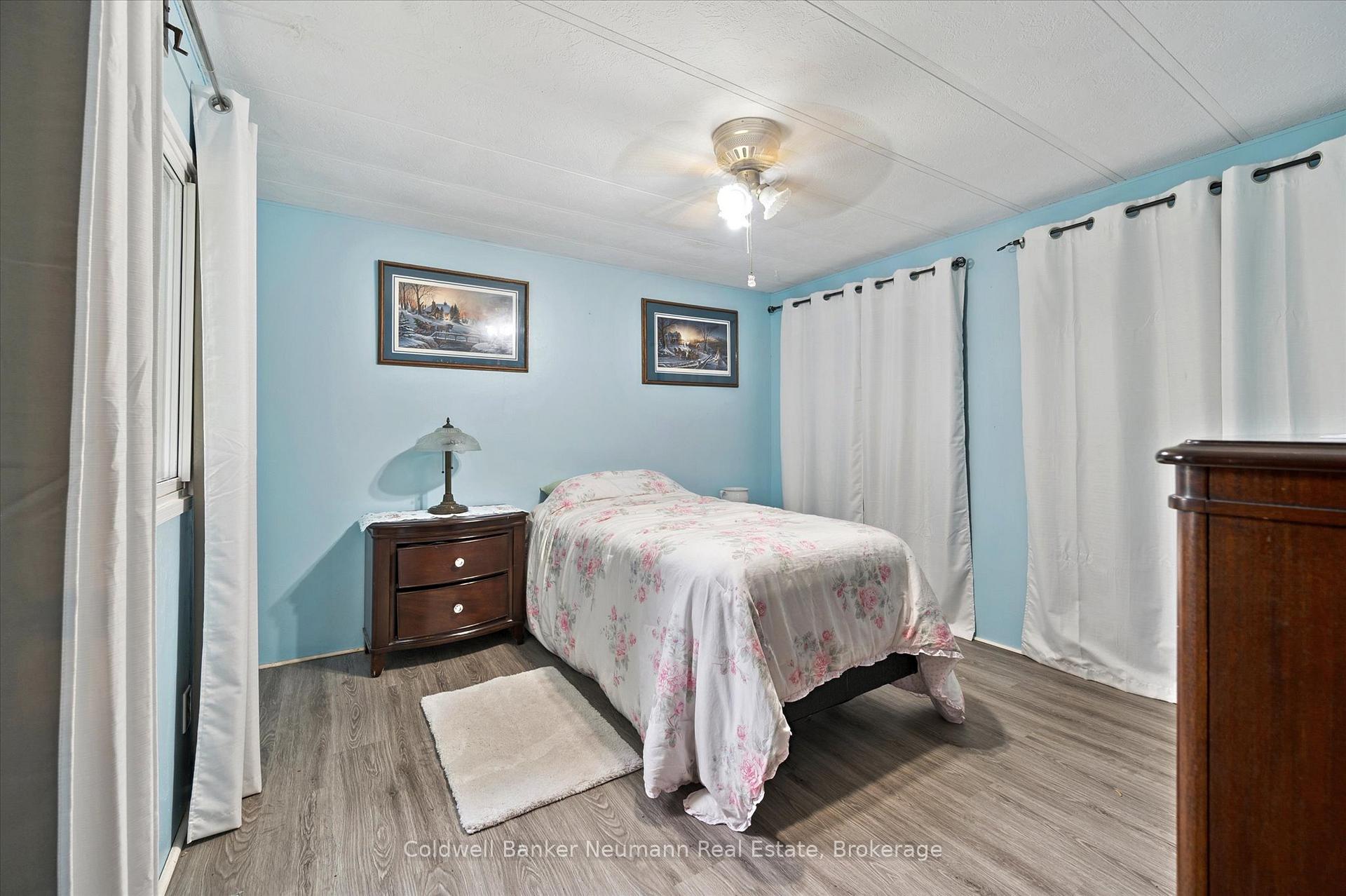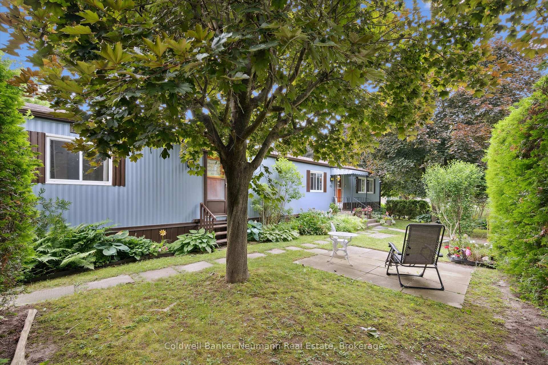 Privacy plus!! This well maintained 2 bedroom bungalow is surrounded by an 8 foot hedge, which allows ultimate privacy from others! The only thing to be seen from the road is the double paved driveway and shed. Inside you will find a generous size eat-in kitchen, living room with propane stove, updated 3 piece bathroom combined with laundry and a primary bedroom with wall to wall closet. The exterior vinyl siding was painted about 2 years ago, furnace and central air is about 7 years old, the windows and roof about 10 years ago. Located on a street with great neighbours! This modular home is located within Beverly Hills Estates, a residential modular home park, with a community centre and scheduled events for residents to join (or not!) All homes are owner occupied-no rentals! Come out and see this wonderful affordable home in a great community!