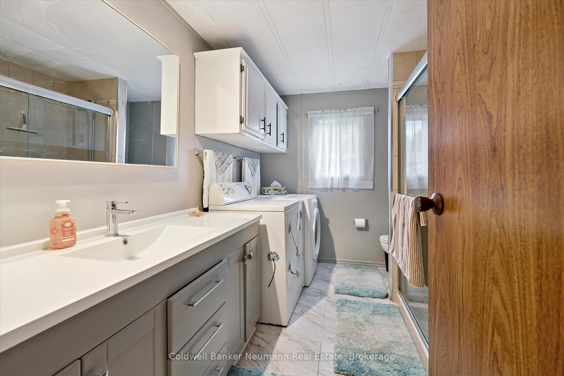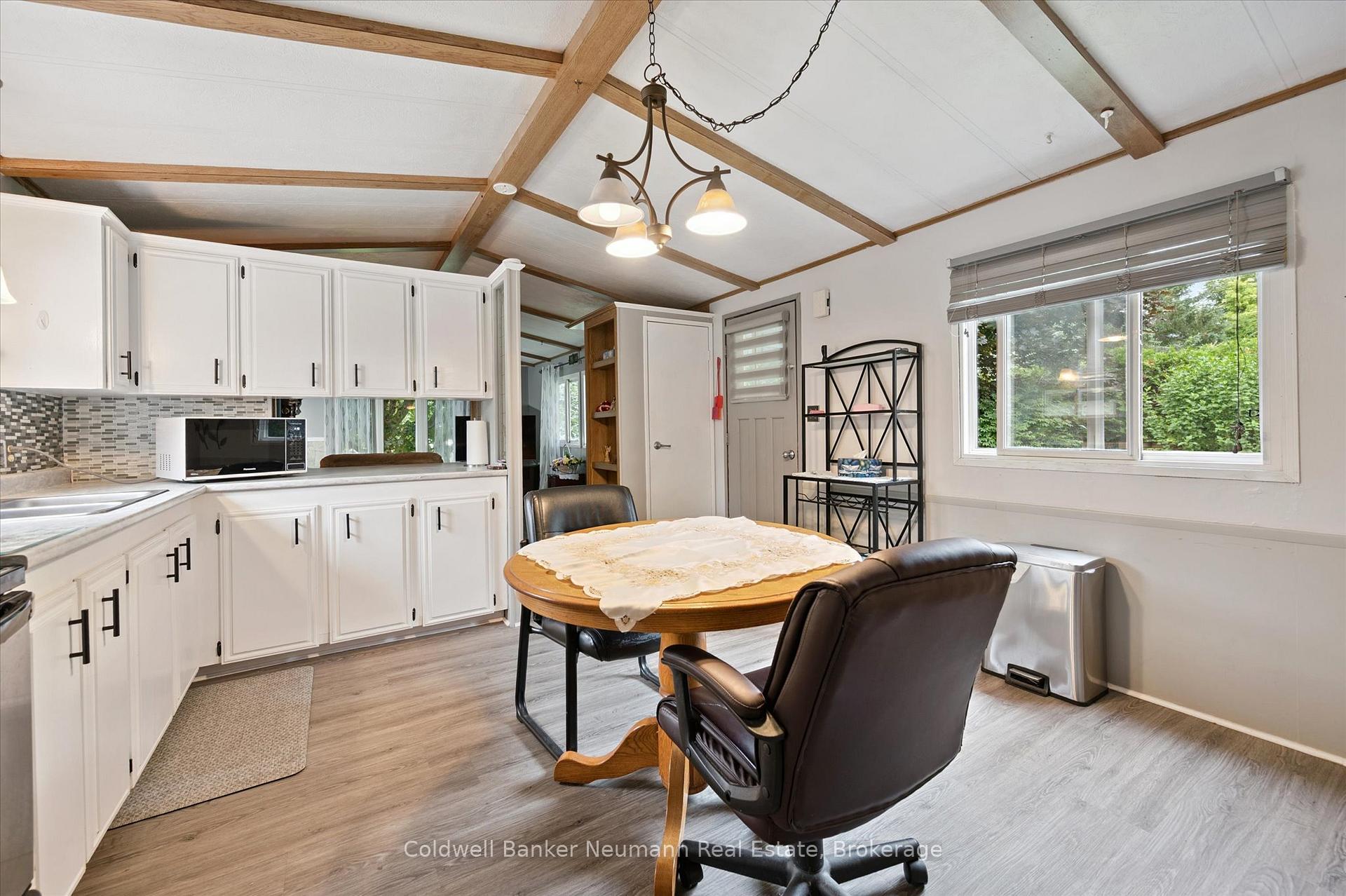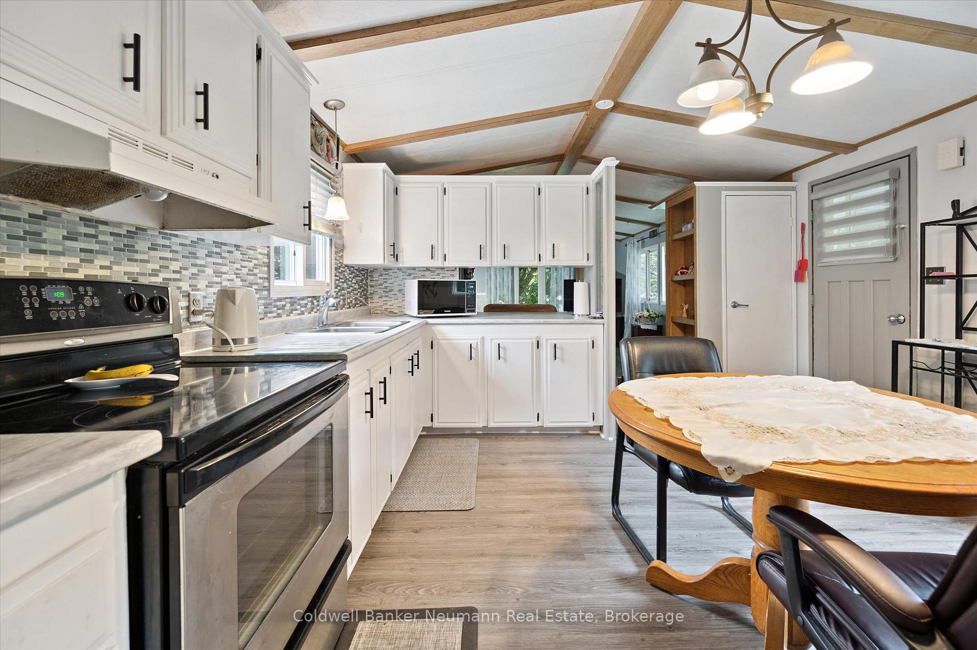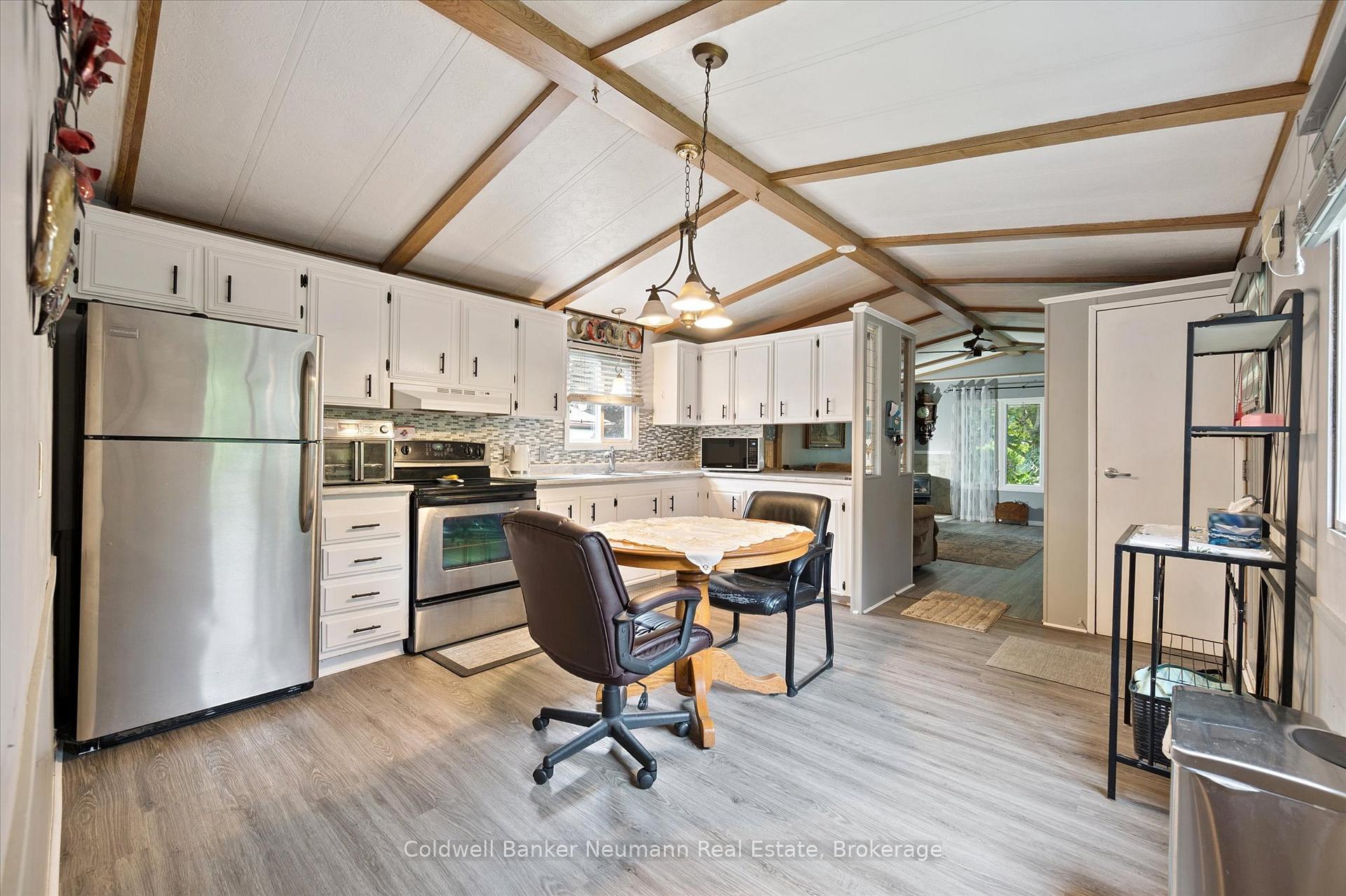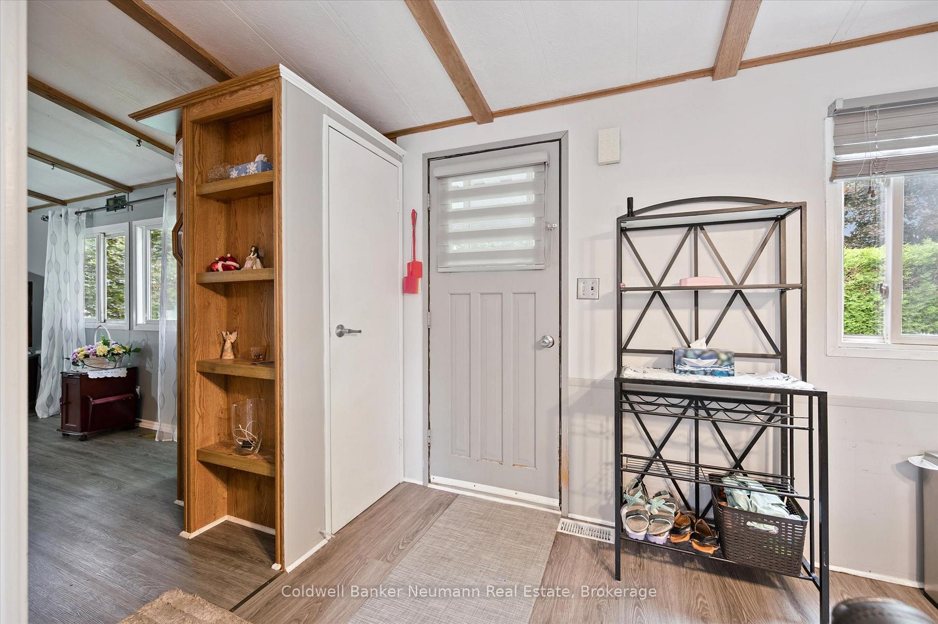 Privacy plus!! This well maintained 2 bedroom bungalow is surrounded by an 8 foot hedge, which allows ultimate privacy from others! The only thing to be seen from the road is the double paved driveway and shed. Inside you will find a generous size eat-in kitchen, living room with propane stove, updated 3 piece bathroom combined with laundry and a primary bedroom with wall to wall closet. The exterior vinyl siding was painted about 2 years ago, furnace and central air is about 7 years old, the windows and roof about 10 years ago. Located on a street with great neighbours! This modular home is located within Beverly Hills Estates, a residential modular home park, with a community centre and scheduled events for residents to join (or not!) All homes are owner occupied-no rentals! Come out and see this wonderful affordable home in a great community!