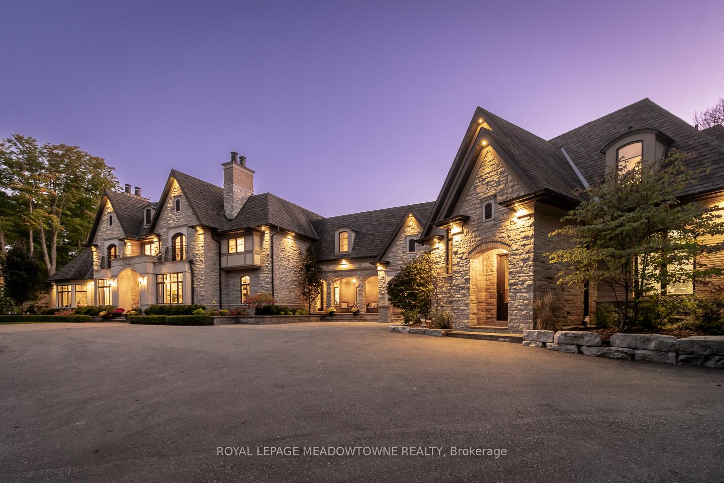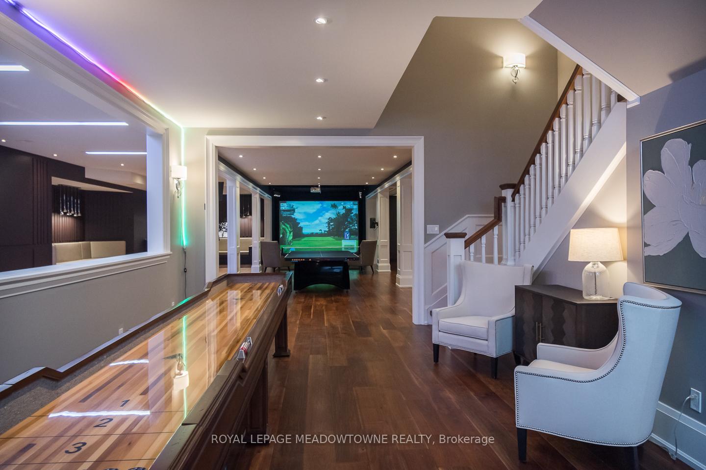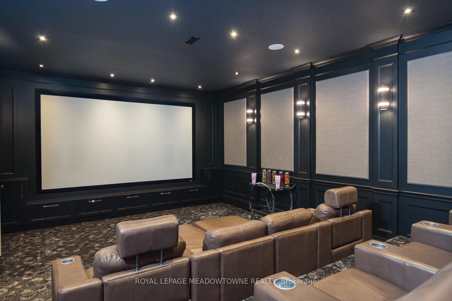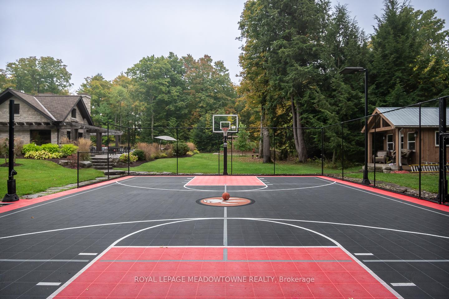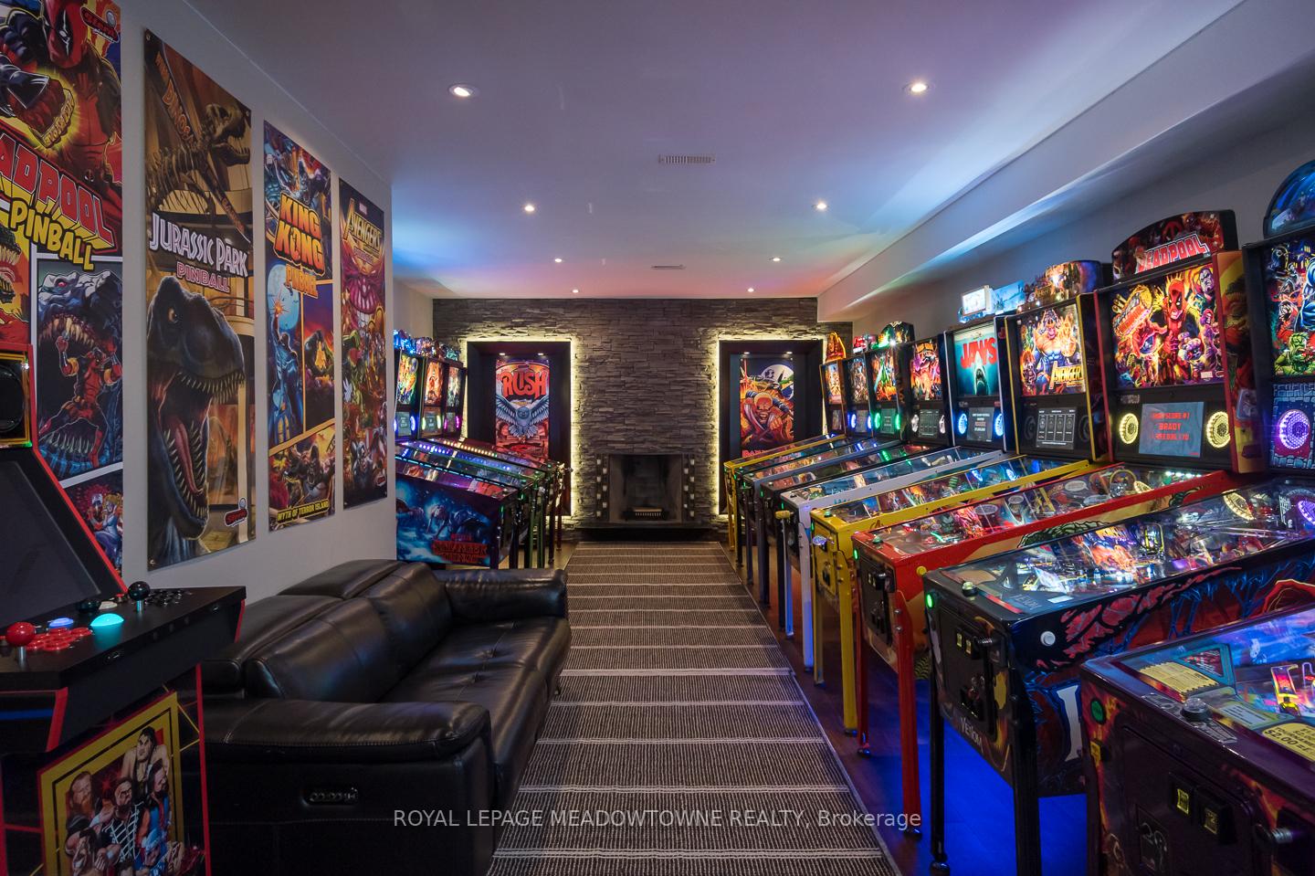 A forested 5-acre sanctuary where architectural brilliance meets resort-style living. This estate is a masterclass in design, indulgence, and lifestyle. With over 16,000 sq ft of finished space, it offers a rare blend of grandeur and warmth. The main floor primary wing is a retreat unto itself, featuring dual dressing rooms, library, spa-inspired ensuite, sauna, and walkout to a private deck with hot tub. Formal living and dining rooms, a vaulted family room, and chef’s kitchen with butler’s servery anchor the home’s heart. Entertainment spaces include a bowling alley, golf simulator, cinema, arcade, spa room, bar and billiards lounge all connected by elevator across three levels. A separate nanny/in-law suite via breezeway offers seamless multi-generational living. Outdoors, discover a saltwater pool, pavilion, casita, pool house, pizza oven, fire pit, vegetable garden, and Raptors-inspired basketball court. Geothermal heating, smart home integration, and lush landscaping elevate every moment. This is more than a home, it’s a legacy property, a lifestyle statement, and a rare opportunity to live expansively, with privacy, prestige, and purpose.