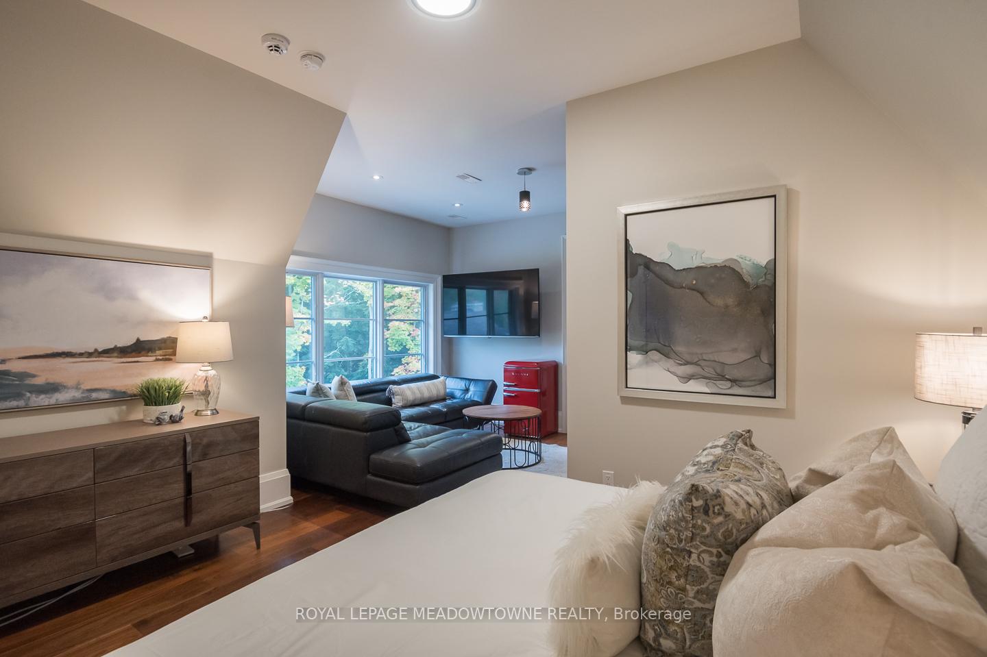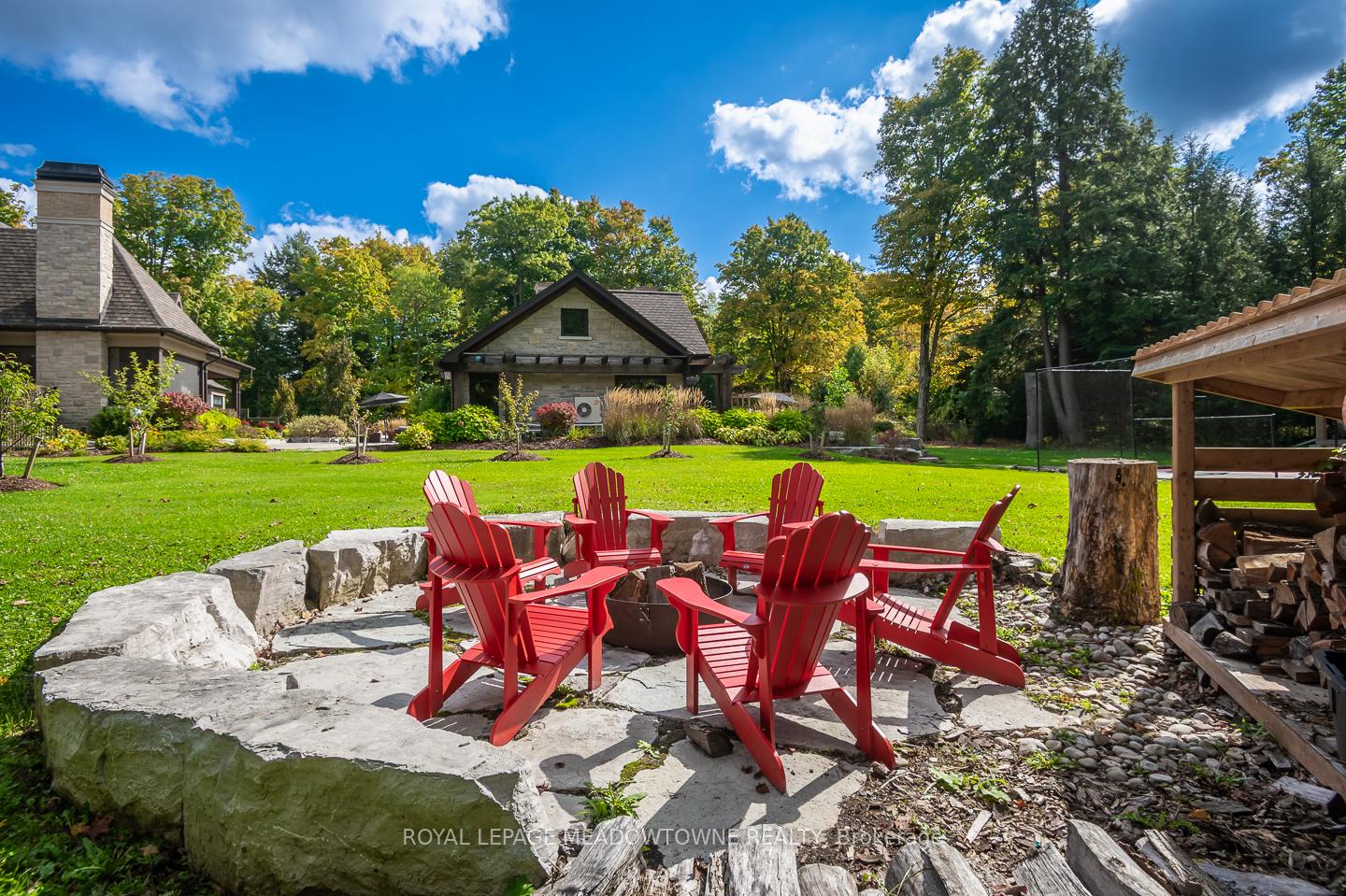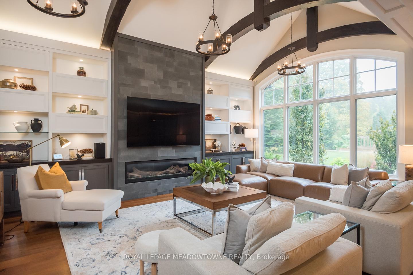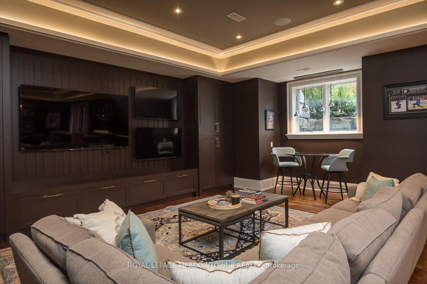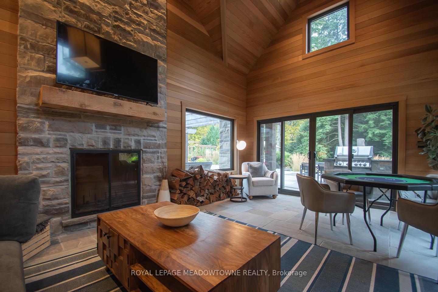 A forested 5-acre sanctuary where architectural brilliance meets resort-style living. This estate is a masterclass in design, indulgence, and lifestyle. With over 16,000 sq ft of finished space, it offers a rare blend of grandeur and warmth. The main floor primary wing is a retreat unto itself, featuring dual dressing rooms, library, spa-inspired ensuite, sauna, and walkout to a private deck with hot tub. Formal living and dining rooms, a vaulted family room, and chef’s kitchen with butler’s servery anchor the home’s heart. Entertainment spaces include a bowling alley, golf simulator, cinema, arcade, spa room, bar and billiards lounge all connected by elevator across three levels. A separate nanny/in-law suite via breezeway offers seamless multi-generational living. Outdoors, discover a saltwater pool, pavilion, casita, pool house, pizza oven, fire pit, vegetable garden, and Raptors-inspired basketball court. Geothermal heating, smart home integration, and lush landscaping elevate every moment. This is more than a home, it’s a legacy property, a lifestyle statement, and a rare opportunity to live expansively, with privacy, prestige, and purpose.
