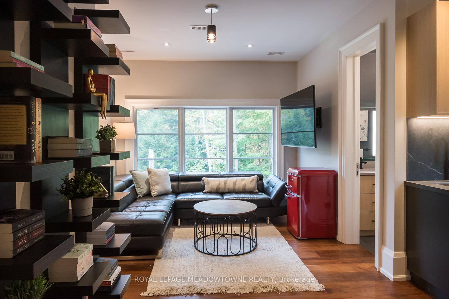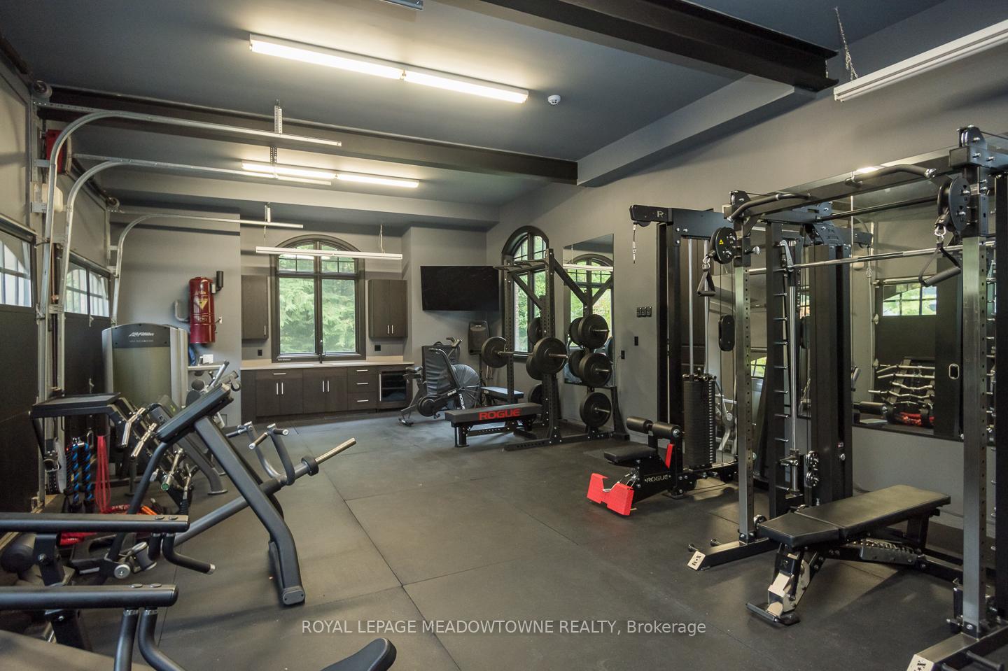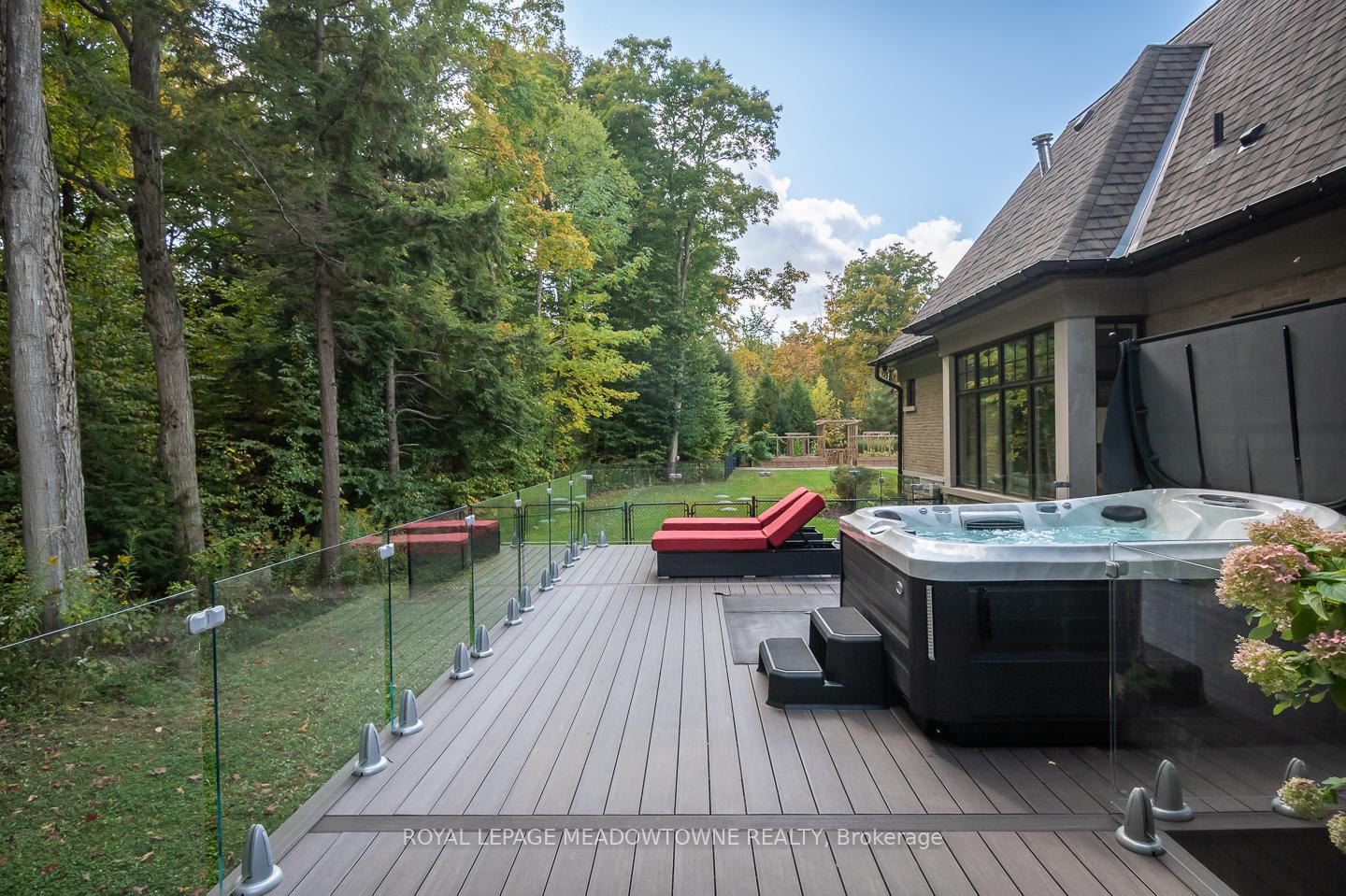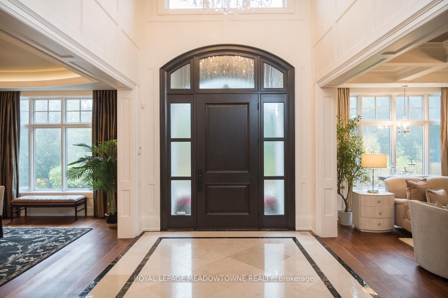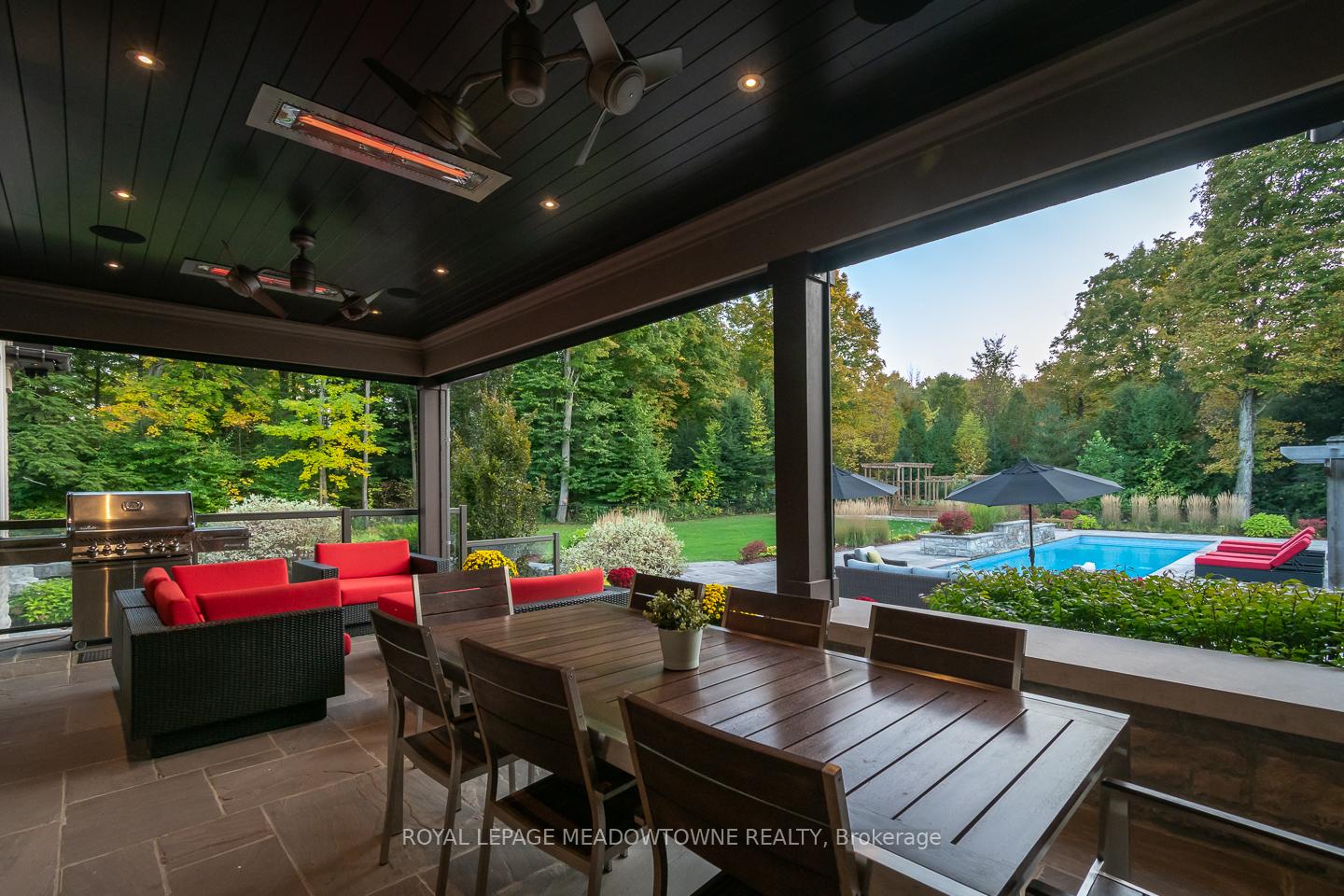 A forested 5-acre sanctuary where architectural brilliance meets resort-style living. This estate is a masterclass in design, indulgence, and lifestyle. With over 16,000 sq ft of finished space, it offers a rare blend of grandeur and warmth. The main floor primary wing is a retreat unto itself, featuring dual dressing rooms, library, spa-inspired ensuite, sauna, and walkout to a private deck with hot tub. Formal living and dining rooms, a vaulted family room, and chef’s kitchen with butler’s servery anchor the home’s heart. Entertainment spaces include a bowling alley, golf simulator, cinema, arcade, spa room, bar and billiards lounge all connected by elevator across three levels. A separate nanny/in-law suite via breezeway offers seamless multi-generational living. Outdoors, discover a saltwater pool, pavilion, casita, pool house, pizza oven, fire pit, vegetable garden, and Raptors-inspired basketball court. Geothermal heating, smart home integration, and lush landscaping elevate every moment. This is more than a home, it’s a legacy property, a lifestyle statement, and a rare opportunity to live expansively, with privacy, prestige, and purpose.