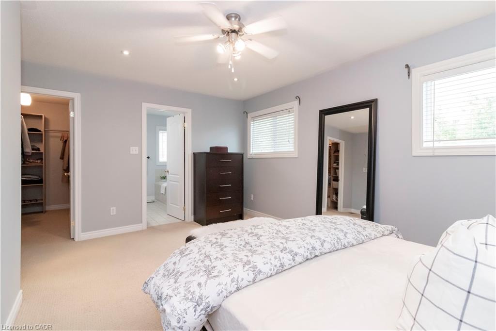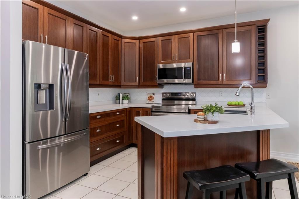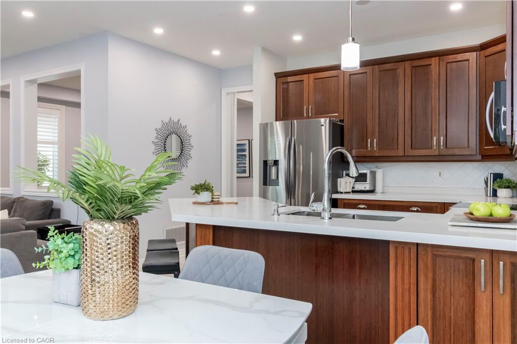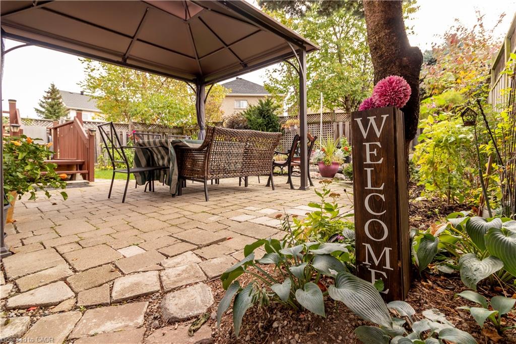 Beautifully Updated Family Home in a Desirable Milton Neighbourhood! Pride of ownership shines in this move-in ready 3-bedroom, 4-bath home located on a quiet, family-friendly street in one of Milton’s most sought-after areas. Recent upgrades include brand new hardwood floors, a modern staircase, and triple-pane windows installed in 2025, including the patio door. The open-concept kitchen features quartz countertops, stainless steel appliances, and direct access to the backyard, overlooking a cozy family room with a gas fireplace. Upstairs, the primary suite offers a peaceful retreat with a walk-in closet, granite vanity, separate shower, and corner soaker tub. Two additional bedrooms and a 4-piece bath complete the level. The finished basement includes a 3-piece bathroom, cold storage, and fresh paint—perfect for a rec room or guest suite. Step outside to a fully fenced backyard with a new deck, gazebo, and serene pond—ideal for relaxing or entertaining. Additional highlights include custom shutters, a front porch enclosure, an insulated 2-car garage, and roof shingles replaced in 2019. Close to schools, parks, shopping, and major commuter routes, this beautifully maintained home offers style, comfort, and convenience.