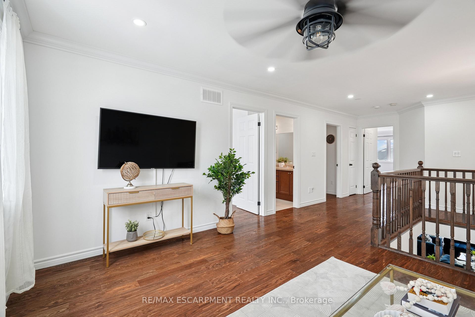 Welcome to 132 Coker Crescent in the heart of Rockwood, a beautifully maintained detached family home on a generous 36 x 116 ft lot in one of the community’s most sought-after neighbourhoods. From the moment you step inside, you’ll appreciate the bright and open main floor layout designed for everyday family living. The combined living and dining room features hardwood flooring, elegant crown moulding, pot lights, and a cozy gas fireplace. Large windows allow natural light to pour in. The kitchen is truly the heart of the home, complete with quartz countertops, a stylish stone backsplash, stainless-steel appliances, gas stove, centre island, pantry, and pot lights. The adjoining breakfast area includes crown moulding and a walk-out to a raised deck. Perfect for summer barbecues. Convenience is key with main floor laundry and direct access to the double car garage. A 2-piece powder room completes this level. Upstairs, hardwood flooring continues throughout. A spacious second-floor family room offers additional living space with crown moulding, pot lights, ceiling fan, and large windows. Ideal for movie nights or a kids’ hangout area. The primary bedroom retreat features a walk-in closet and a 5-piece ensuite designed for relaxation. Two additional generously sized bedrooms with double closets share a well-appointed 5-piece main bathroom, making busy mornings easy. The finished walk-out basement expands your living space beautifully. The recreation room includes a gas fireplace, pot lights, and above-grade windows that keep the space bright and welcoming. With a fourth bedroom, 3-piece bathroom, patio walk-out, and cold storage, this level is perfect for teens, guests, or extended family. With parking for up to six vehicles, including a double car garage and four-car driveway, this home checks every box for modern family living in Rockwood. If you are searching for a detached home with finished walk-out basement near parks and conservation areas, this is the one.