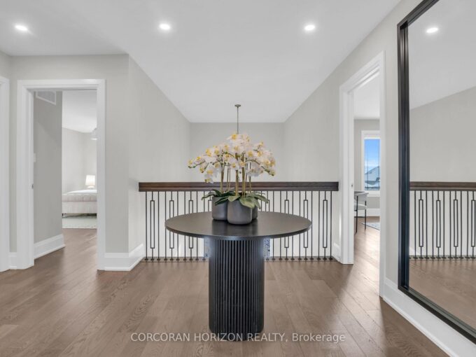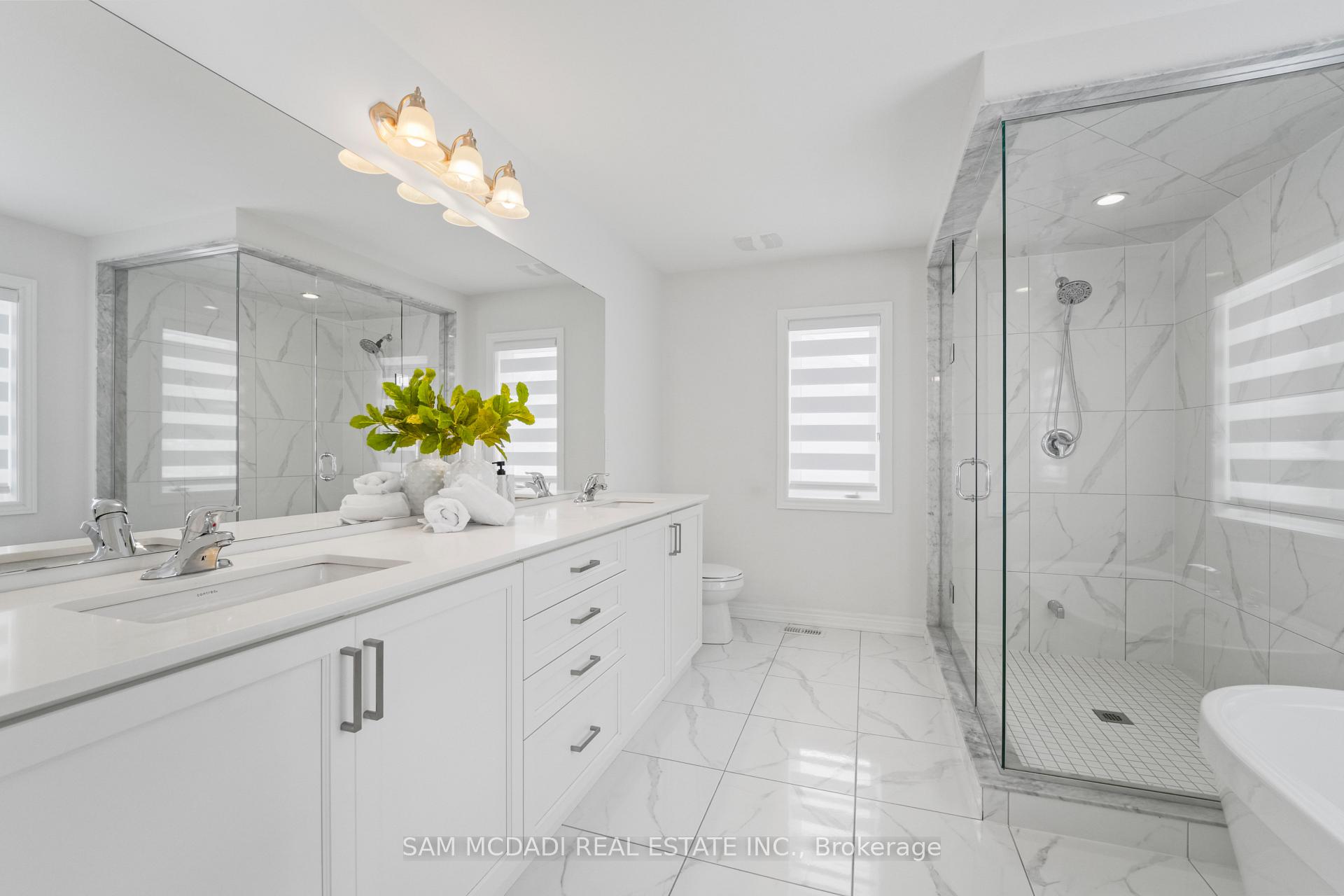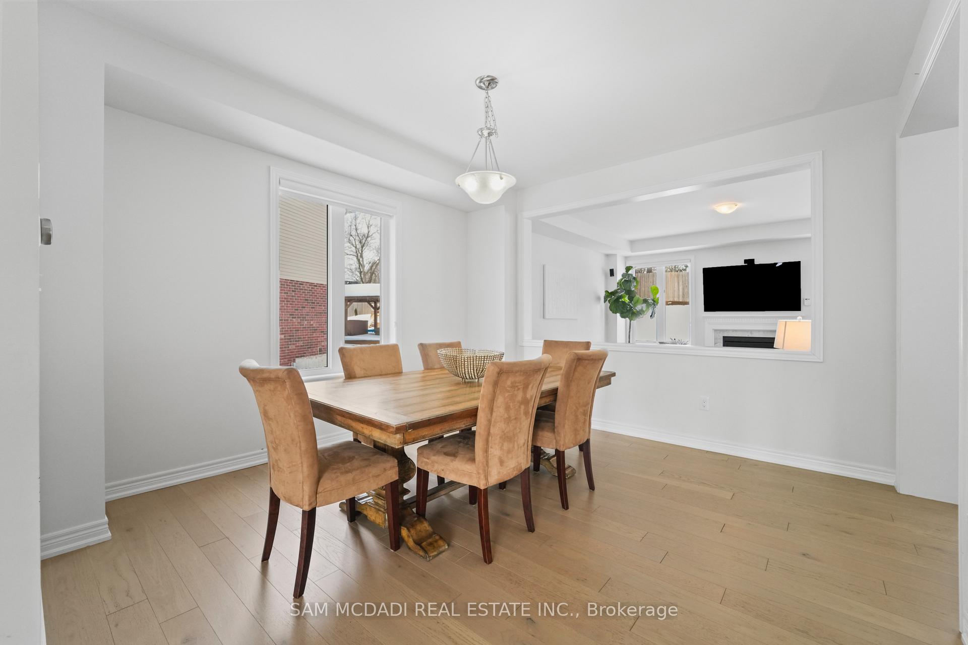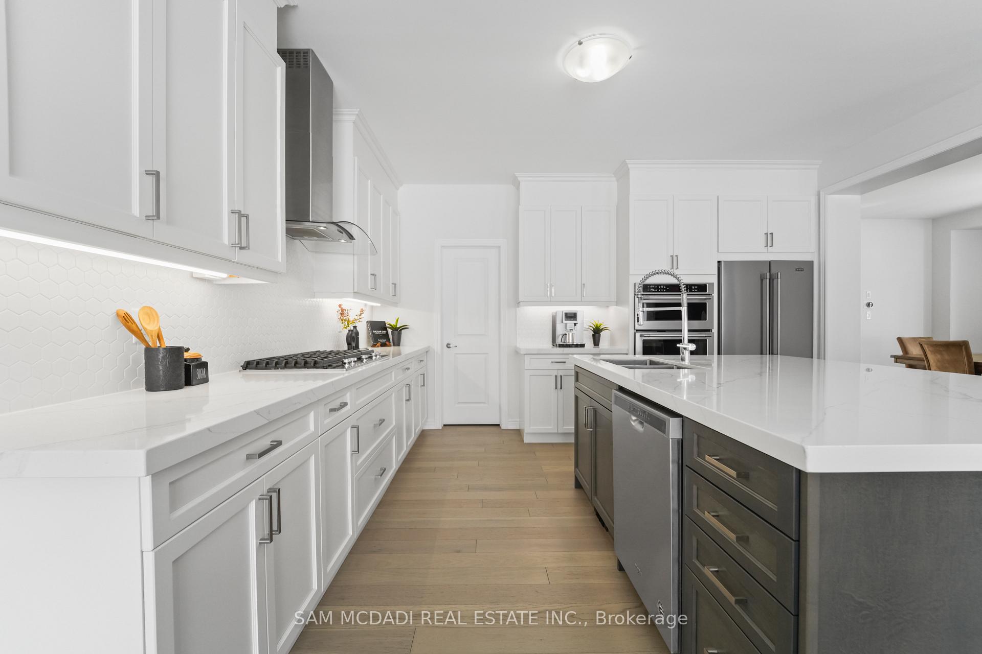 Meticulously maintained and truly stunning, this 4-bedroom, 4-bathroom detached home offers 2,763 sq. ft. of beautifully designed above-grade living space on a large pie-shaped lot in a quiet, family-friendly neighbourhood. A grand foyer with soaring 16-foot ceilings creates an impressive welcome, leading to an elegant main floor filled with natural light from expansive front entry glass, large windows and nine-foot ceilings. Rich hardwood flooring, and oak staircases with wrought iron pickets add warmth and sophistication throughout.The upgraded chef-inspired kitchen is the heart of the home, featuring extended cabinetry, a walk-in pantry, quartz countertops, stylish backsplash, centre island with breakfast bar, and built-in appliances-perfect for everyday living and entertaining. The open-concept main floor flows seamlessly, highlighted by a cozy gas fireplace in the family room, a formal dining area ideal for hosting, and a separate front living room offering a quiet retreat. Upstairs, four generously sized bedrooms each enjoy direct access to a bathroom-ideal for growing families. The primary suite features a spacious walk-in closet and a luxurious 5-piece ensuite. The lower level includes a finished foyer with double closets, double-door basement entry, and direct access to the double-car garage.With a 2-car garage and additional driveway parking, there is ample space for vehicles and storage. The expansive pie-shaped lot provides plenty of room for outdoor activities, entertaining, or gardening.Ideally located within walking distance to Rockmosa Park, Rockwood Child & Family Centre, local schools, and the library, and just minutes from Rockwood Conservation Area, this exceptional home offers the perfect blend of space, style, and convenience for family living.