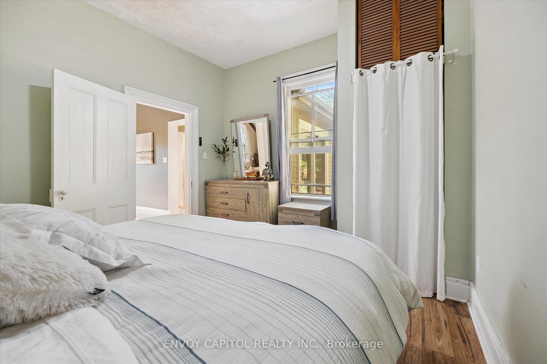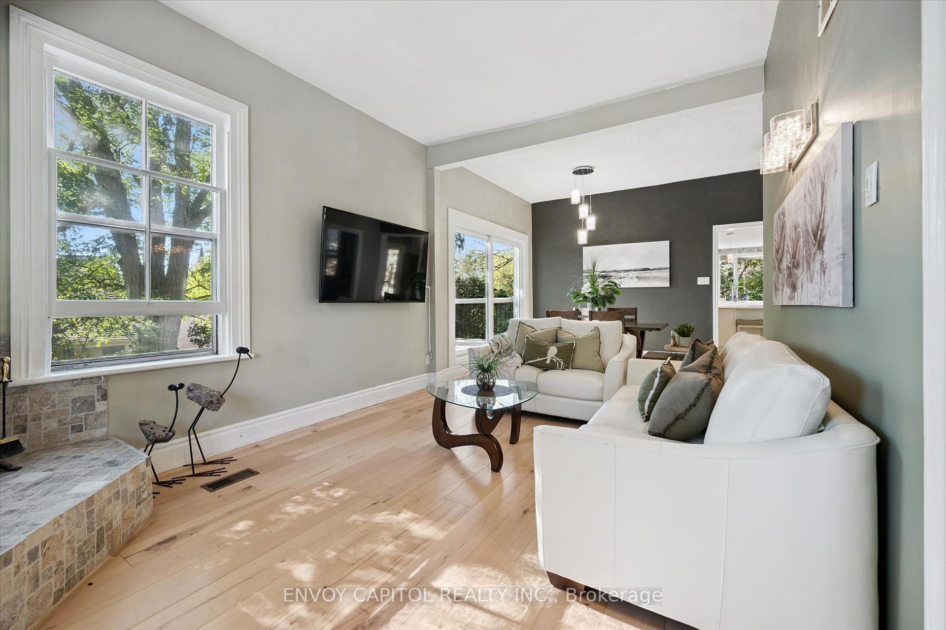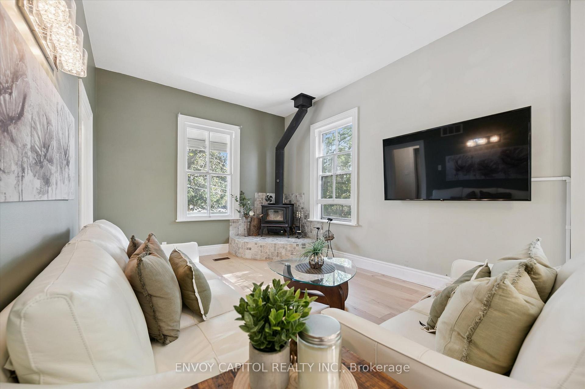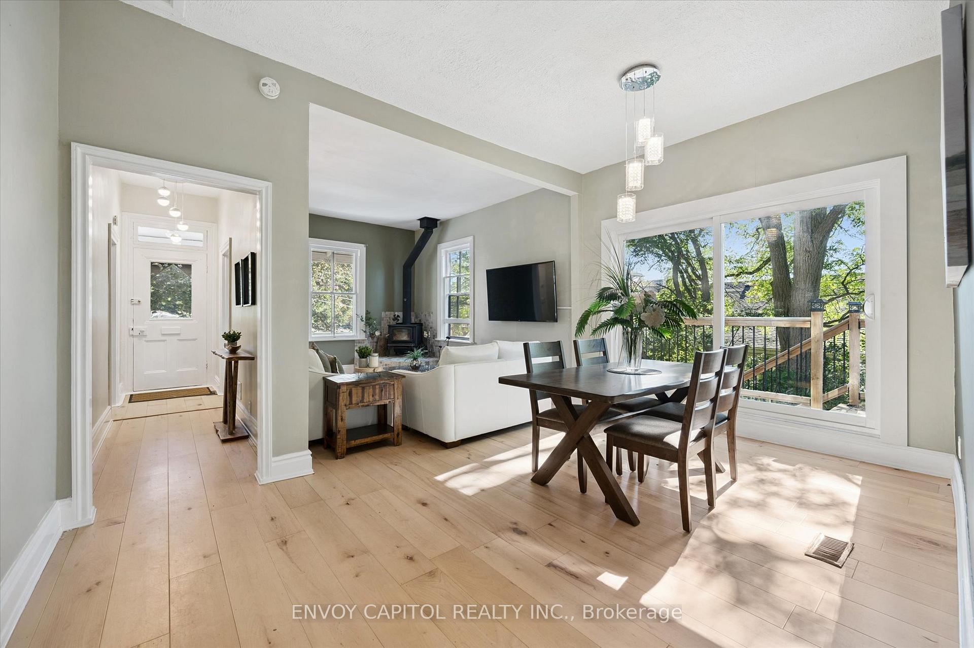 Adorable circa 1875 build set on a generous and private 75′ x 117′ lot. The house is set on a hill and is surrounded by mature trees making this home all the more magical. Ideally located close to trendy downtown shops and dining, Speed River trails, the Go Station and a short drive to University of Guelph. The home has been lovingly renovated top to bottom and is perfect for first-timers and right-sizers. The chef inspired kitchen, complete with eat-in peninsula, gas stove, and new appliances grant easy and welcoming entertaining opportunities. Directly off the kitchen is the open concept dining and living rooms allowing for a functional and airy layout with 10ft ceilings. After dinner cozy up and enjoy the crackle of the wood stove while you relax in this welcoming space. 2 bedrooms off this area make for convenient sleeping quarters. A fully renovated bathroom with awe-inspiring walk-in glass shower completes this floor. The walkout basement is the definition of flex space in this house. An in-law suite, kids quarters, secondary entertaining space or even a potential rental income stream could be considered for this lower level retreat. Through the basement walkout, privacy abounds in the much desired greenspace that this property lends to you. With rolling hills, a large sun filled deck and a handy storage shed this property exudes charm and character! Updates: kitchen reno (23-24), furnace (25), ac (24), fencing (25), deck and stairs (24), windows/doors (24), appliances (23), washer/dryer (23), water softener (22).