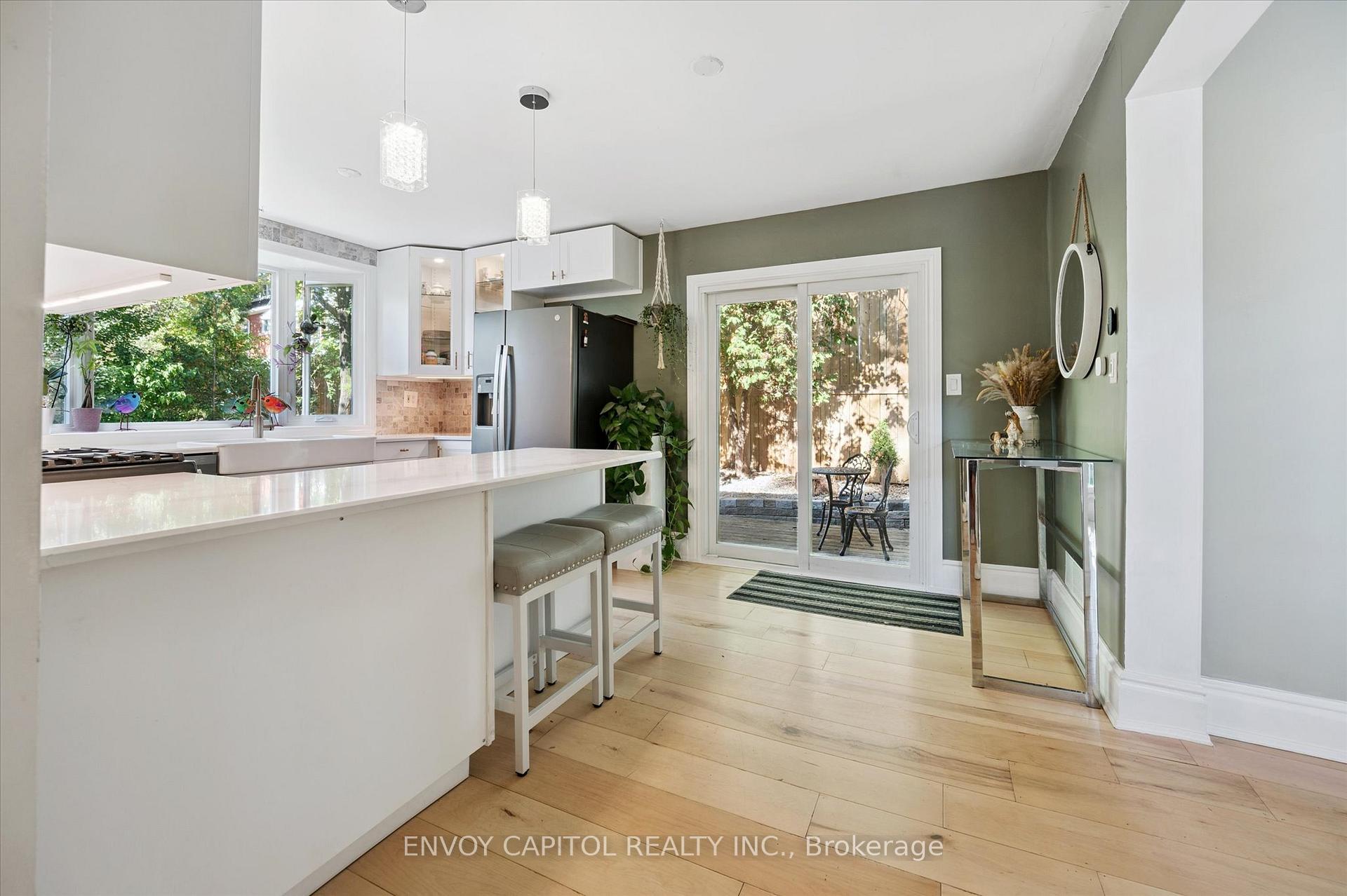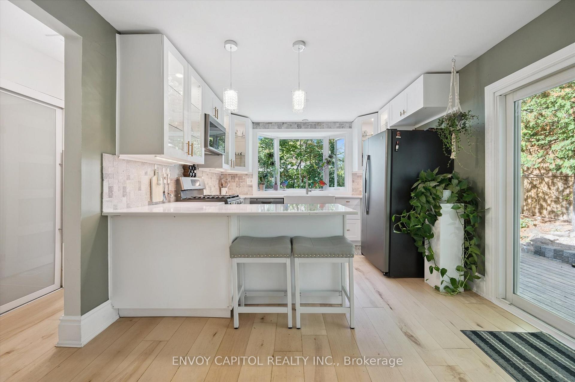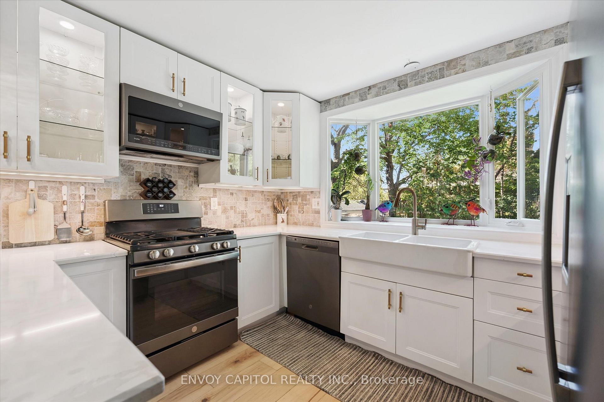 Adorable circa 1875 build set on a generous and private 75′ x 117′ lot. The house is set on a hill and is surrounded by mature trees making this home all the more magical. Ideally located close to trendy downtown shops and dining, Speed River trails, the Go Station and a short drive to University of Guelph. The home has been lovingly renovated top to bottom and is perfect for first-timers and right-sizers. The chef inspired kitchen, complete with eat-in peninsula, gas stove, and new appliances grant easy and welcoming entertaining opportunities. Directly off the kitchen is the open concept dining and living rooms allowing for a functional and airy layout with 10ft ceilings. After dinner cozy up and enjoy the crackle of the wood stove while you relax in this welcoming space. 2 bedrooms off this area make for convenient sleeping quarters. A fully renovated bathroom with awe-inspiring walk-in glass shower completes this floor. The walkout basement is the definition of flex space in this house. An in-law suite, kids quarters, secondary entertaining space or even a potential rental income stream could be considered for this lower level retreat. Through the basement walkout, privacy abounds in the much desired greenspace that this property lends to you. With rolling hills, a large sun filled deck and a handy storage shed this property exudes charm and character! Updates: kitchen reno (23-24), furnace (25), ac (24), fencing (25), deck and stairs (24), windows/doors (24), appliances (23), washer/dryer (23), water softener (22).